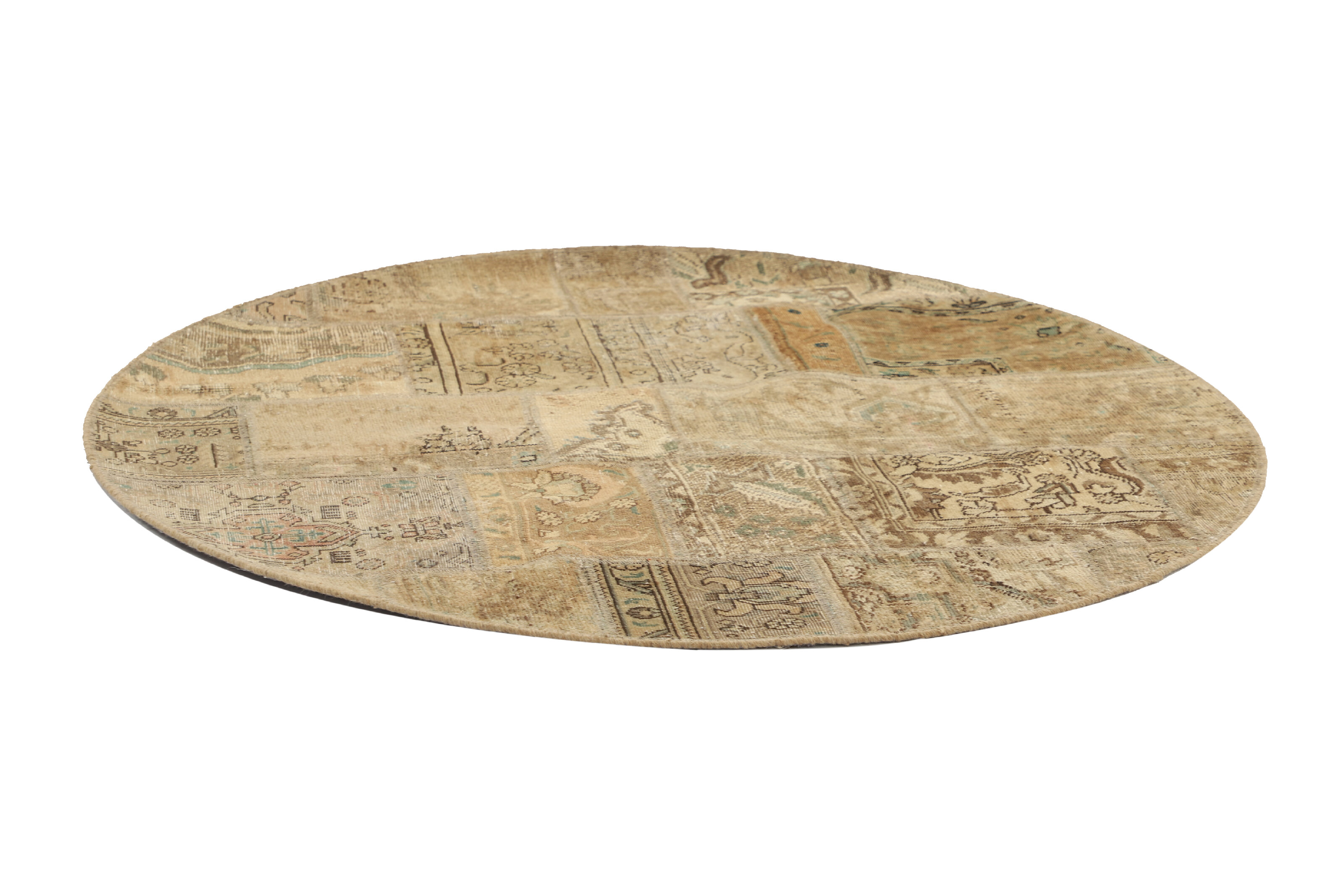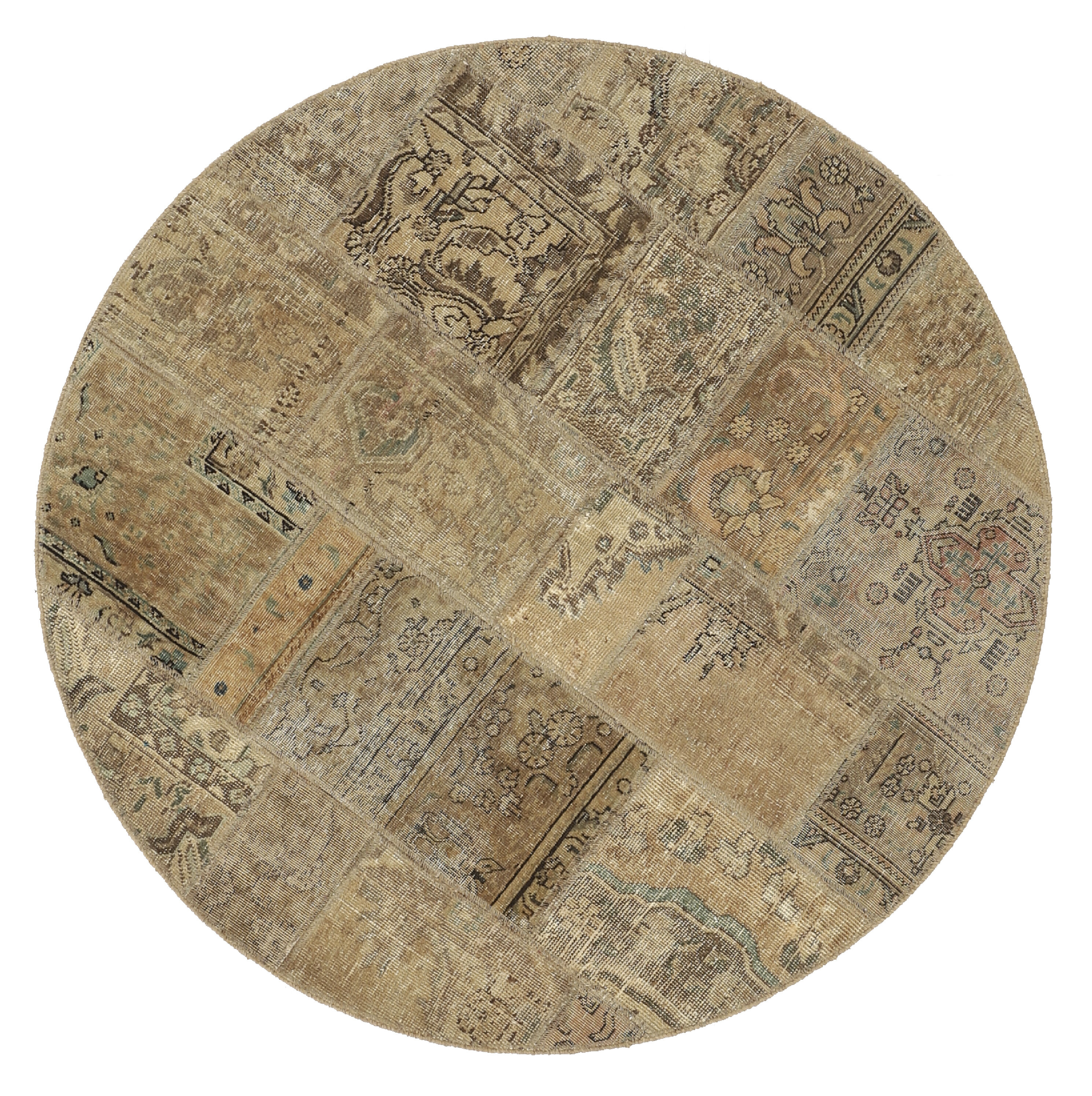 Vintage PatchworkItem no.: 1521835 Size: 150 cm x 150 cmVintage Royals are antique hand knotted rugs of Persian origin. The Patchwork Collection consists of old rugs that have been beyond repair, and instead cut into smaller pieces and used for patchwork. The Patchwork pieces are stonewashed and recoloured in light, dark, or bright colours, with the old pattern just being visible. The Patchwork rug forms a whole new and unique design. The rugs are of a very high quality and are available in large sizes. With the Vintage Royal Patchwork Collection, you do not just get a rug; you adorn your home with a unique piece of antique, Persian handcraft.