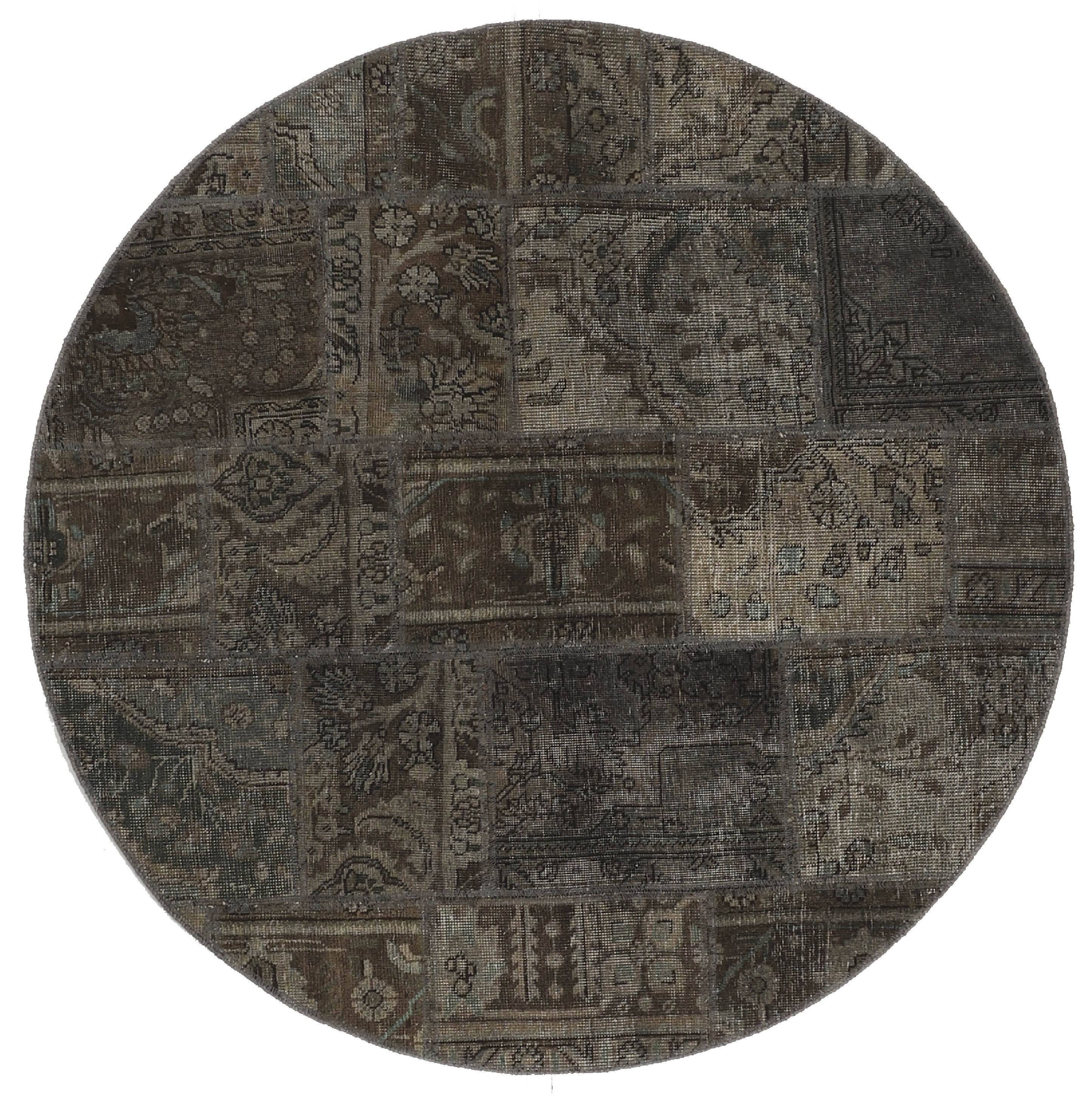 Vintage PatchworkItem no.: 1521836 Size: 151 cm x 151 cmVintage Royals are antique hand knotted rugs of Persian origin. The Patchwork Collection consists of old rugs that have been beyond repair, and instead cut into smaller pieces and used for patchwork. The Patchwork pieces are stonewashed and recoloured in light, dark, or bright colours, with the old pattern just being visible. The Patchwork rug forms a whole new and unique design. The rugs are of a very high quality and are available in large sizes. With the Vintage Royal Patchwork Collection, you do not just get a rug; you adorn your home with a unique piece of antique, Persian handcraft.