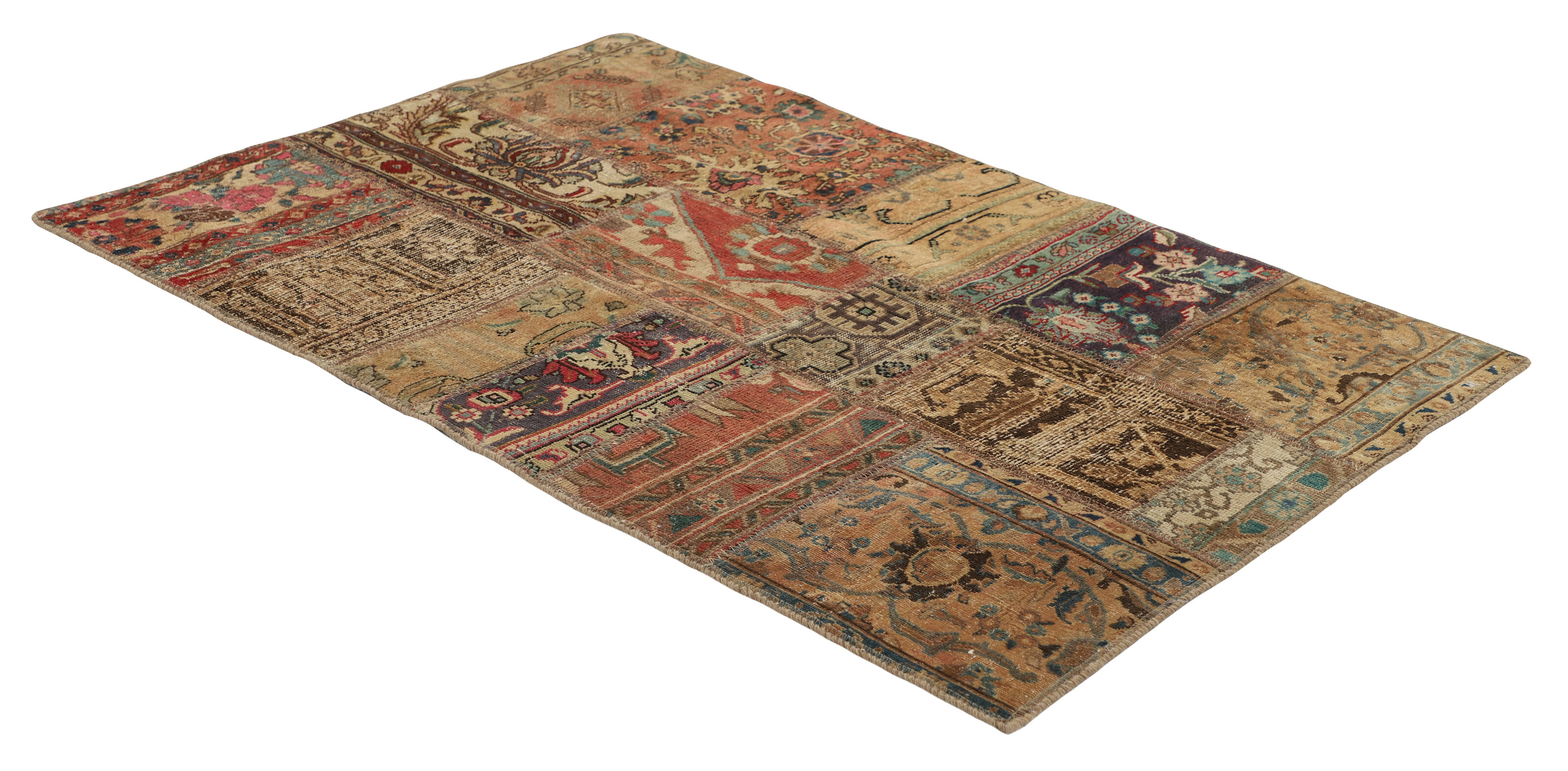 Vintage PatchworkItem no.: 1521859 Size: 105 cm x 157 cmVintage Royals are antique hand knotted rugs of Persian origin. The Patchwork Collection consists of old rugs that have been beyond repair, and instead cut into smaller pieces and used for patchwork. The Patchwork pieces are stonewashed and recoloured in light, dark, or bright colours, with the old pattern just being visible. The Patchwork rug forms a whole new and unique design. The rugs are of a very high quality and are available in large sizes. With the Vintage Royal Patchwork Collection, you do not just get a rug; you adorn your home with a unique piece of antique, Persian handcraft.