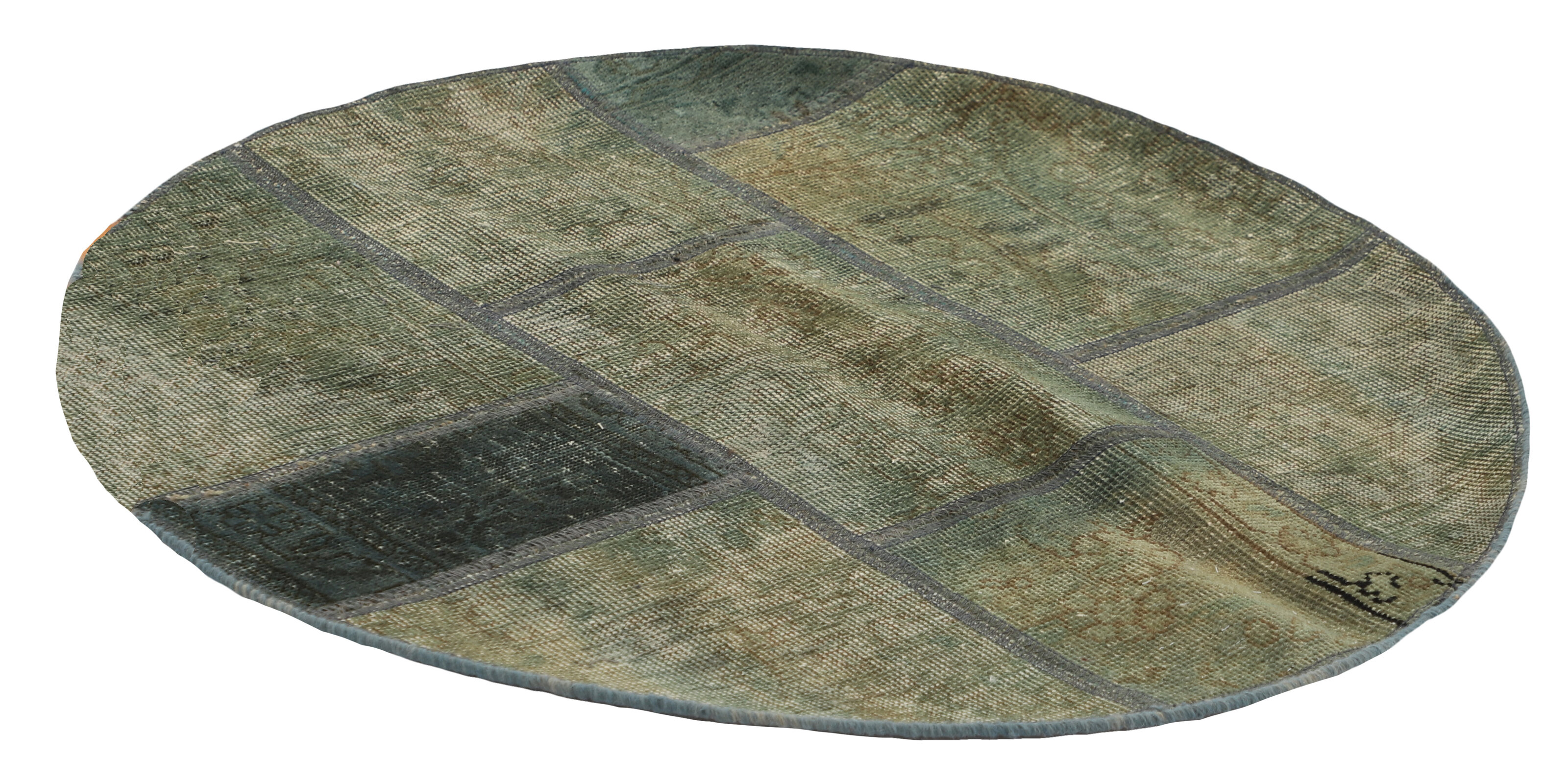 Vintage PatchworkItem no.: 1521881 Size: 100 cm x 100 cmVintage Royals are antique hand knotted rugs of Persian origin. The Patchwork Collection consists of old rugs that have been beyond repair, and instead cut into smaller pieces and used for patchwork. The Patchwork pieces are stonewashed and recoloured in light, dark, or bright colours, with the old pattern just being visible. The Patchwork rug forms a whole new and unique design. The rugs are of a very high quality and are available in large sizes. With the Vintage Royal Patchwork Collection, you do not just get a rug; you adorn your home with a unique piece of antique, Persian handcraft.