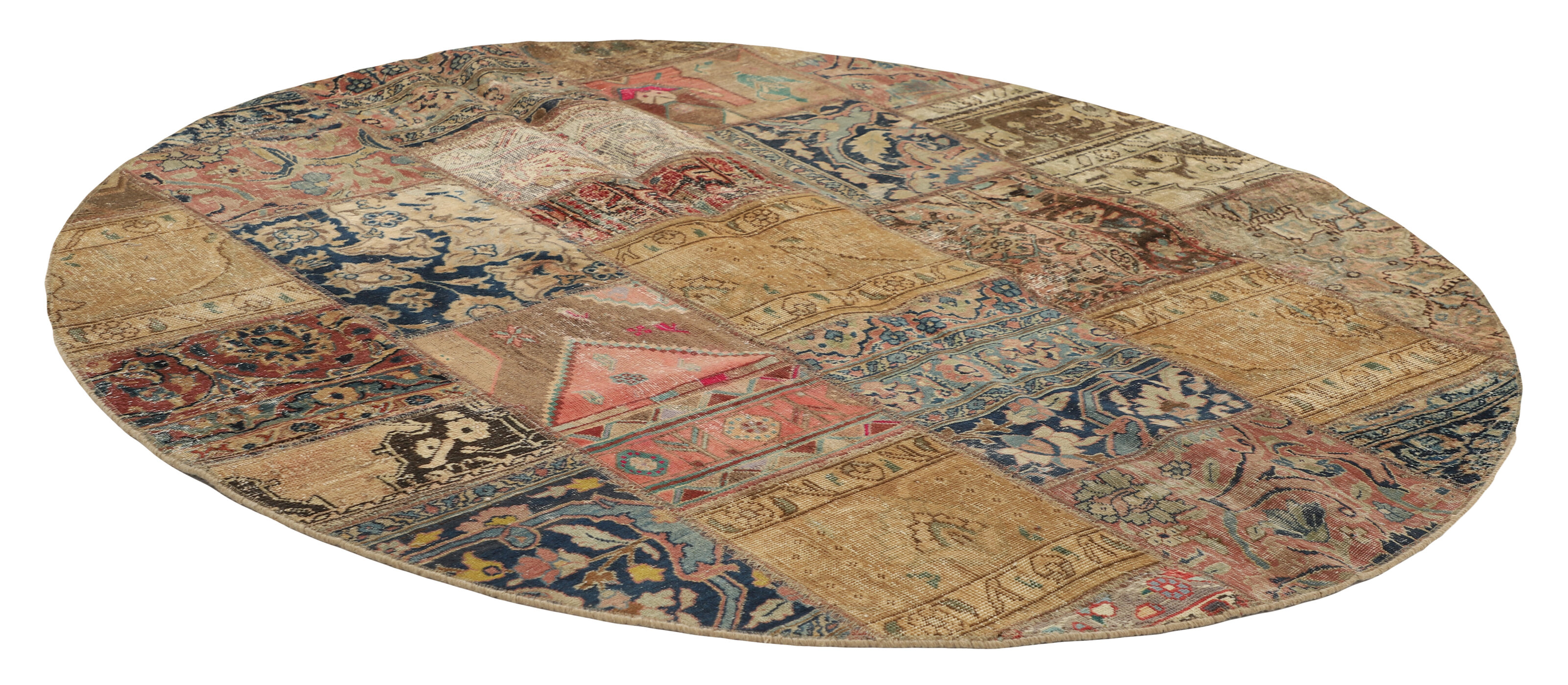 Vintage PatchworkItem no.: 1521888 Size: 200 cm x 200 cmVintage Royals are antique hand knotted rugs of Persian origin. The Patchwork Collection consists of old rugs that have been beyond repair, and instead cut into smaller pieces and used for patchwork. The Patchwork pieces are stonewashed and recoloured in light, dark, or bright colours, with the old pattern just being visible. The Patchwork rug forms a whole new and unique design. The rugs are of a very high quality and are available in large sizes. With the Vintage Royal Patchwork Collection, you do not just get a rug; you adorn your home with a unique piece of antique, Persian handcraft.