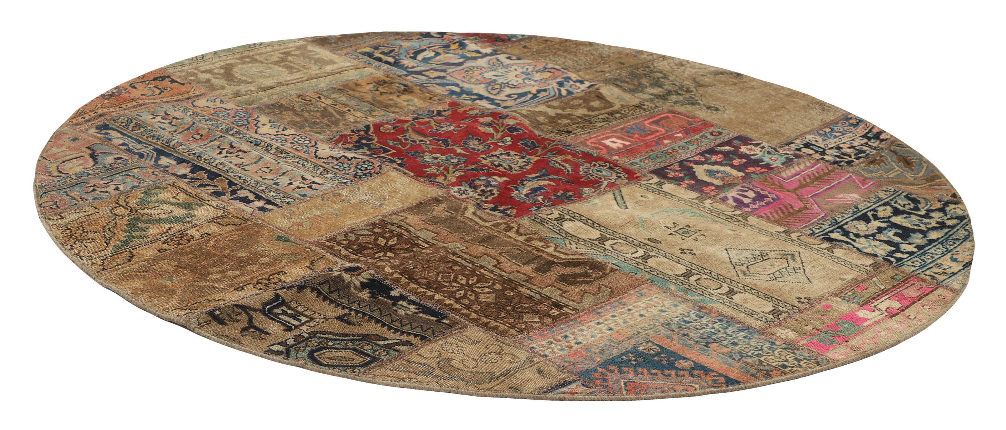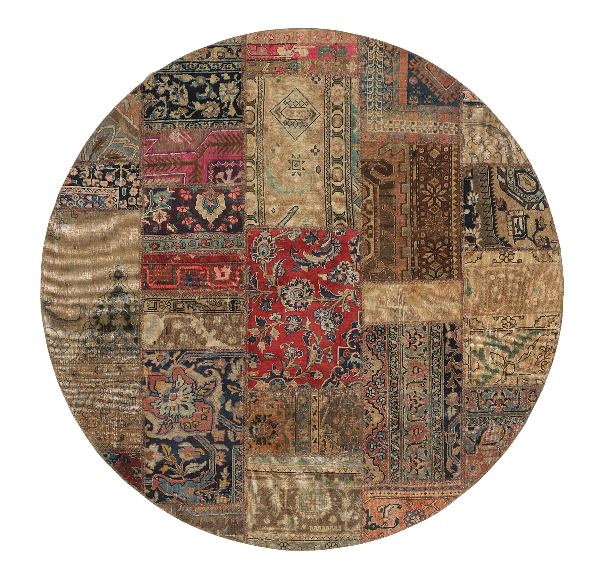 Vintage PatchworkItem no.: 1521890 Size: 200 cm x 200 cmVintage Royals are antique hand knotted rugs of Persian origin. The Patchwork Collection consists of old rugs that have been beyond repair, and instead cut into smaller pieces and used for patchwork. The Patchwork pieces are stonewashed and recoloured in light, dark, or bright colours, with the old pattern just being visible. The Patchwork rug forms a whole new and unique design. The rugs are of a very high quality and are available in large sizes. With the Vintage Royal Patchwork Collection, you do not just get a rug; you adorn your home with a unique piece of antique, Persian handcraft.