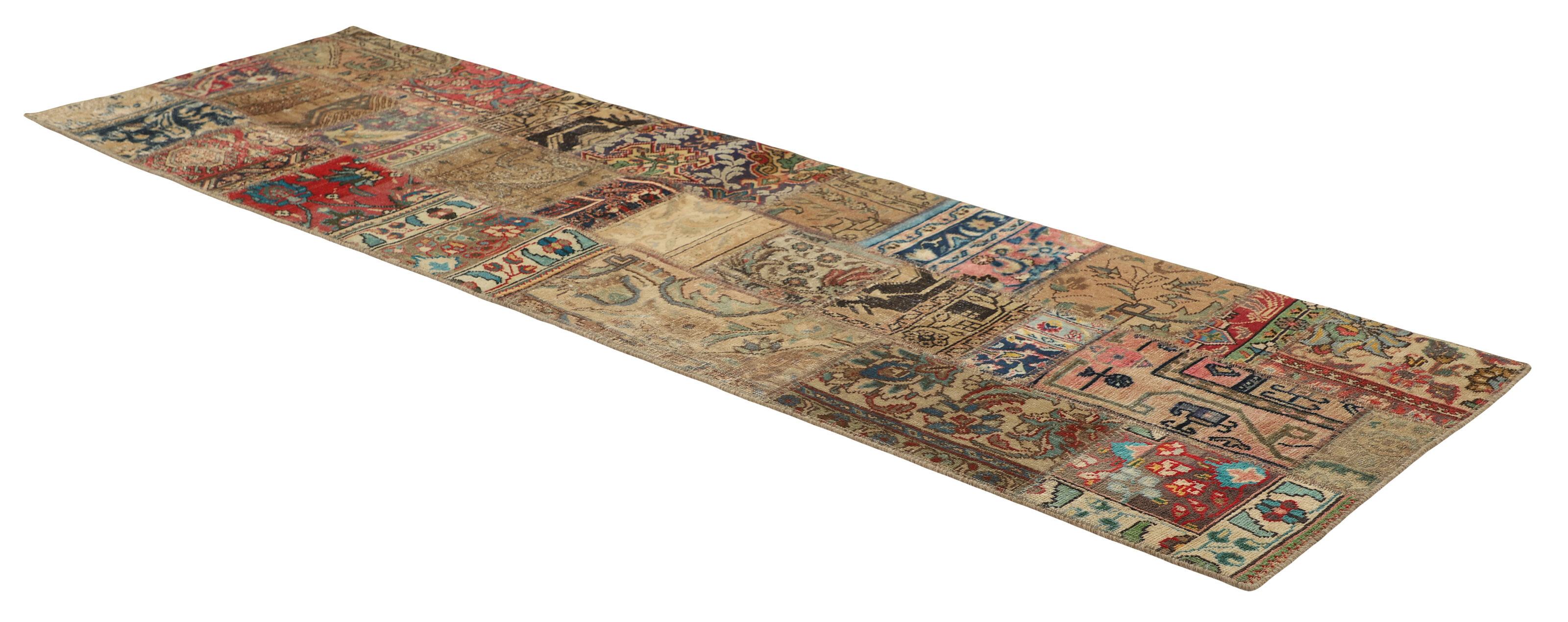 Vintage PatchworkItem no.: 1521937 Size: 76 cm x 255 cmVintage Royals are antique hand knotted rugs of Persian origin. The Patchwork Collection consists of old rugs that have been beyond repair, and instead cut into smaller pieces and used for patchwork. The Patchwork pieces are stonewashed and recoloured in light, dark, or bright colours, with the old pattern just being visible. The Patchwork rug forms a whole new and unique design. The rugs are of a very high quality and are available in large sizes. With the Vintage Royal Patchwork Collection, you do not just get a rug; you adorn your home with a unique piece of antique, Persian handcraft.