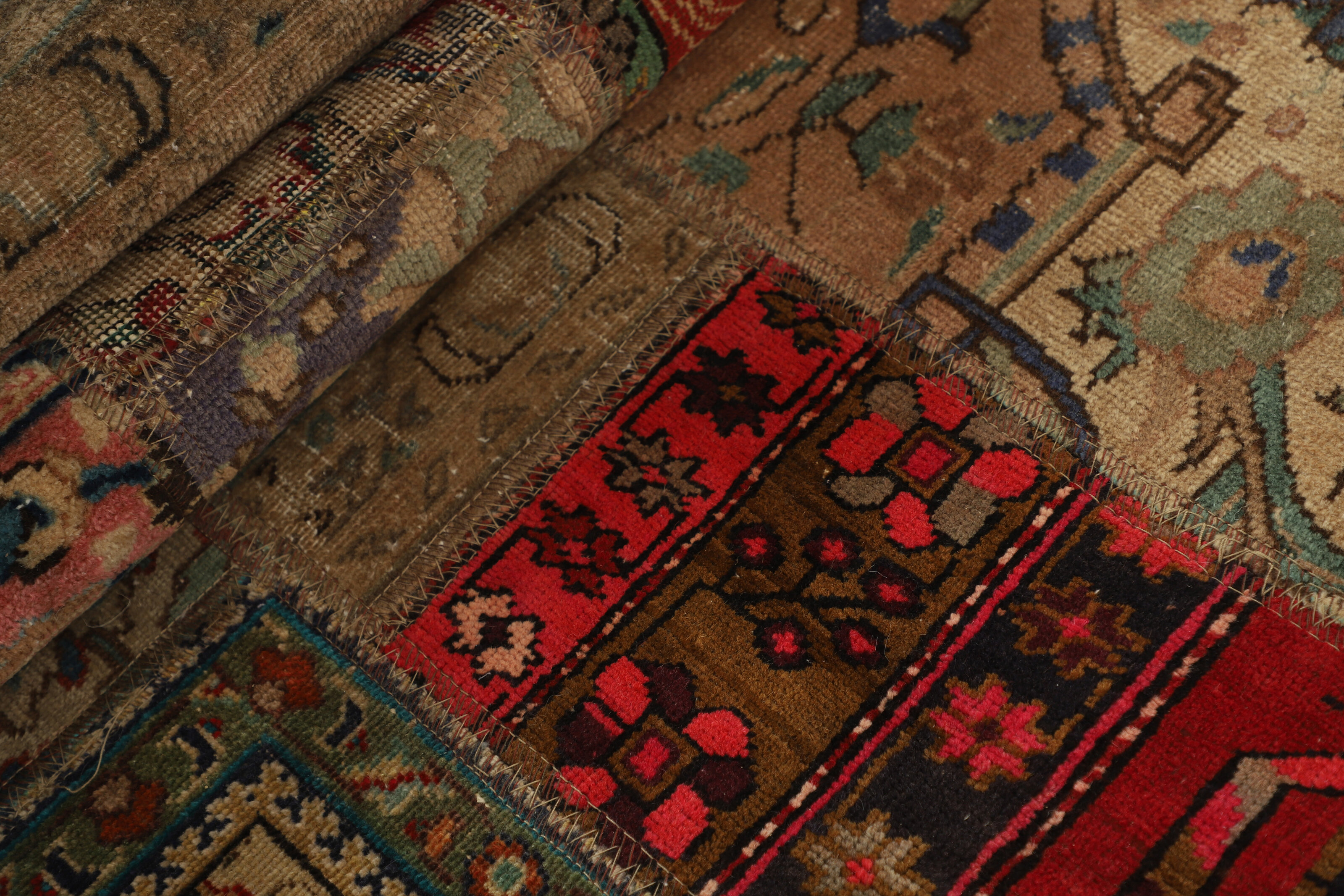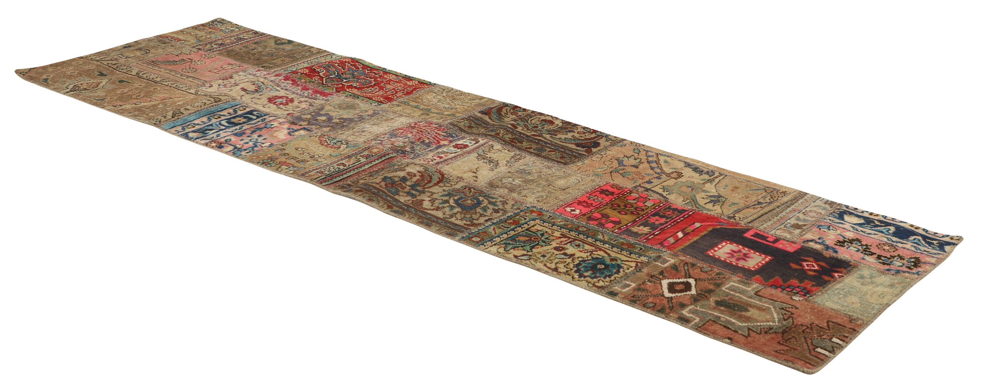 Vintage PatchworkItem no.: 1521938 Size: 77 cm x 258 cmVintage Royals are antique hand knotted rugs of Persian origin. The Patchwork Collection consists of old rugs that have been beyond repair, and instead cut into smaller pieces and used for patchwork. The Patchwork pieces are stonewashed and recoloured in light, dark, or bright colours, with the old pattern just being visible. The Patchwork rug forms a whole new and unique design. The rugs are of a very high quality and are available in large sizes. With the Vintage Royal Patchwork Collection, you do not just get a rug; you adorn your home with a unique piece of antique, Persian handcraft.