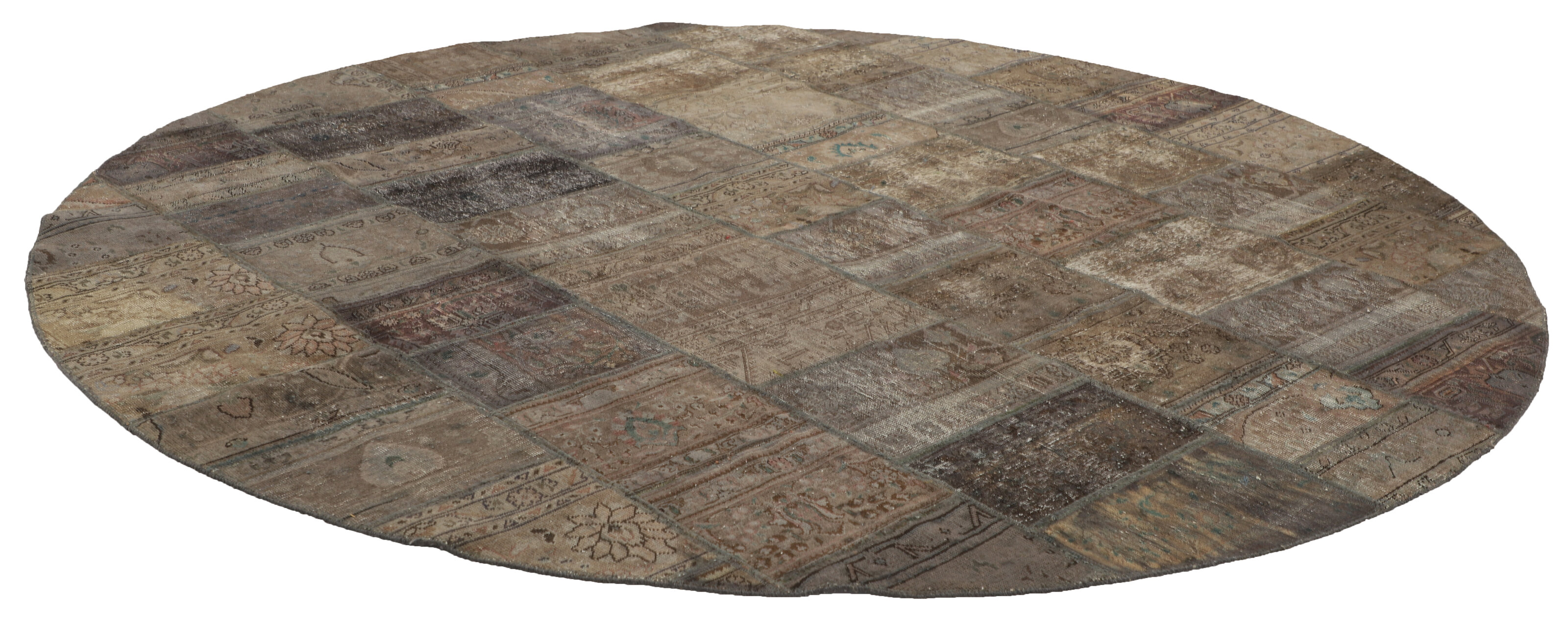 Vintage PatchworkItem no.: 1522002 Size: 300 cm x 300 cmVintage Royals are antique hand knotted rugs of Persian origin. The Patchwork Collection consists of old rugs that have been beyond repair, and instead cut into smaller pieces and used for patchwork. The Patchwork pieces are stonewashed and recoloured in light, dark, or bright colours, with the old pattern just being visible. The Patchwork rug forms a whole new and unique design. The rugs are of a very high quality and are available in large sizes. With the Vintage Royal Patchwork Collection, you do not just get a rug; you adorn your home with a unique piece of antique, Persian handcraft.