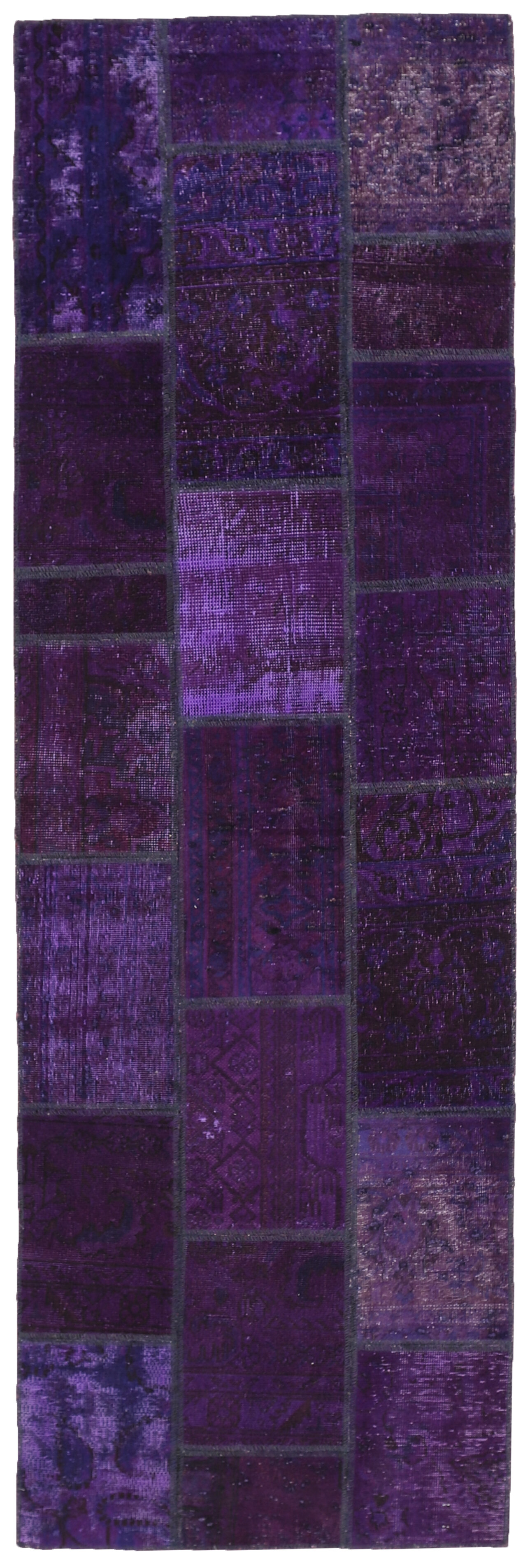 Vintage PatchworkItem no.: 1522007 Size: 83 cm x 254 cmVintage Royals are antique hand knotted rugs of Persian origin. The Patchwork Collection consists of old rugs that have been beyond repair, and instead cut into smaller pieces and used for patchwork. The Patchwork pieces are stonewashed and recoloured in light, dark, or bright colours, with the old pattern just being visible. The Patchwork rug forms a whole new and unique design. The rugs are of a very high quality and are available in large sizes. With the Vintage Royal Patchwork Collection, you do not just get a rug; you adorn your home with a unique piece of antique, Persian handcraft.
