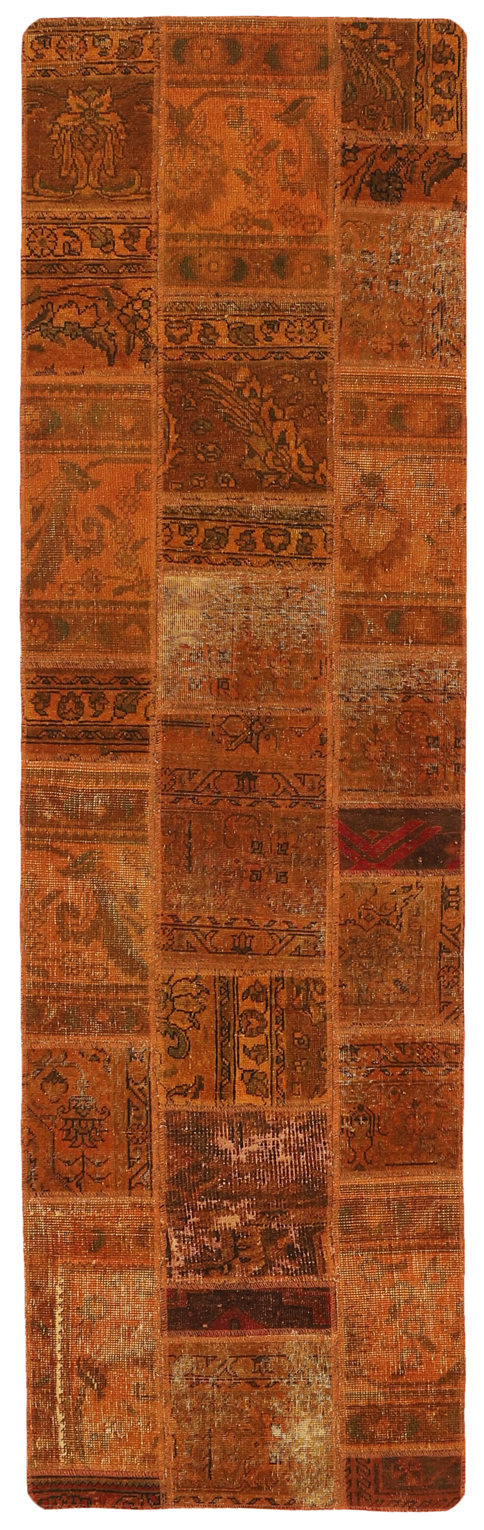 Vintage PatchworkItem no.: 1522015 Size: 74 cm x 253 cmVintage Royals are antique hand knotted rugs of Persian origin. The Patchwork Collection consists of old rugs that have been beyond repair, and instead cut into smaller pieces and used for patchwork. The Patchwork pieces are stonewashed and recoloured in light, dark, or bright colours, with the old pattern just being visible. The Patchwork rug forms a whole new and unique design. The rugs are of a very high quality and are available in large sizes. With the Vintage Royal Patchwork Collection, you do not just get a rug; you adorn your home with a unique piece of antique, Persian handcraft.