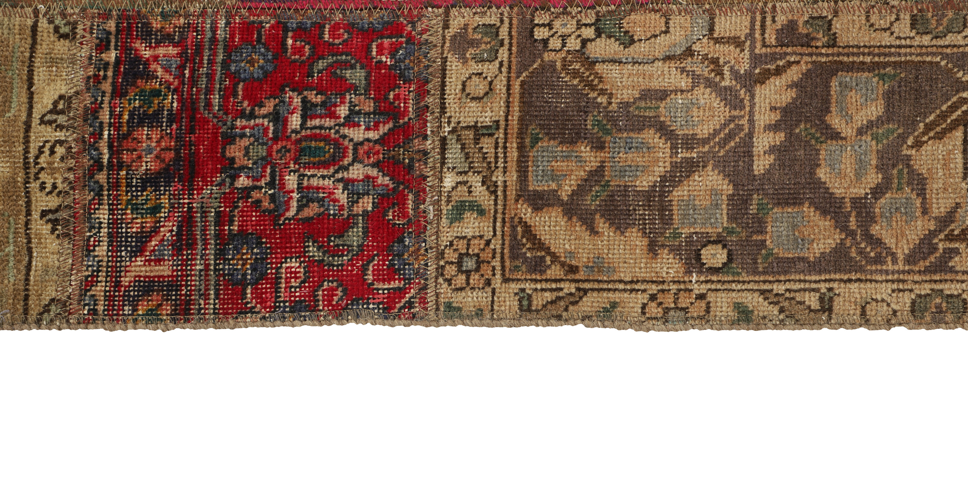 Vintage PatchworkItem no.: 1522017 Size: 84 cm x 314 cmVintage Royals are antique hand knotted rugs of Persian origin. The Patchwork Collection consists of old rugs that have been beyond repair, and instead cut into smaller pieces and used for patchwork. The Patchwork pieces are stonewashed and recoloured in light, dark, or bright colours, with the old pattern just being visible. The Patchwork rug forms a whole new and unique design. The rugs are of a very high quality and are available in large sizes. With the Vintage Royal Patchwork Collection, you do not just get a rug; you adorn your home with a unique piece of antique, Persian handcraft.