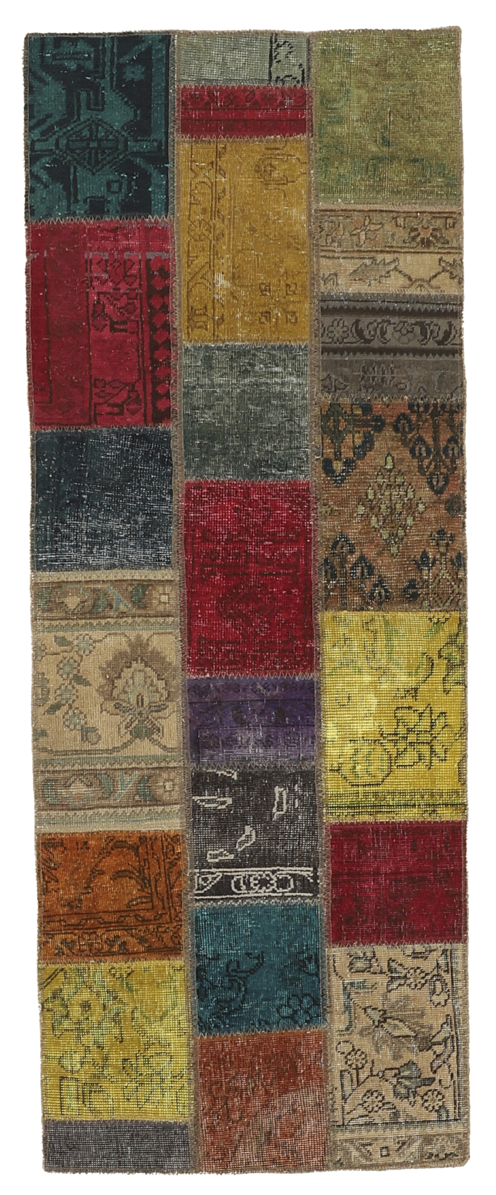 Vintage PatchworkItem no.: 1522075 Size: 77 cm x 206 cmVintage Royals are antique hand knotted rugs of Persian origin. The Patchwork Collection consists of old rugs that have been beyond repair, and instead cut into smaller pieces and used for patchwork. The Patchwork pieces are stonewashed and recoloured in light, dark, or bright colours, with the old pattern just being visible. The Patchwork rug forms a whole new and unique design. The rugs are of a very high quality and are available in large sizes. With the Vintage Royal Patchwork Collection, you do not just get a rug; you adorn your home with a unique piece of antique, Persian handcraft.