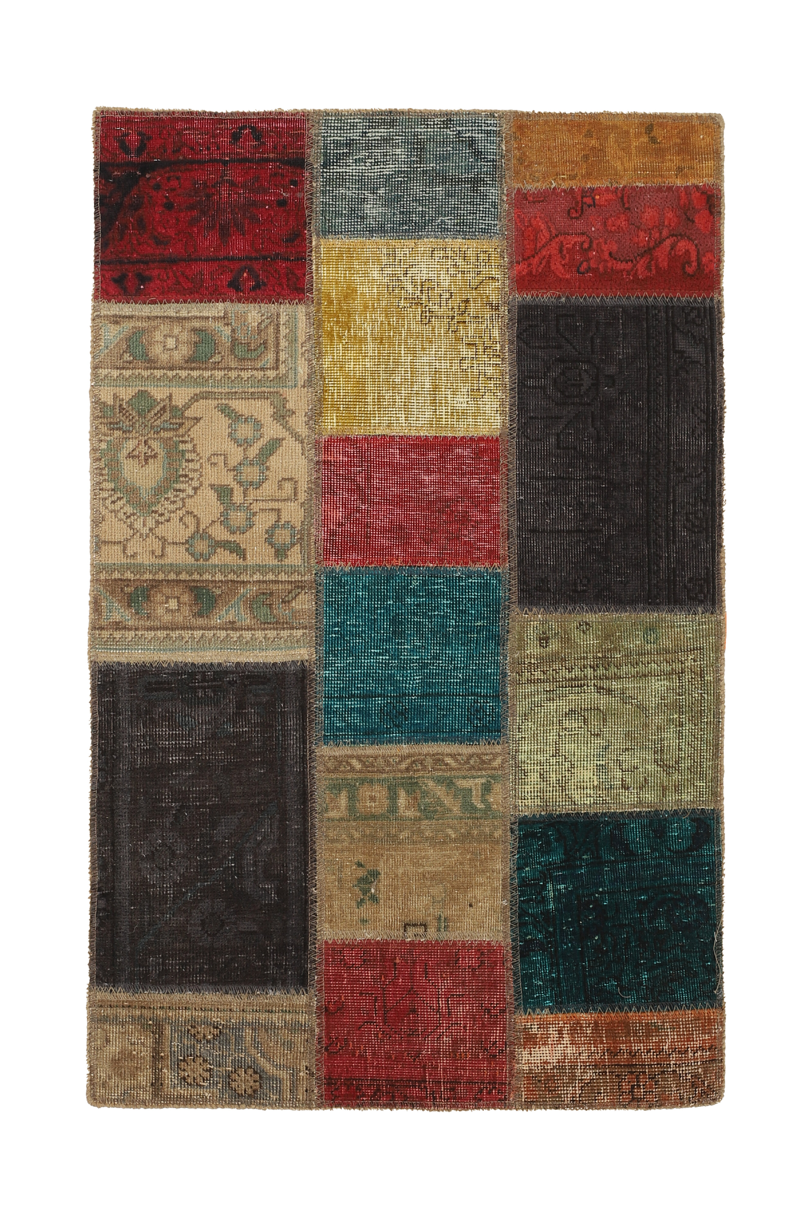Vintage PatchworkItem no.: 1522099 Size: 81 cm x 127 cmVintage Royals are antique hand knotted rugs of Persian origin. The Patchwork Collection consists of old rugs that have been beyond repair, and instead cut into smaller pieces and used for patchwork. The Patchwork pieces are stonewashed and recoloured in light, dark, or bright colours, with the old pattern just being visible. The Patchwork rug forms a whole new and unique design. The rugs are of a very high quality and are available in large sizes. With the Vintage Royal Patchwork Collection, you do not just get a rug; you adorn your home with a unique piece of antique, Persian handcraft.
