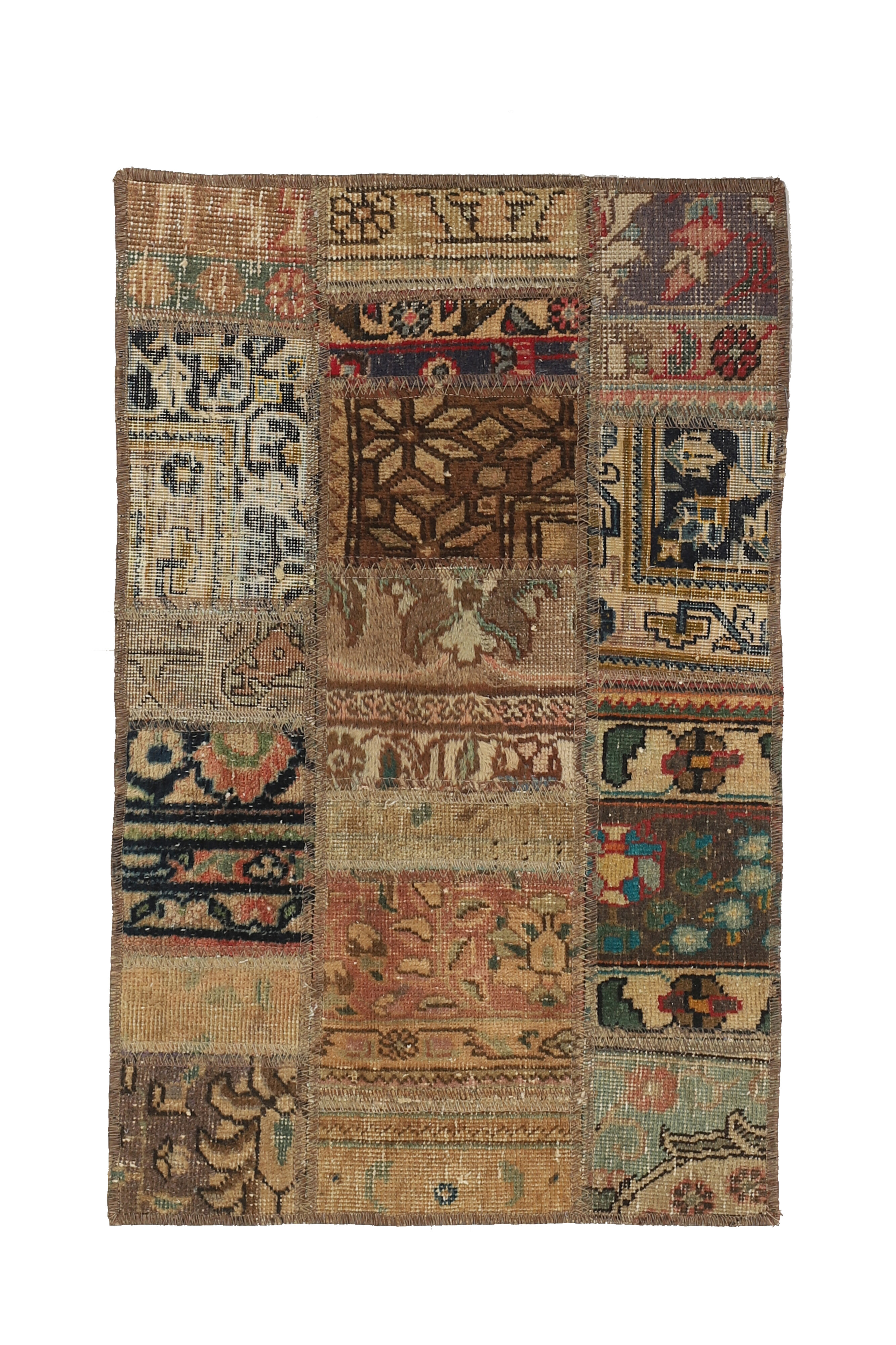 Vintage PatchworkItem no.: 1522104 Size: 61 cm x 95 cmVintage Royals are antique hand knotted rugs of Persian origin. The Patchwork Collection consists of old rugs that have been beyond repair, and instead cut into smaller pieces and used for patchwork. The Patchwork pieces are stonewashed and recoloured in light, dark, or bright colours, with the old pattern just being visible. The Patchwork rug forms a whole new and unique design. The rugs are of a very high quality and are available in large sizes. With the Vintage Royal Patchwork Collection, you do not just get a rug; you adorn your home with a unique piece of antique, Persian handcraft.