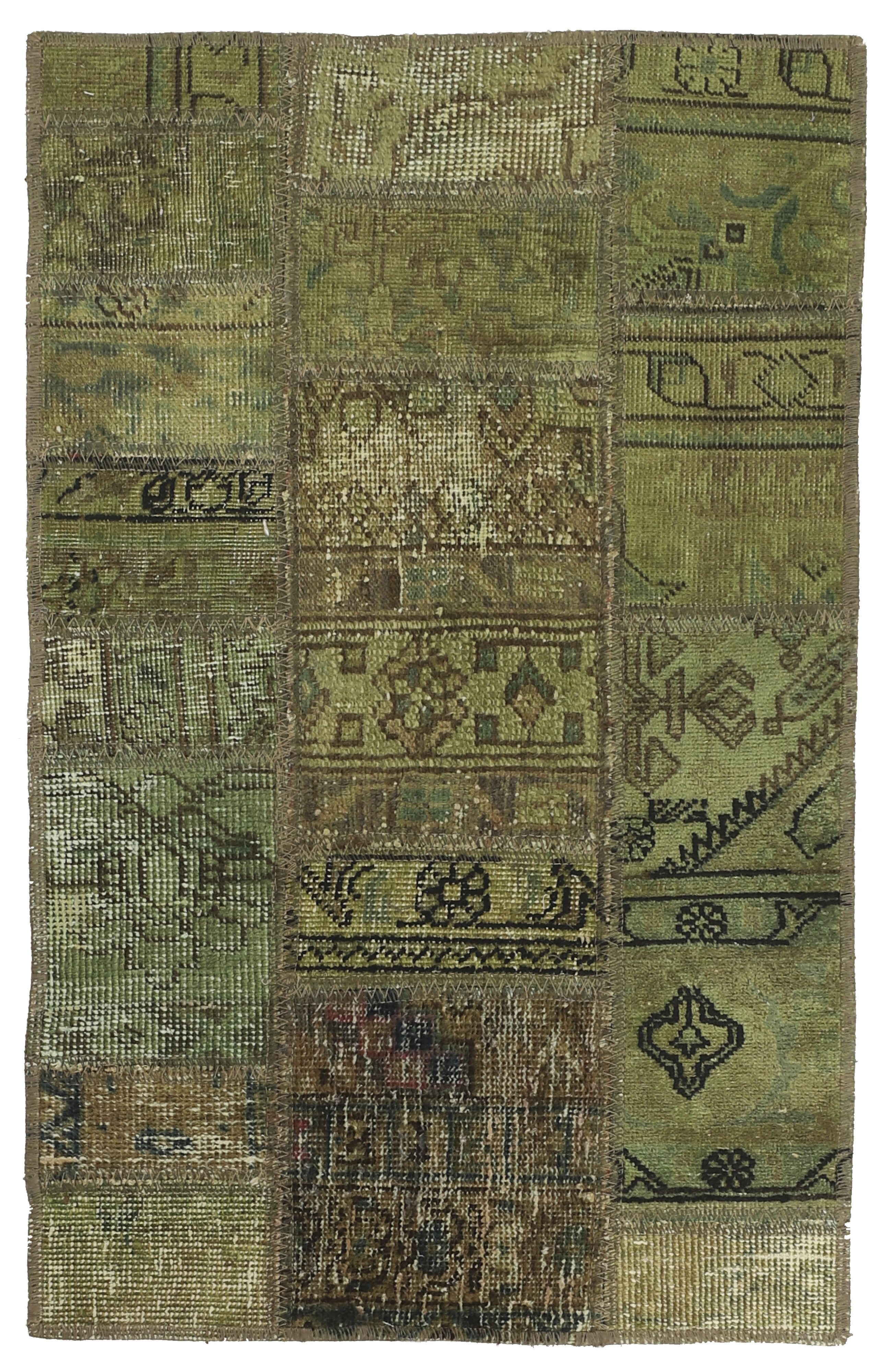 Vintage PatchworkItem no.: 1522127 Size: 61 cm x 101 cmVintage Royals are antique hand knotted rugs of Persian origin. The Patchwork Collection consists of old rugs that have been beyond repair, and instead cut into smaller pieces and used for patchwork. The Patchwork pieces are stonewashed and recoloured in light, dark, or bright colours, with the old pattern just being visible. The Patchwork rug forms a whole new and unique design. The rugs are of a very high quality and are available in large sizes. With the Vintage Royal Patchwork Collection, you do not just get a rug; you adorn your home with a unique piece of antique, Persian handcraft.