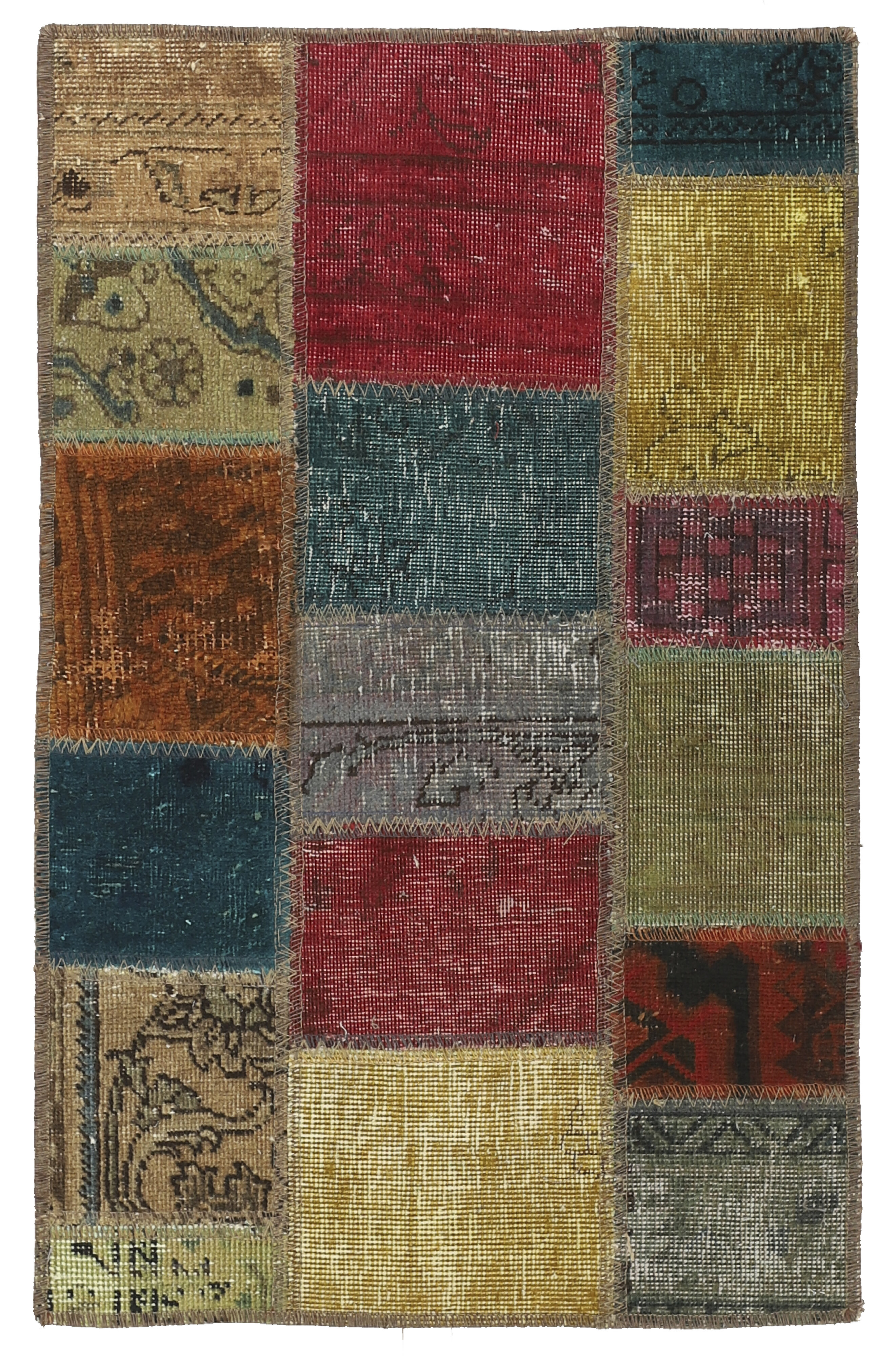 Vintage PatchworkItem no.: 1522131 Size: 60 cm x 95 cmVintage Royals are antique hand knotted rugs of Persian origin. The Patchwork Collection consists of old rugs that have been beyond repair, and instead cut into smaller pieces and used for patchwork. The Patchwork pieces are stonewashed and recoloured in light, dark, or bright colours, with the old pattern just being visible. The Patchwork rug forms a whole new and unique design. The rugs are of a very high quality and are available in large sizes. With the Vintage Royal Patchwork Collection, you do not just get a rug; you adorn your home with a unique piece of antique, Persian handcraft.