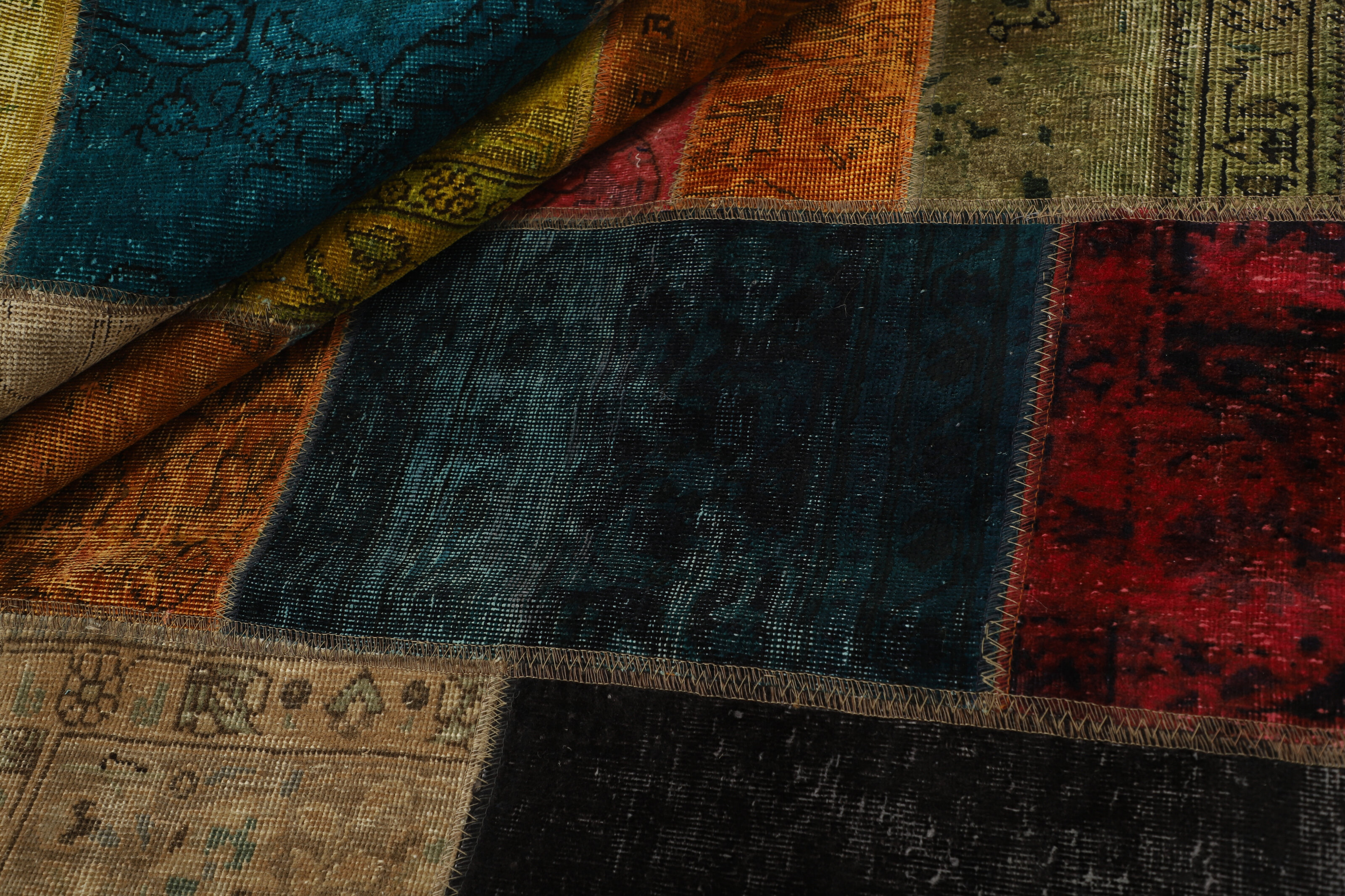 Vintage PatchworkItem no.: 1522149 Size: 208 cm x 306 cmVintage Royals are antique hand knotted rugs of Persian origin. The Patchwork Collection consists of old rugs that have been beyond repair, and instead cut into smaller pieces and used for patchwork. The Patchwork pieces are stonewashed and recoloured in light, dark, or bright colours, with the old pattern just being visible. The Patchwork rug forms a whole new and unique design. The rugs are of a very high quality and are available in large sizes. With the Vintage Royal Patchwork Collection, you do not just get a rug; you adorn your home with a unique piece of antique, Persian handcraft.