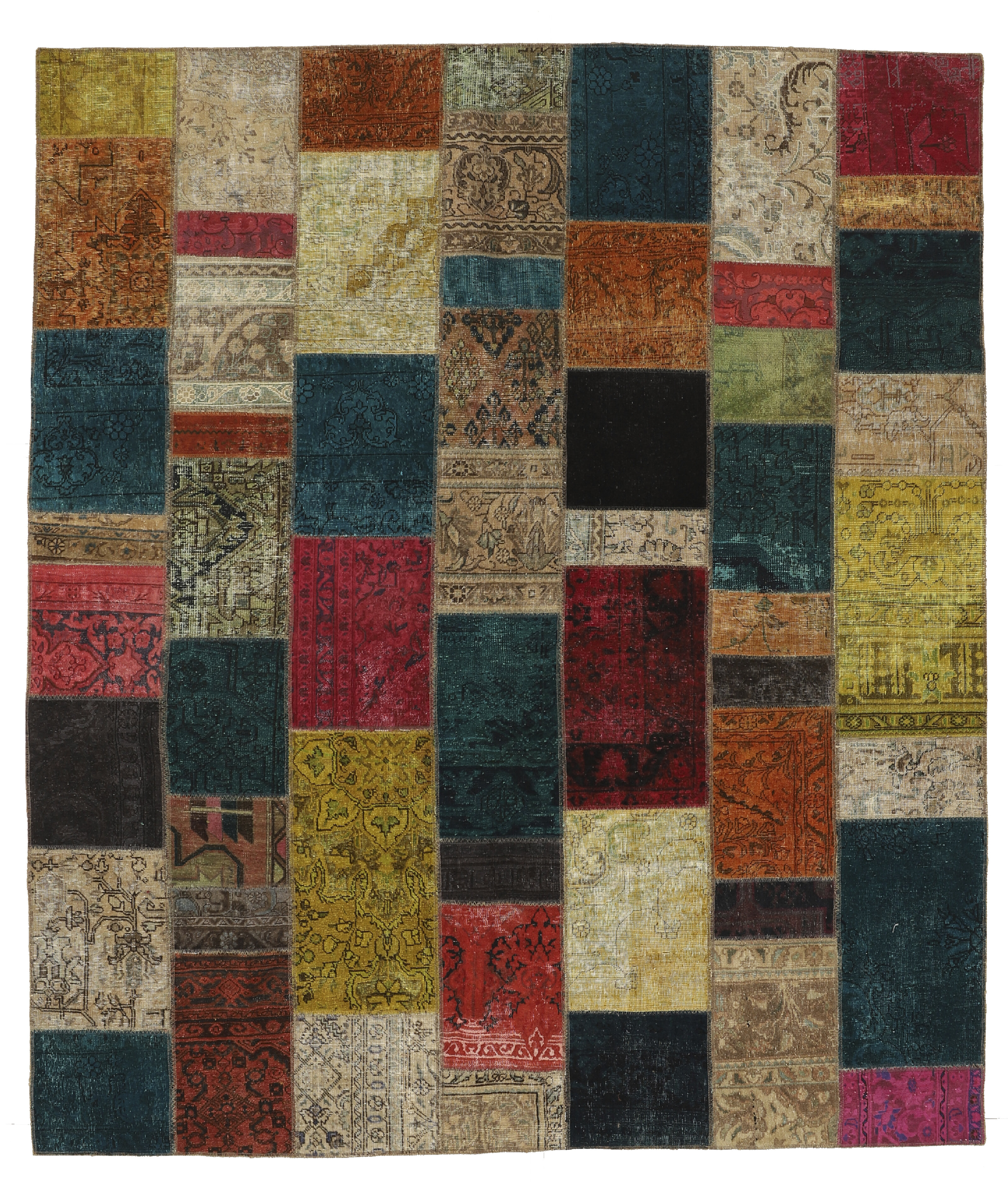 Vintage PatchworkItem no.: 1522152 Size: 261 cm x 303 cmVintage Royals are antique hand knotted rugs of Persian origin. The Patchwork Collection consists of old rugs that have been beyond repair, and instead cut into smaller pieces and used for patchwork. The Patchwork pieces are stonewashed and recoloured in light, dark, or bright colours, with the old pattern just being visible. The Patchwork rug forms a whole new and unique design. The rugs are of a very high quality and are available in large sizes. With the Vintage Royal Patchwork Collection, you do not just get a rug; you adorn your home with a unique piece of antique, Persian handcraft.