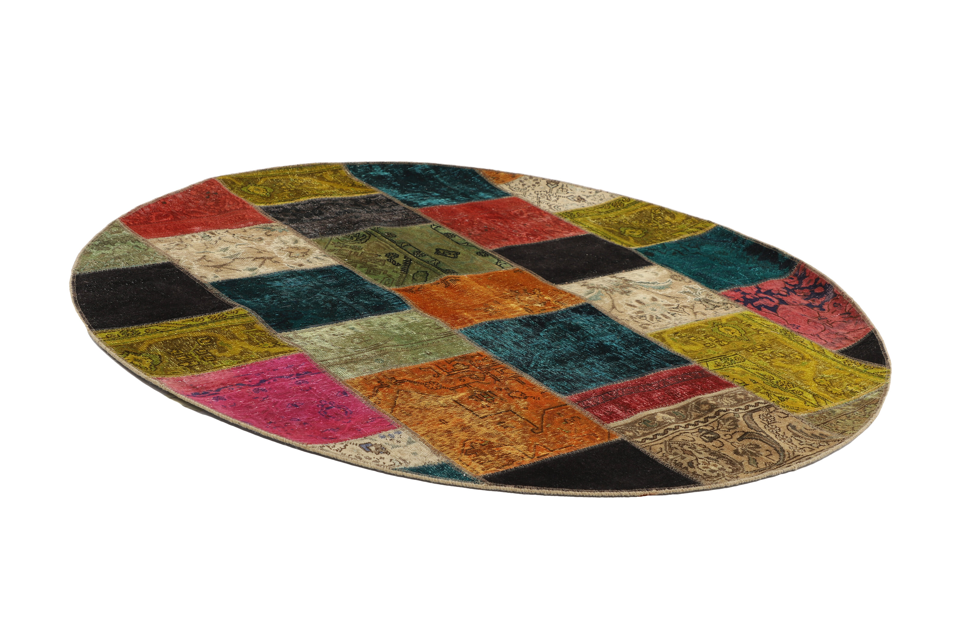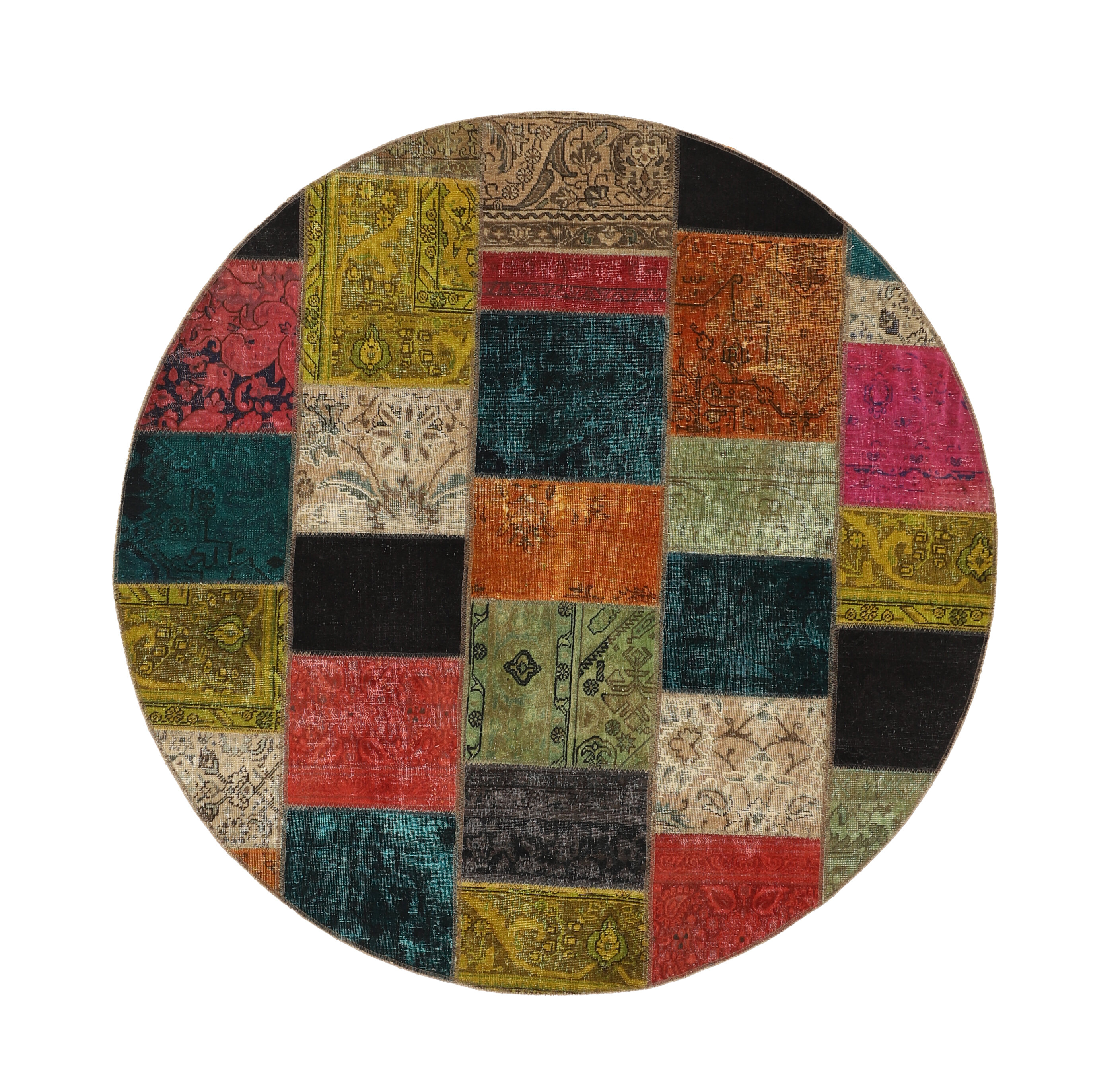 Vintage PatchworkItem no.: 1522168 Size: 200 cm x 200 cmVintage Royals are antique hand knotted rugs of Persian origin. The Patchwork Collection consists of old rugs that have been beyond repair, and instead cut into smaller pieces and used for patchwork. The Patchwork pieces are stonewashed and recoloured in light, dark, or bright colours, with the old pattern just being visible. The Patchwork rug forms a whole new and unique design. The rugs are of a very high quality and are available in large sizes. With the Vintage Royal Patchwork Collection, you do not just get a rug; you adorn your home with a unique piece of antique, Persian handcraft.
