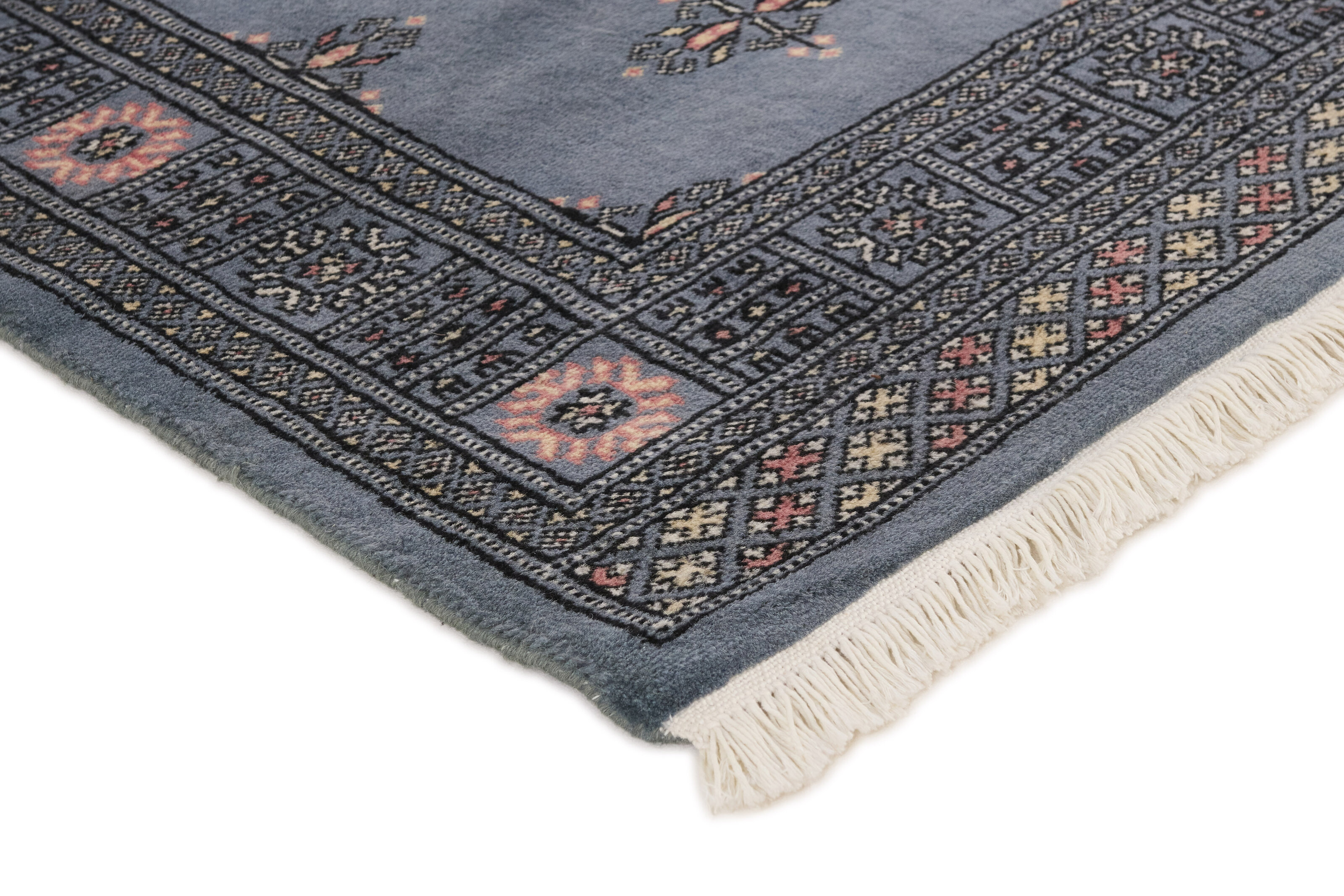 The 2-Ply rugs are produced in Lahore, Pakistan’s second largest city, which is also is the centre of the country’s hand knotted rug production. The rugs most often have the Tekke and Bokara patterns, which were originally inspired by patterns from Turkmenistan. The people of the Tekke Tribe, which was the largest nomadic tribe in Turkmenistan, were known as very industrious rug producers. The term Ply indicates the number of threads wound together to produce the yarn itself; 2-Ply thus guarantees that two threads were wound together during the knotting to make the yarn. The quality of wool is particularly soft and shining, and the warm-coloured patterns are simple and harmonious.