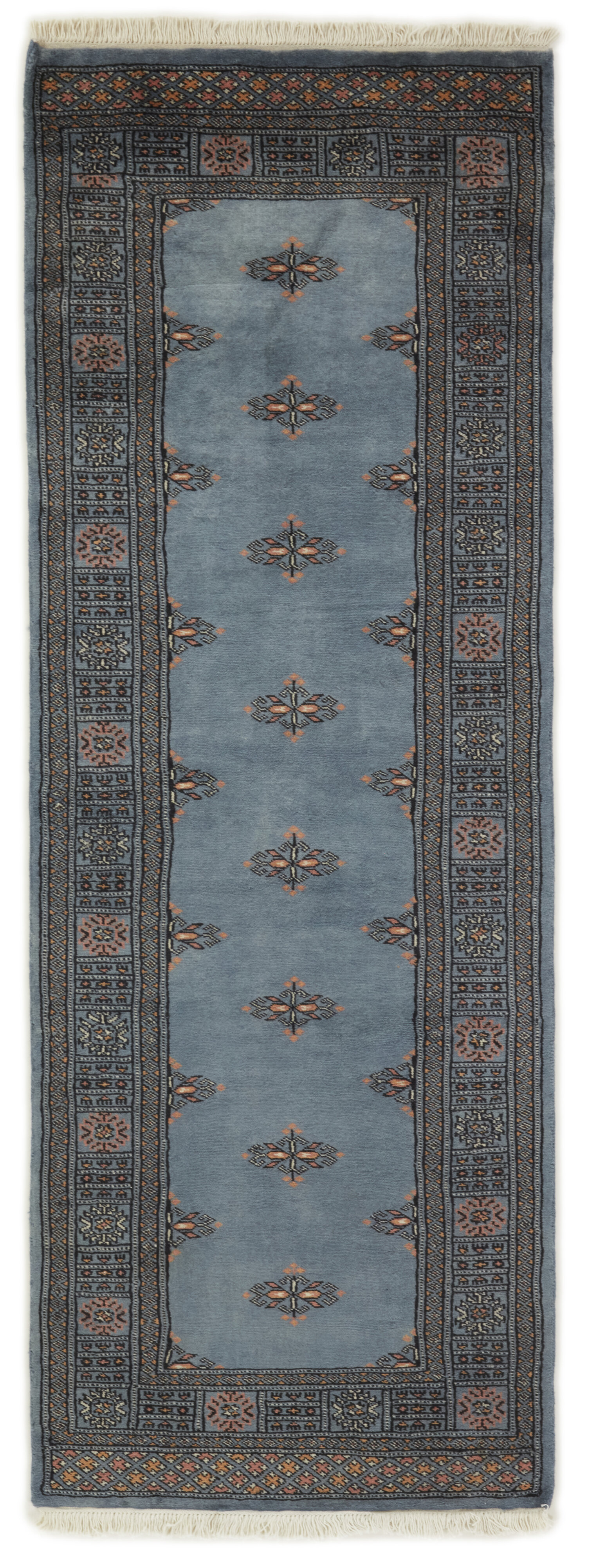 The 2-Ply rugs are produced in Lahore, Pakistan’s second largest city, which is also is the centre of the country’s hand knotted rug production. The rugs most often have the Tekke and Bokara patterns, which were originally inspired by patterns from Turkmenistan. The people of the Tekke Tribe, which was the largest nomadic tribe in Turkmenistan, were known as very industrious rug producers. The term Ply indicates the number of threads wound together to produce the yarn itself; 2-Ply thus guarantees that two threads were wound together during the knotting to make the yarn. The quality of wool is particularly soft and shining, and the warm-coloured patterns are simple and harmonious.