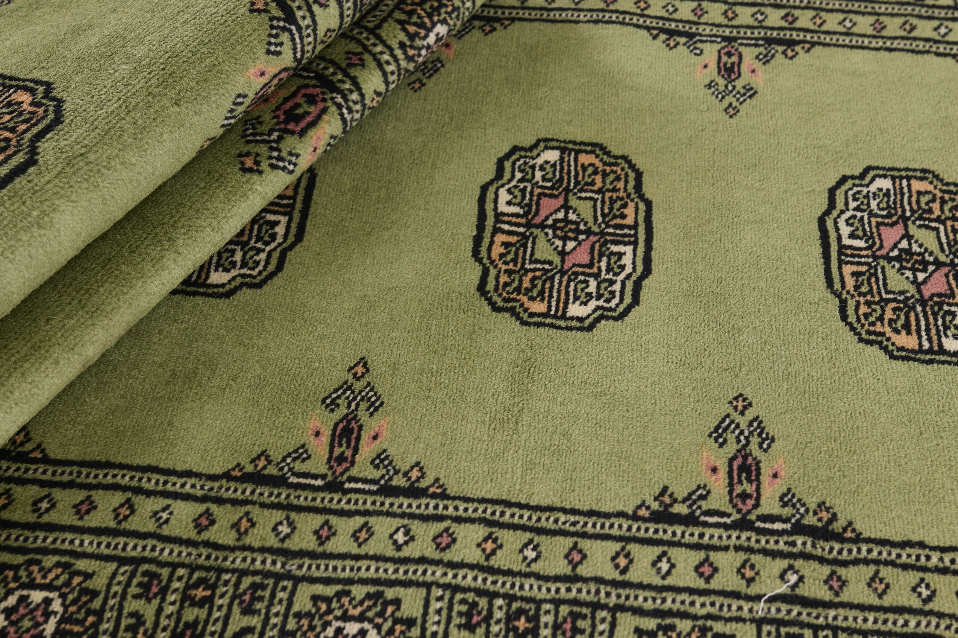 The 2-Ply rugs are produced in Lahore, Pakistan’s second largest city, which is also is the centre of the country’s hand knotted rug production. The rugs most often have the Tekke and Bokara patterns, which were originally inspired by patterns from Turkmenistan. The people of the Tekke Tribe, which was the largest nomadic tribe in Turkmenistan, were known as very industrious rug producers. The term Ply indicates the number of threads wound together to produce the yarn itself; 2-Ply thus guarantees that two threads were wound together during the knotting to make the yarn. The quality of wool is particularly soft and shining, and the warm-coloured patterns are simple and harmonious.