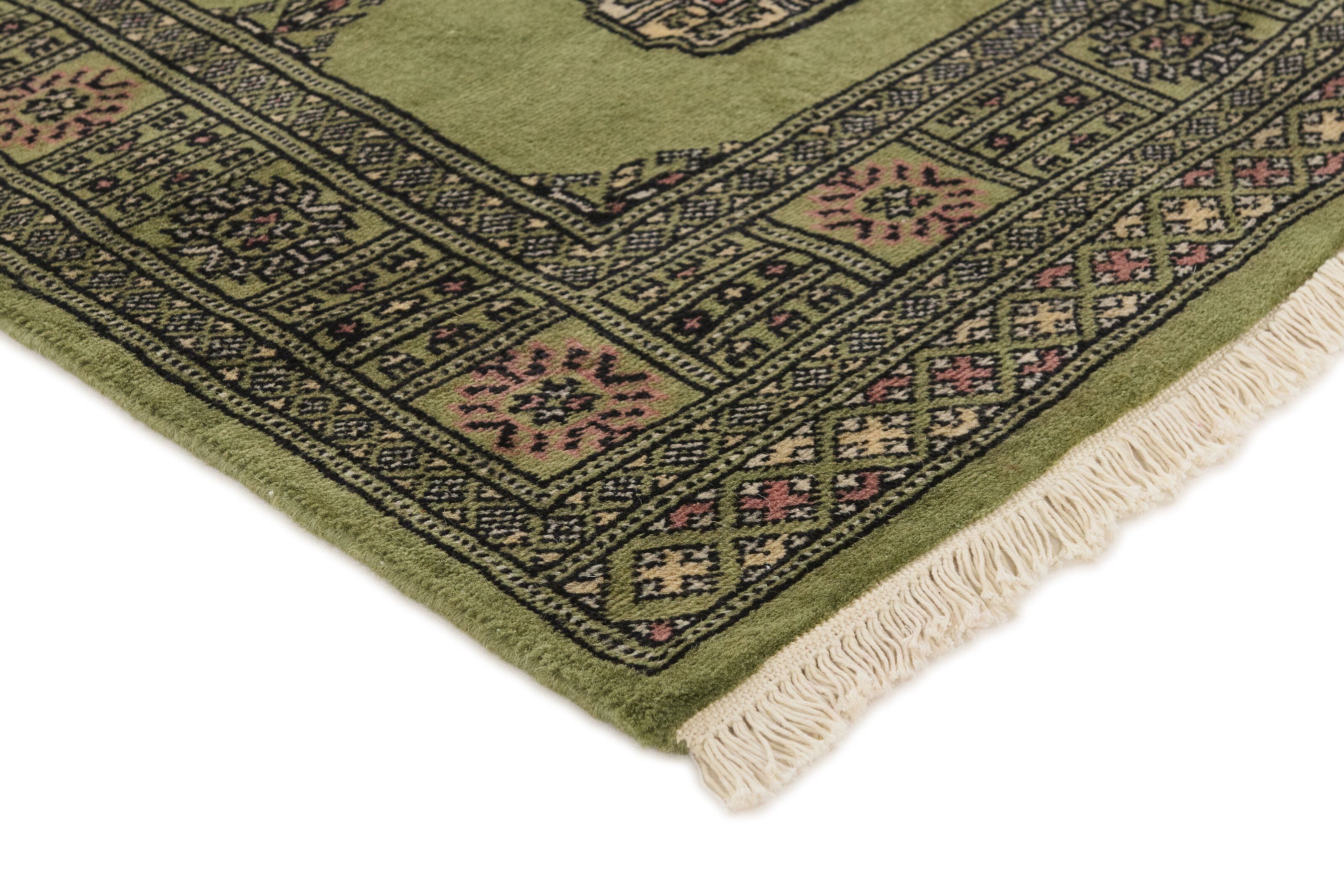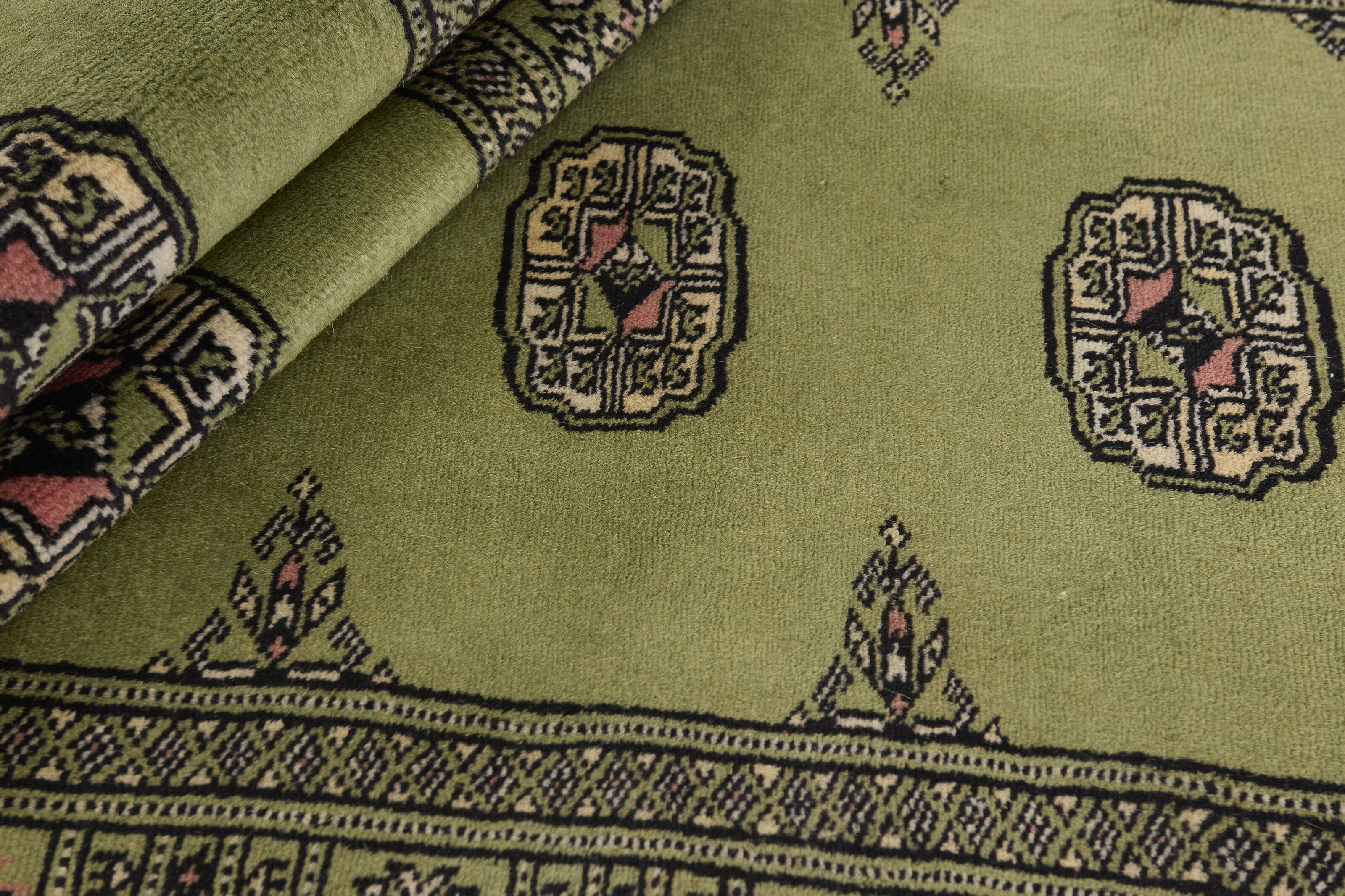 The 2-Ply rugs are produced in Lahore, Pakistan’s second largest city, which is also is the centre of the country’s hand knotted rug production. The rugs most often have the Tekke and Bokara patterns, which were originally inspired by patterns from Turkmenistan. The people of the Tekke Tribe, which was the largest nomadic tribe in Turkmenistan, were known as very industrious rug producers. The term Ply indicates the number of threads wound together to produce the yarn itself; 2-Ply thus guarantees that two threads were wound together during the knotting to make the yarn. The quality of wool is particularly soft and shining, and the warm-coloured patterns are simple and harmonious.