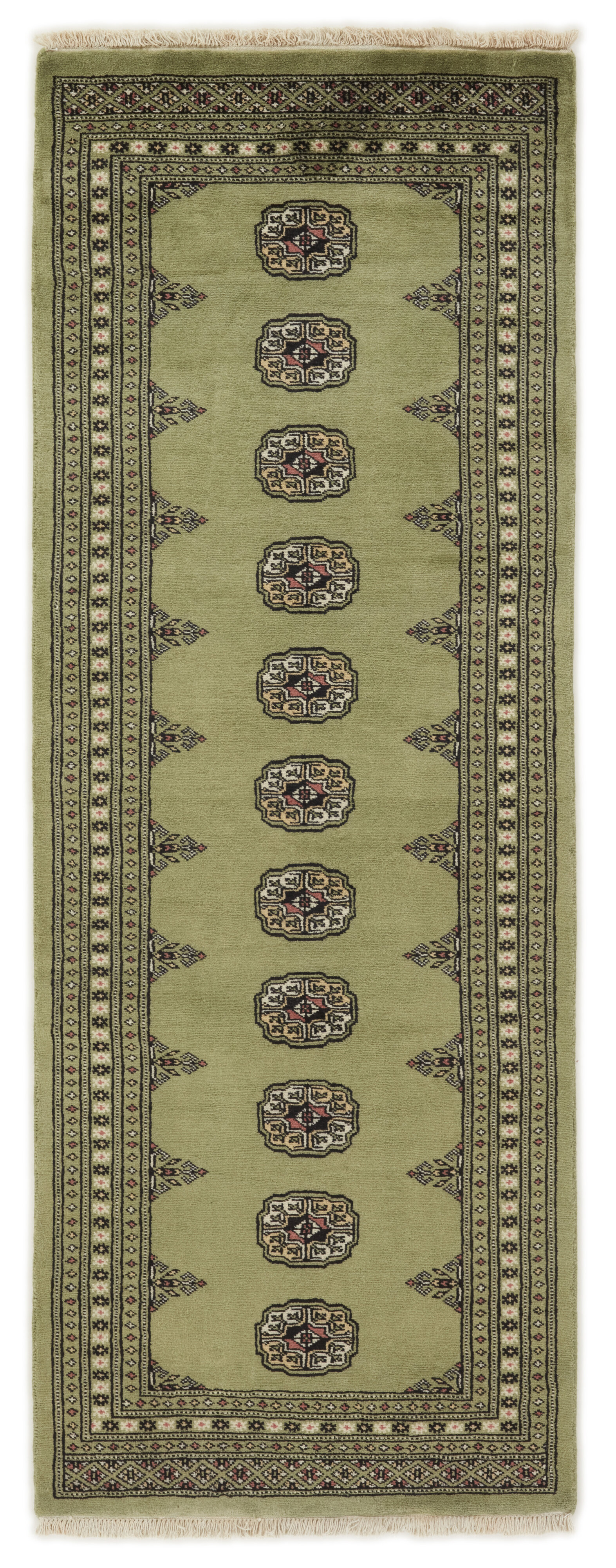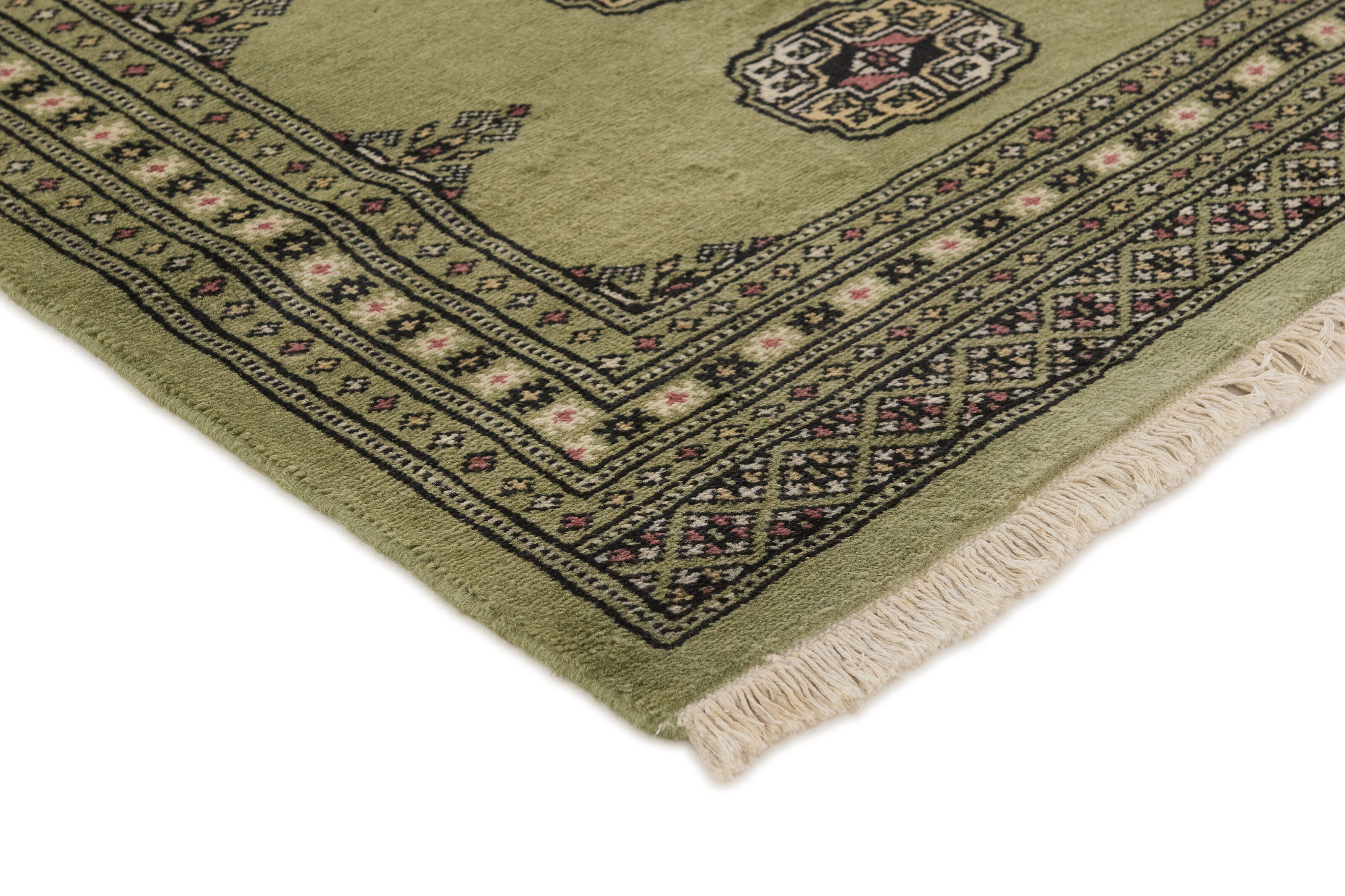 The 2-Ply rugs are produced in Lahore, Pakistan’s second largest city, which is also is the centre of the country’s hand knotted rug production. The rugs most often have the Tekke and Bokara patterns, which were originally inspired by patterns from Turkmenistan. The people of the Tekke Tribe, which was the largest nomadic tribe in Turkmenistan, were known as very industrious rug producers. The term Ply indicates the number of threads wound together to produce the yarn itself; 2-Ply thus guarantees that two threads were wound together during the knotting to make the yarn. The quality of wool is particularly soft and shining, and the warm-coloured patterns are simple and harmonious.