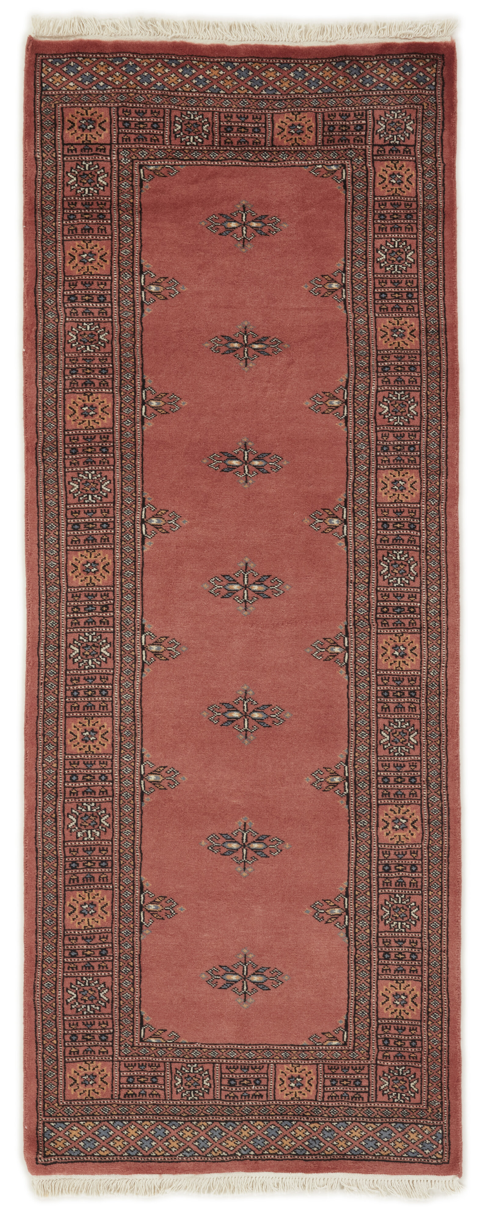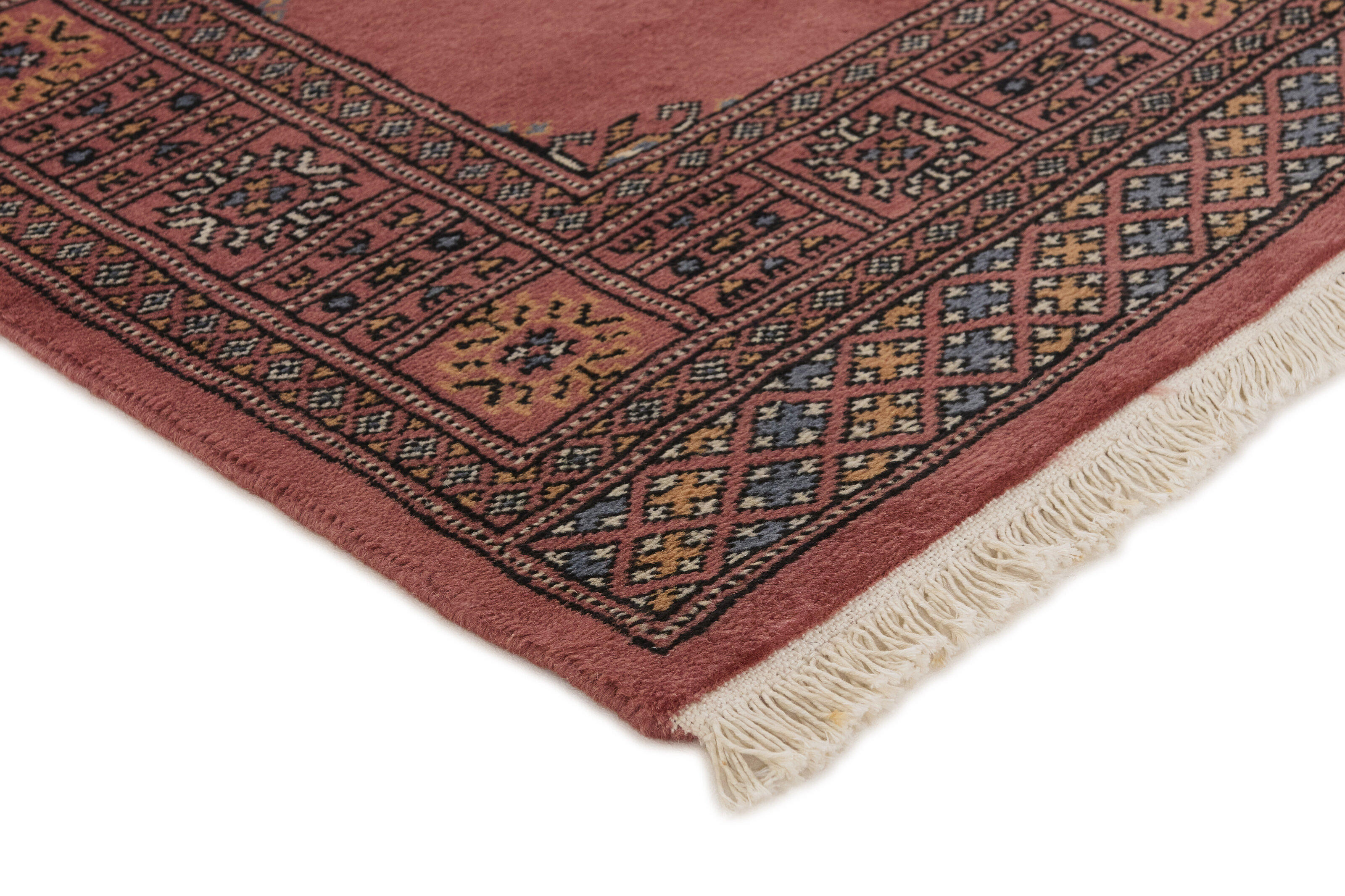 The 2-Ply rugs are produced in Lahore, Pakistan’s second largest city, which is also is the centre of the country’s hand knotted rug production. The rugs most often have the Tekke and Bokara patterns, which were originally inspired by patterns from Turkmenistan. The people of the Tekke Tribe, which was the largest nomadic tribe in Turkmenistan, were known as very industrious rug producers. The term Ply indicates the number of threads wound together to produce the yarn itself; 2-Ply thus guarantees that two threads were wound together during the knotting to make the yarn. The quality of wool is particularly soft and shining, and the warm-coloured patterns are simple and harmonious.
