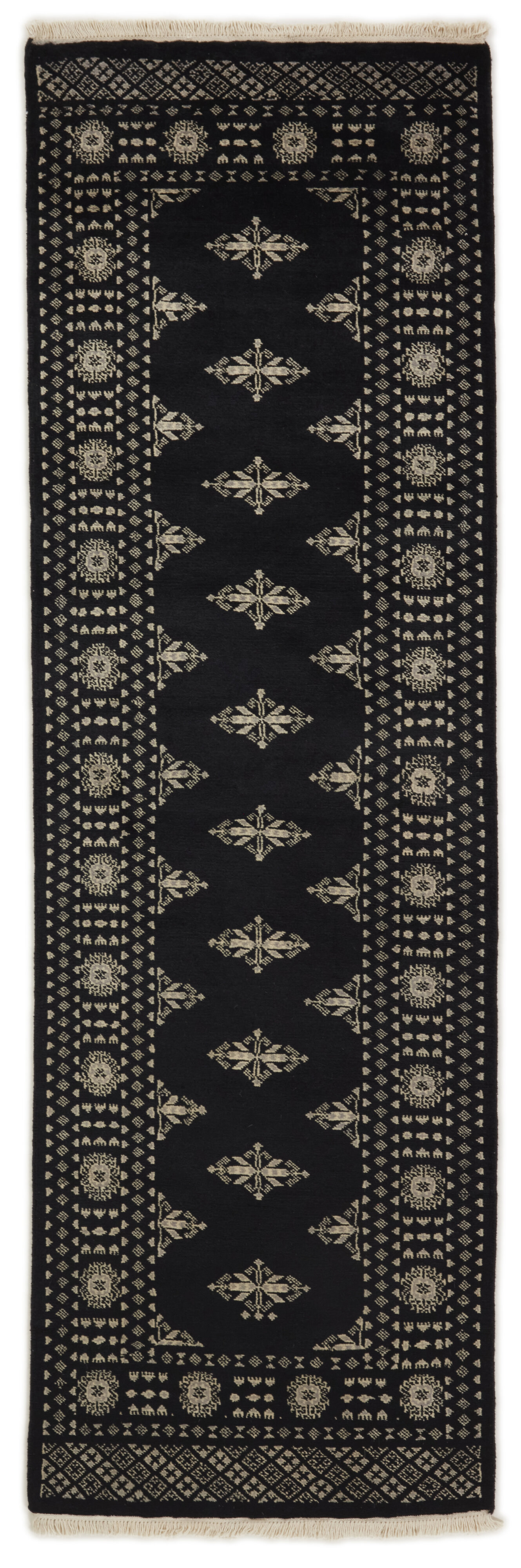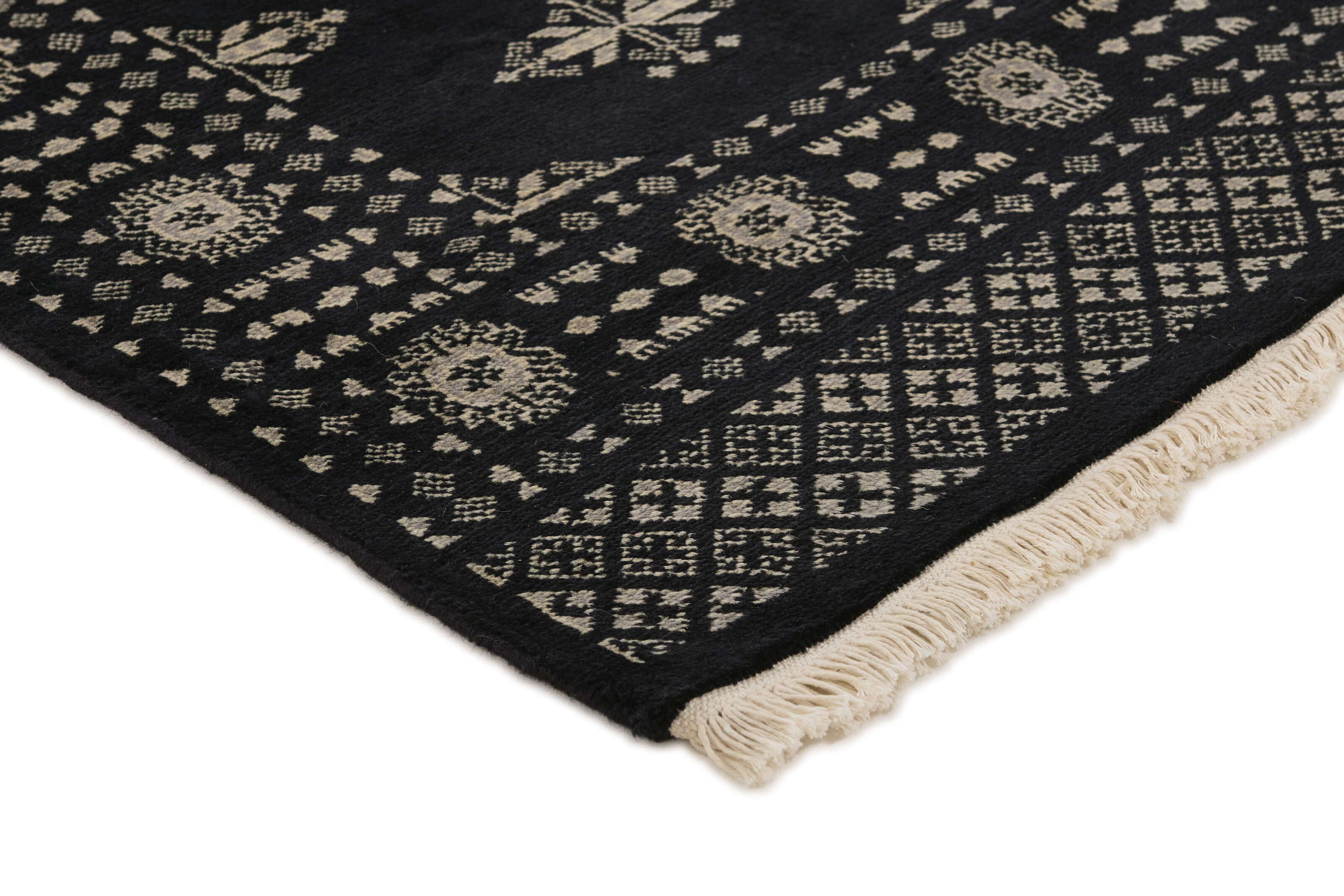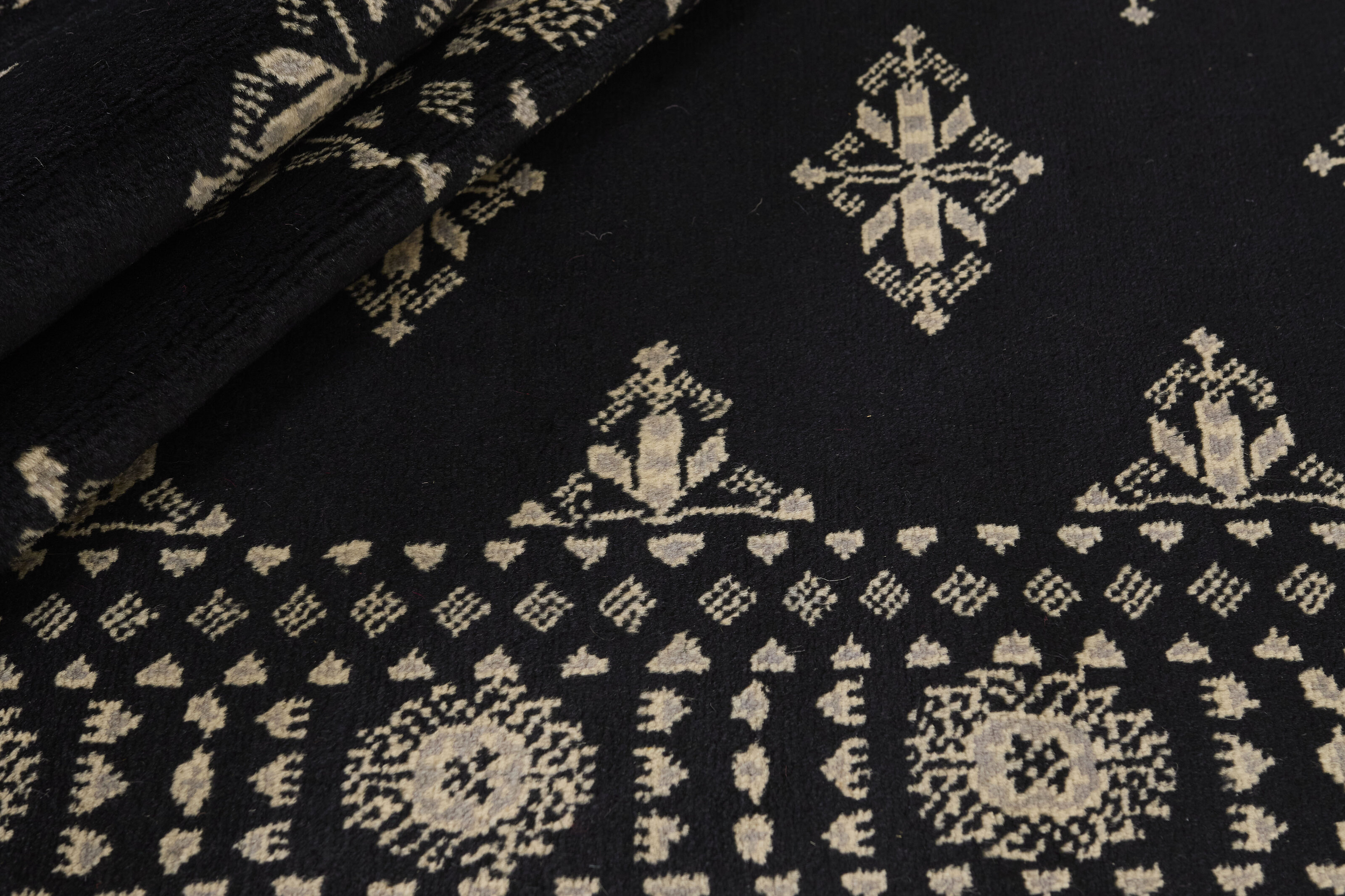The 2-Ply rugs are produced in Lahore, Pakistan’s second largest city, which is also is the centre of the country’s hand knotted rug production. The rugs most often have the Tekke and Bokara patterns, which were originally inspired by patterns from Turkmenistan. The people of the Tekke Tribe, which was the largest nomadic tribe in Turkmenistan, were known as very industrious rug producers. The term Ply indicates the number of threads wound together to produce the yarn itself; 2-Ply thus guarantees that two threads were wound together during the knotting to make the yarn. The quality of wool is particularly soft and shining, and the warm-coloured patterns are simple and harmonious.
