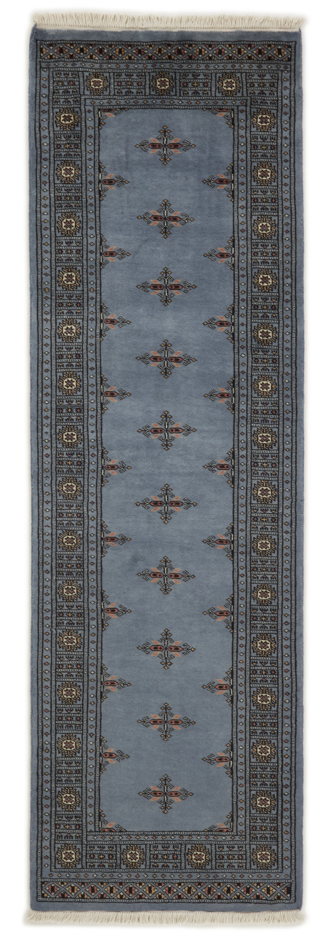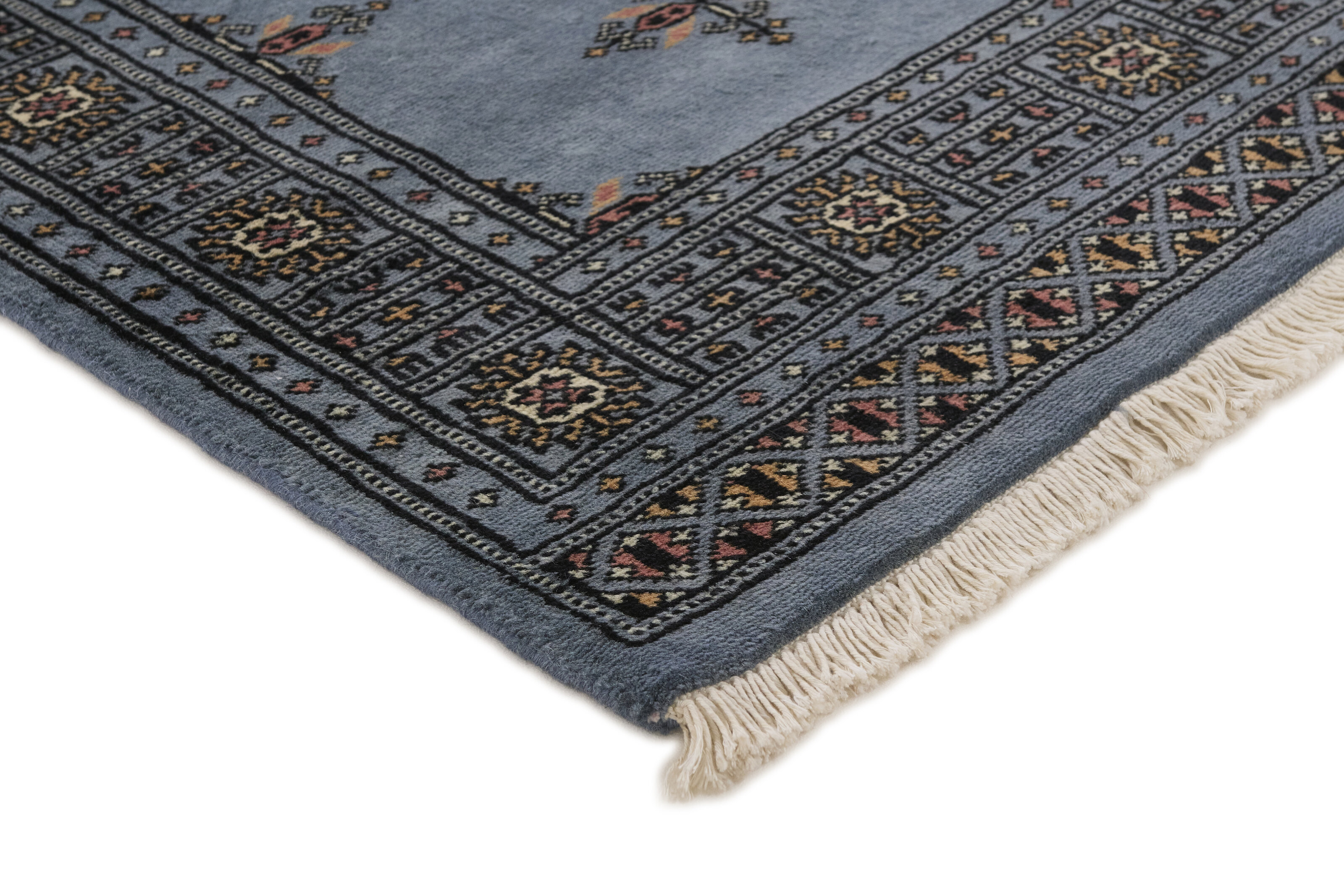 The 2-Ply rugs are produced in Lahore, Pakistan’s second largest city, which is also is the centre of the country’s hand knotted rug production. The rugs most often have the Tekke and Bokara patterns, which were originally inspired by patterns from Turkmenistan. The people of the Tekke Tribe, which was the largest nomadic tribe in Turkmenistan, were known as very industrious rug producers. The term Ply indicates the number of threads wound together to produce the yarn itself; 2-Ply thus guarantees that two threads were wound together during the knotting to make the yarn. The quality of wool is particularly soft and shining, and the warm-coloured patterns are simple and harmonious.