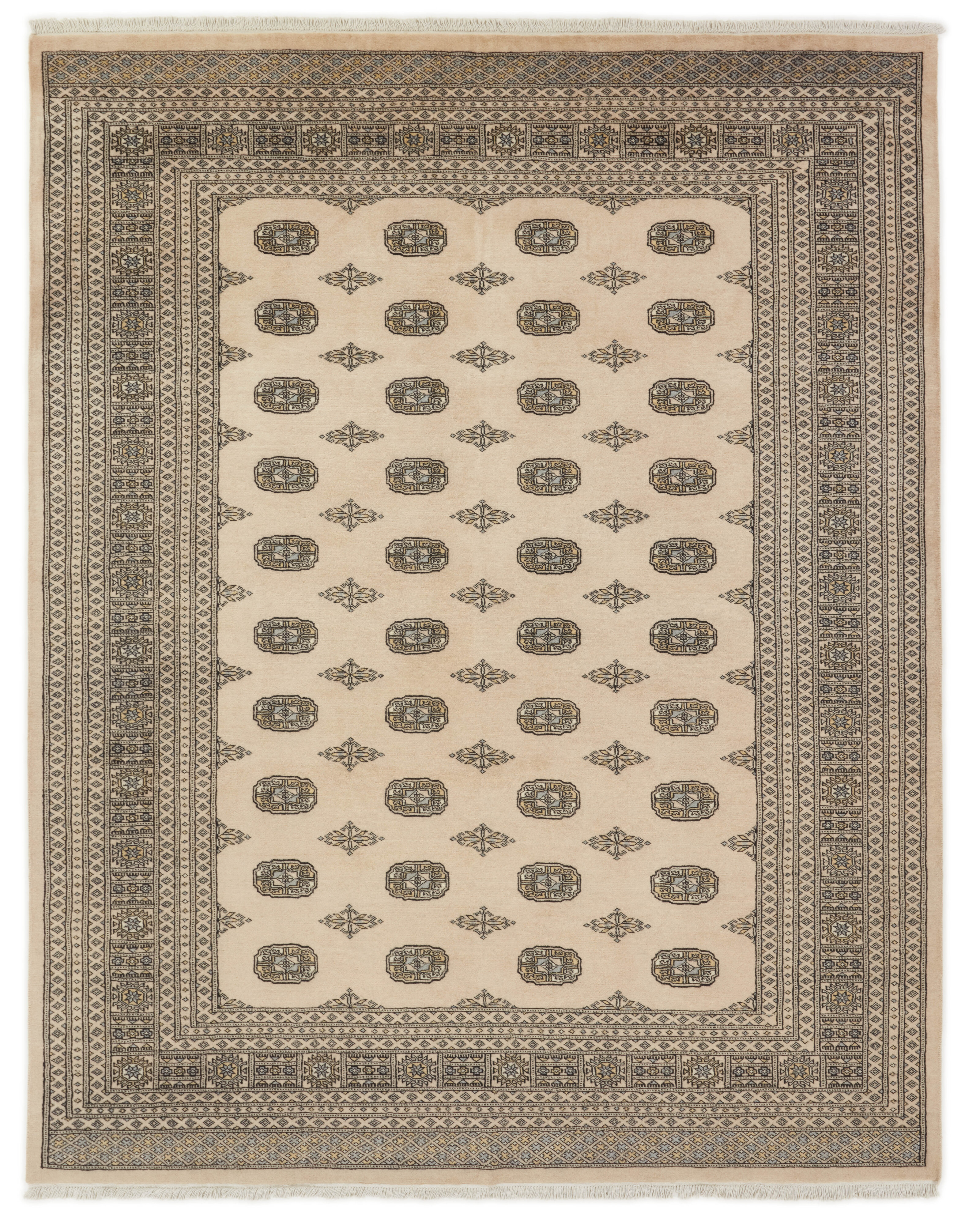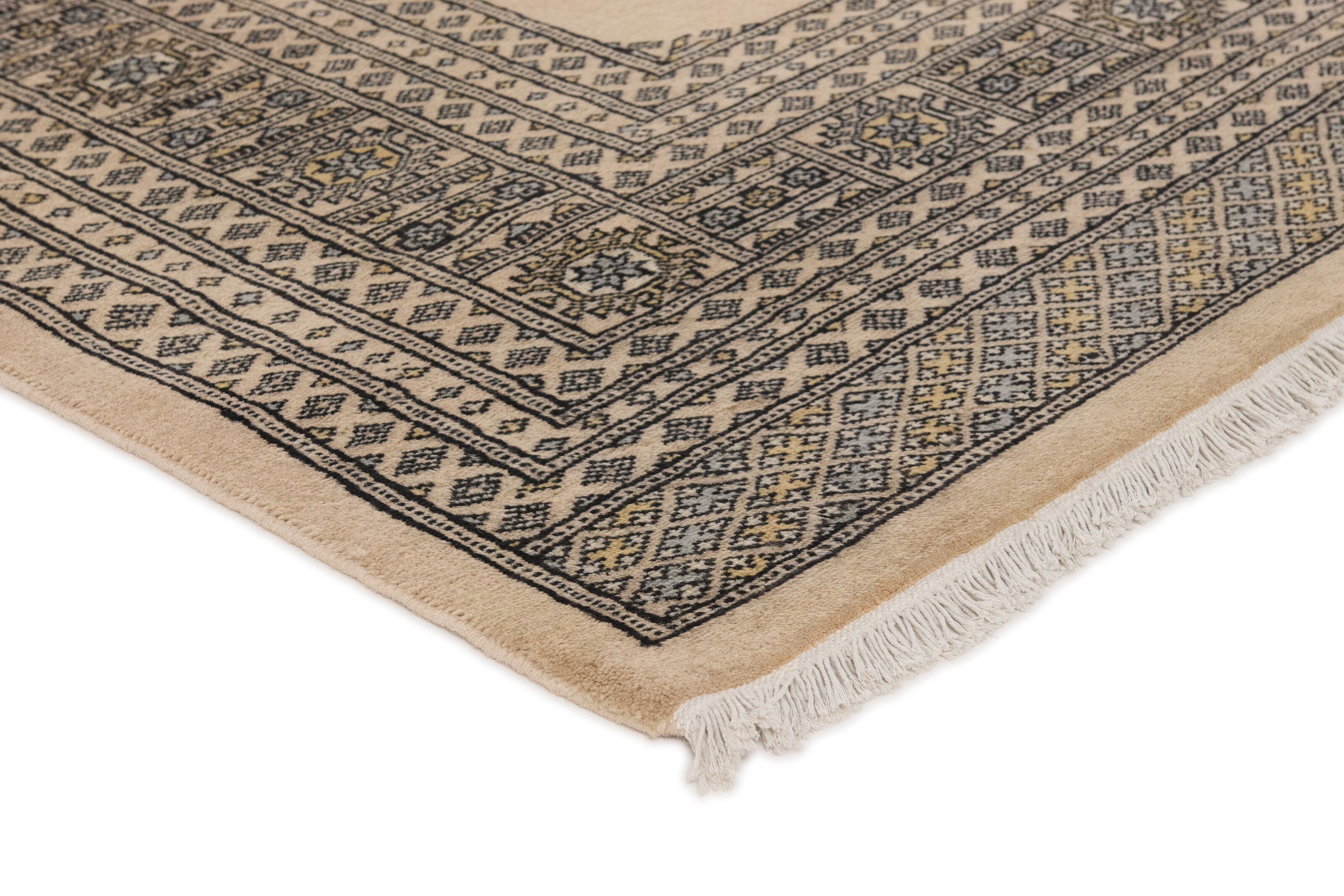 The 2-Ply rugs are produced in Lahore, Pakistan’s second largest city, which is also is the centre of the country’s hand knotted rug production. The rugs most often have the Tekke and Bokara patterns, which were originally inspired by patterns from Turkmenistan. The people of the Tekke Tribe, which was the largest nomadic tribe in Turkmenistan, were known as very industrious rug producers. The term Ply indicates the number of threads wound together to produce the yarn itself; 2-Ply thus guarantees that two threads were wound together during the knotting to make the yarn. The quality of wool is particularly soft and shining, and the warm-coloured patterns are simple and harmonious.