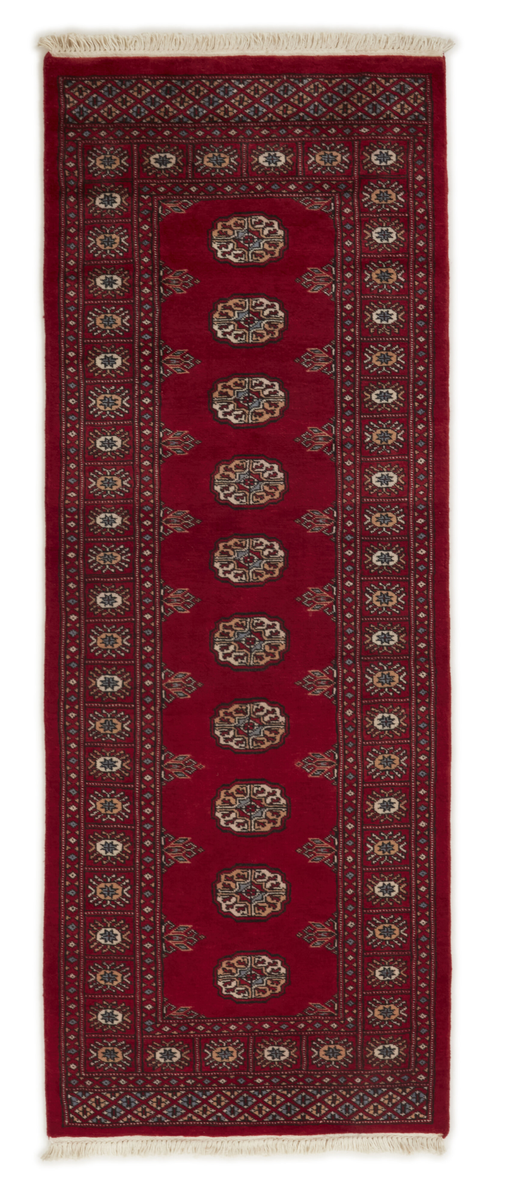The 2-Ply rugs are produced in Lahore, Pakistan’s second largest city, which is also is the centre of the country’s hand knotted rug production. The rugs most often have the Tekke and Bokara patterns, which were originally inspired by patterns from Turkmenistan. The people of the Tekke Tribe, which was the largest nomadic tribe in Turkmenistan, were known as very industrious rug producers. The term Ply indicates the number of threads wound together to produce the yarn itself; 2-Ply thus guarantees that two threads were wound together during the knotting to make the yarn. The quality of wool is particularly soft and shining, and the warm-coloured patterns are simple and harmonious.