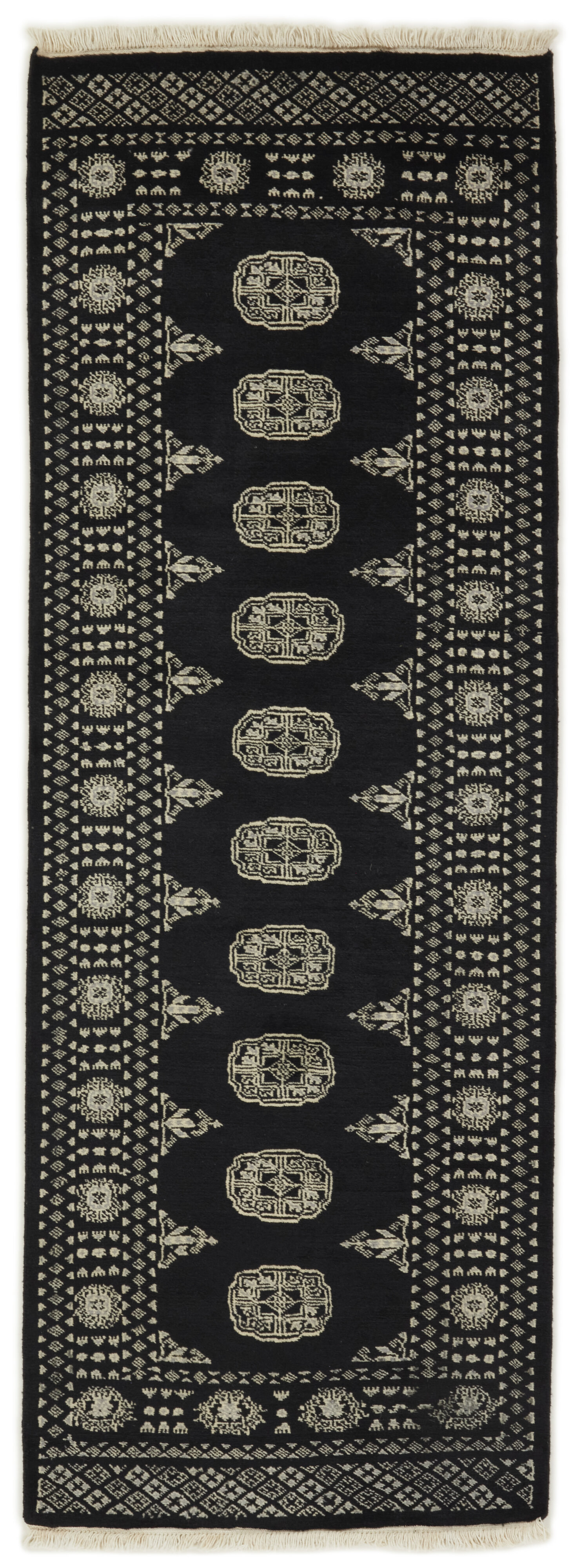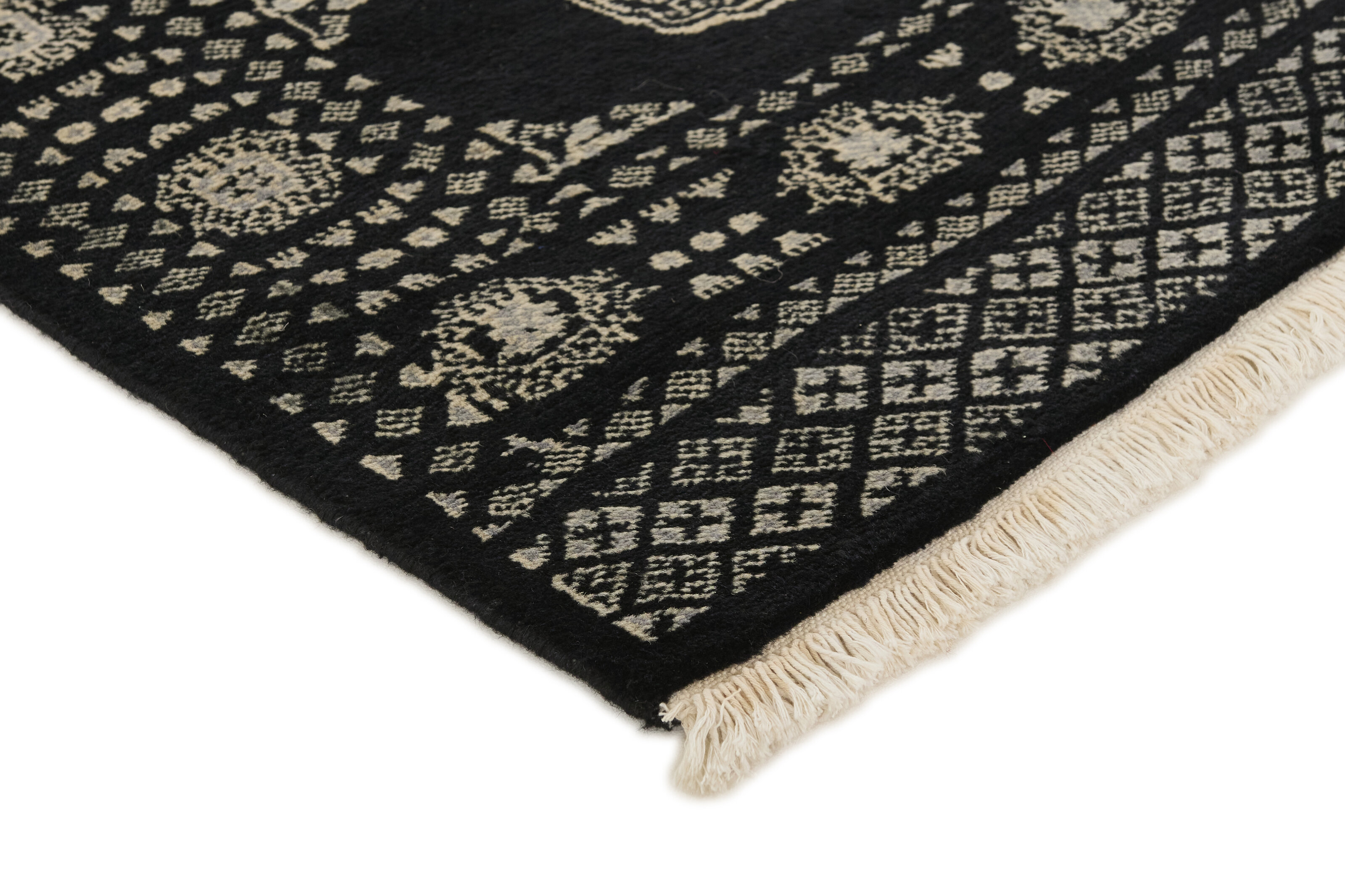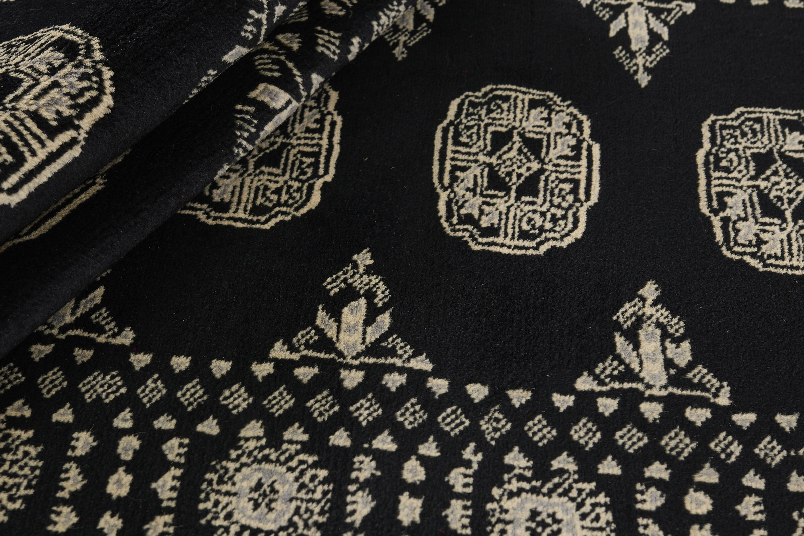 The 2-Ply rugs are produced in Lahore, Pakistan’s second largest city, which is also is the centre of the country’s hand knotted rug production. The rugs most often have the Tekke and Bokara patterns, which were originally inspired by patterns from Turkmenistan. The people of the Tekke Tribe, which was the largest nomadic tribe in Turkmenistan, were known as very industrious rug producers. The term Ply indicates the number of threads wound together to produce the yarn itself; 2-Ply thus guarantees that two threads were wound together during the knotting to make the yarn. The quality of wool is particularly soft and shining, and the warm-coloured patterns are simple and harmonious.