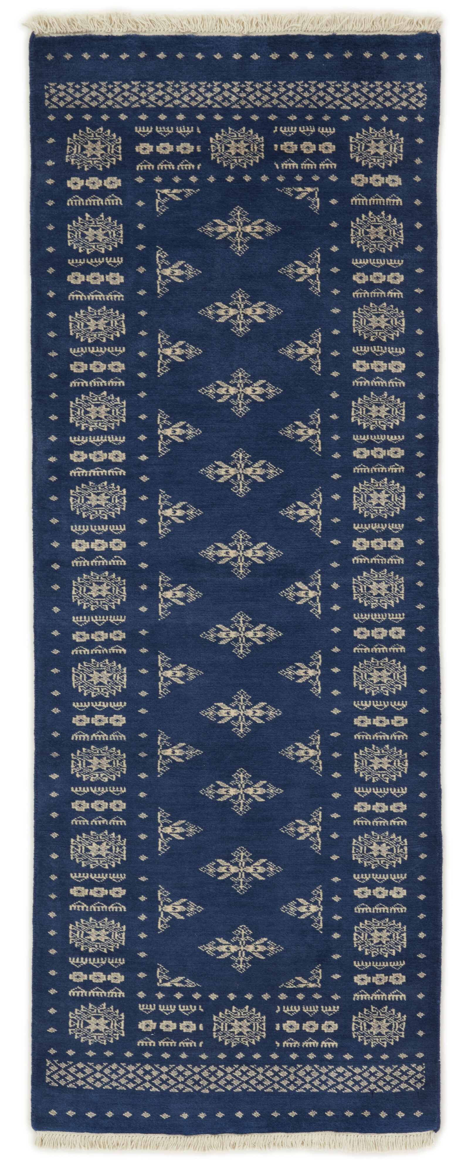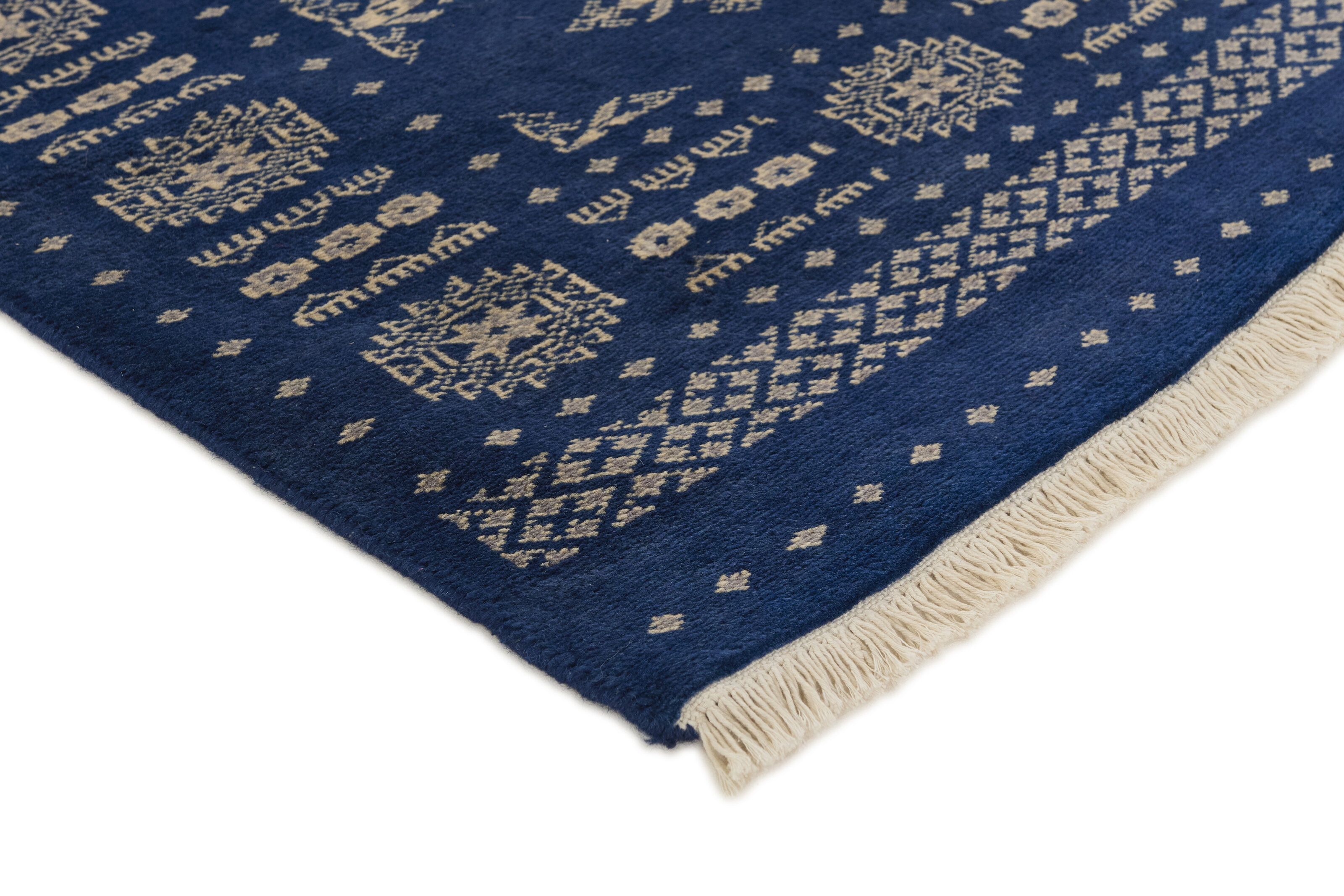The 2-Ply rugs are produced in Lahore, Pakistan’s second largest city, which is also is the centre of the country’s hand knotted rug production. The rugs most often have the Tekke and Bokara patterns, which were originally inspired by patterns from Turkmenistan. The people of the Tekke Tribe, which was the largest nomadic tribe in Turkmenistan, were known as very industrious rug producers. The term Ply indicates the number of threads wound together to produce the yarn itself; 2-Ply thus guarantees that two threads were wound together during the knotting to make the yarn. The quality of wool is particularly soft and shining, and the warm-coloured patterns are simple and harmonious.