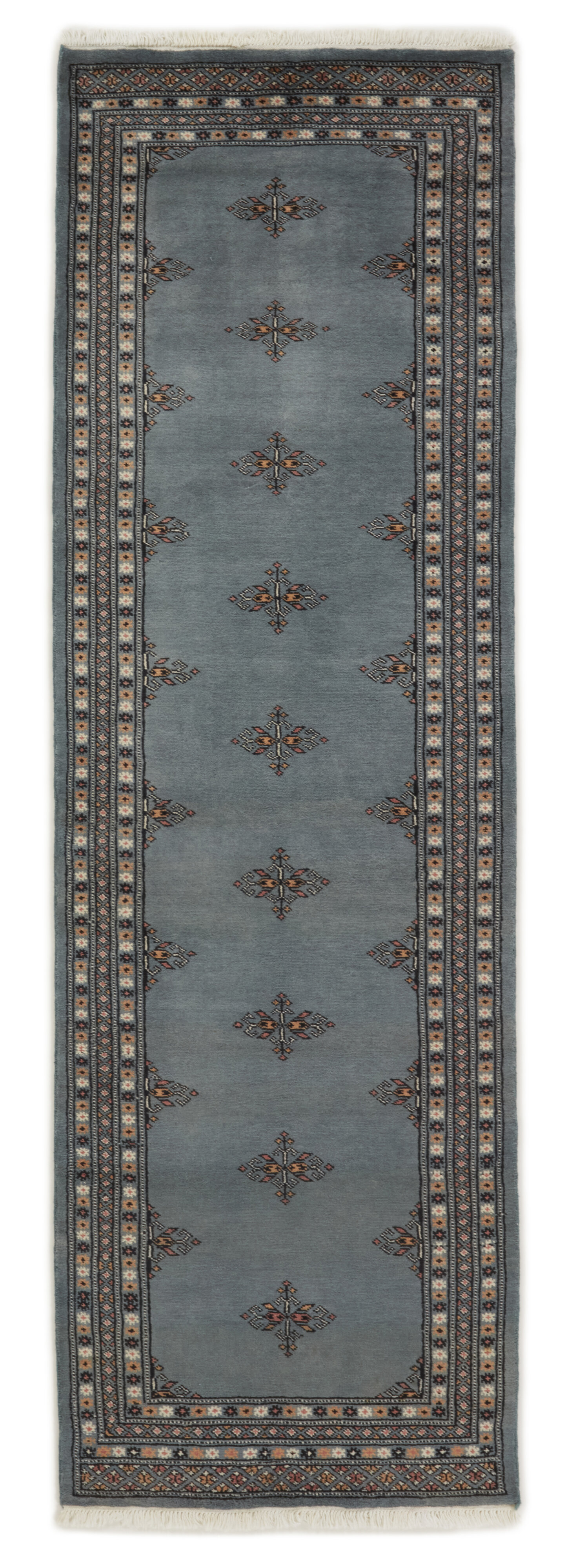 The 2-Ply rugs are produced in Lahore, Pakistan’s second largest city, which is also is the centre of the country’s hand knotted rug production. The rugs most often have the Tekke and Bokara patterns, which were originally inspired by patterns from Turkmenistan. The people of the Tekke Tribe, which was the largest nomadic tribe in Turkmenistan, were known as very industrious rug producers. The term Ply indicates the number of threads wound together to produce the yarn itself; 2-Ply thus guarantees that two threads were wound together during the knotting to make the yarn. The quality of wool is particularly soft and shining, and the warm-coloured patterns are simple and harmonious.