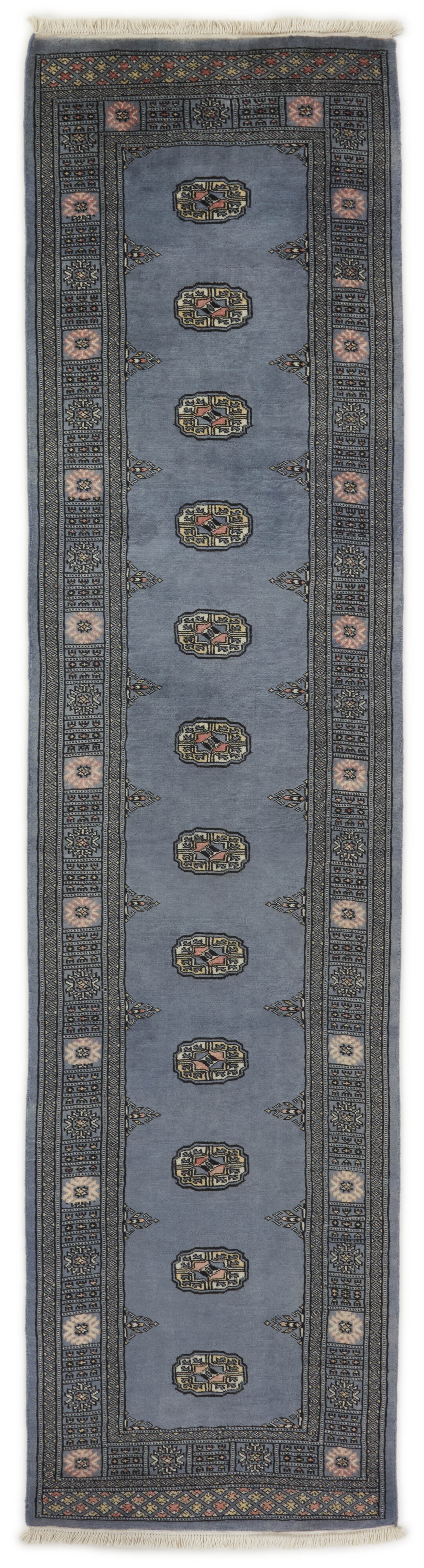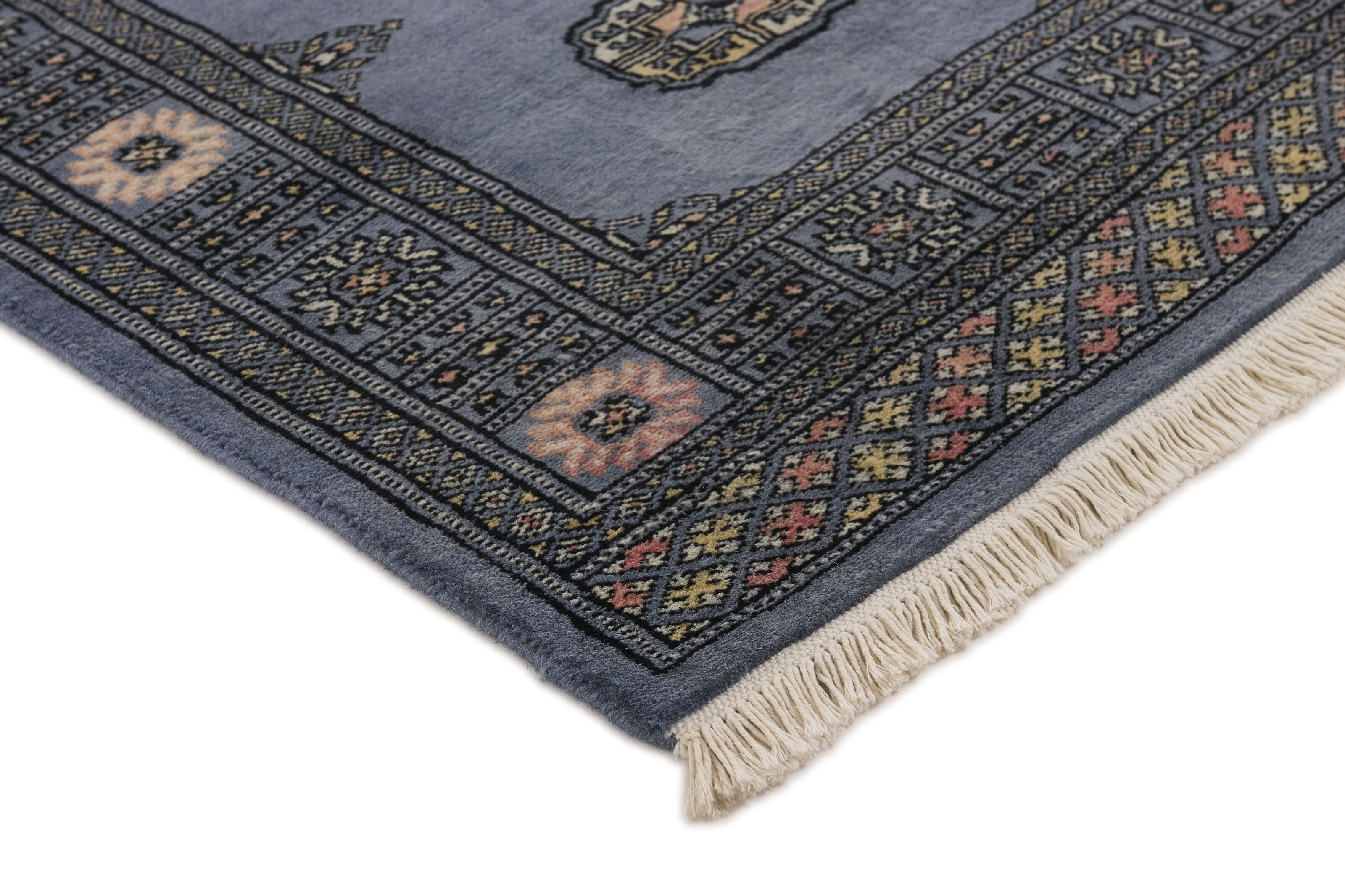 The 2-Ply rugs are produced in Lahore, Pakistan’s second largest city, which is also is the centre of the country’s hand knotted rug production. The rugs most often have the Tekke and Bokara patterns, which were originally inspired by patterns from Turkmenistan. The people of the Tekke Tribe, which was the largest nomadic tribe in Turkmenistan, were known as very industrious rug producers. The term Ply indicates the number of threads wound together to produce the yarn itself; 2-Ply thus guarantees that two threads were wound together during the knotting to make the yarn. The quality of wool is particularly soft and shining, and the warm-coloured patterns are simple and harmonious.