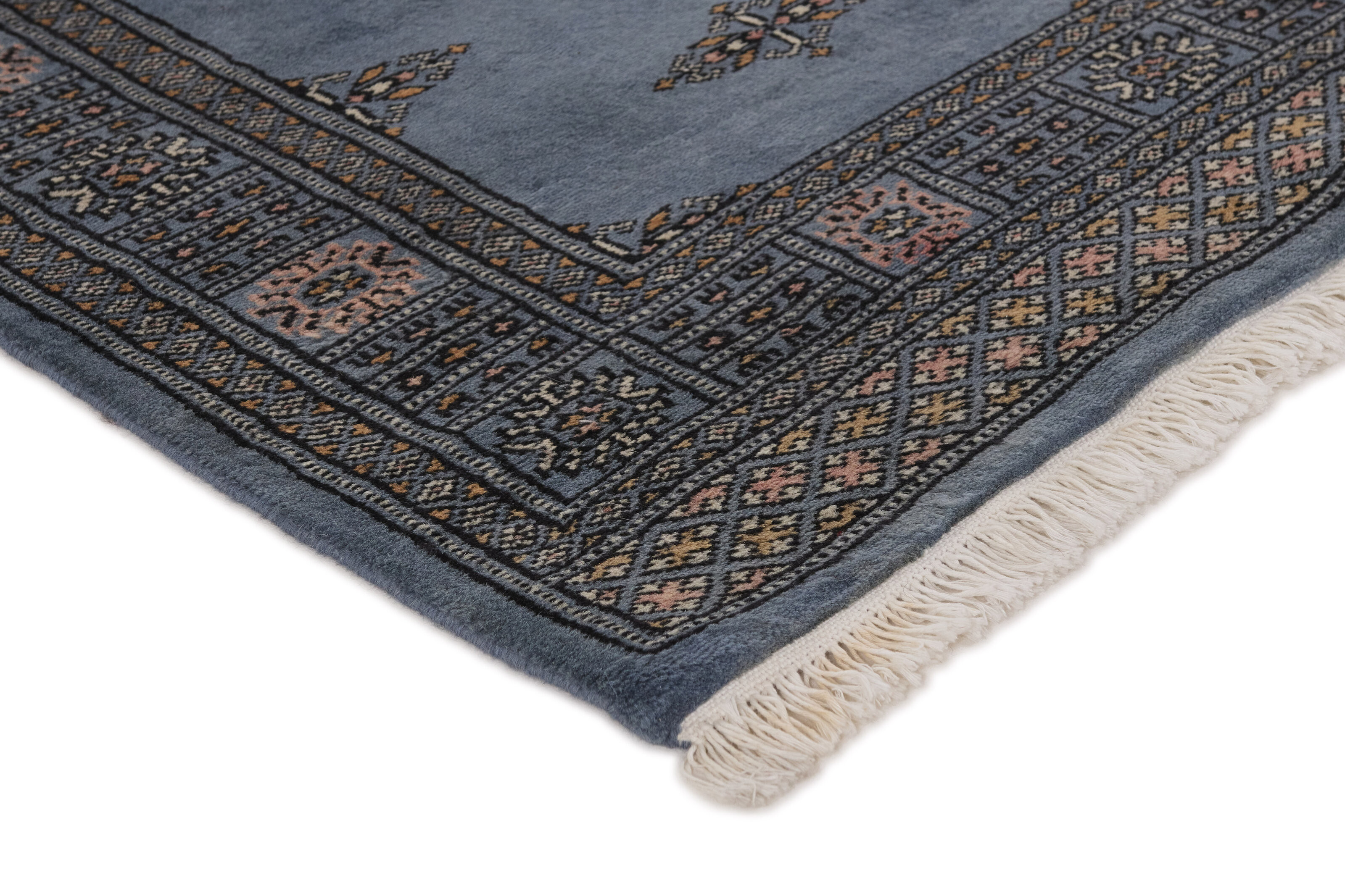 The 2-Ply rugs are produced in Lahore, Pakistan’s second largest city, which is also is the centre of the country’s hand knotted rug production. The rugs most often have the Tekke and Bokara patterns, which were originally inspired by patterns from Turkmenistan. The people of the Tekke Tribe, which was the largest nomadic tribe in Turkmenistan, were known as very industrious rug producers. The term Ply indicates the number of threads wound together to produce the yarn itself; 2-Ply thus guarantees that two threads were wound together during the knotting to make the yarn. The quality of wool is particularly soft and shining, and the warm-coloured patterns are simple and harmonious.