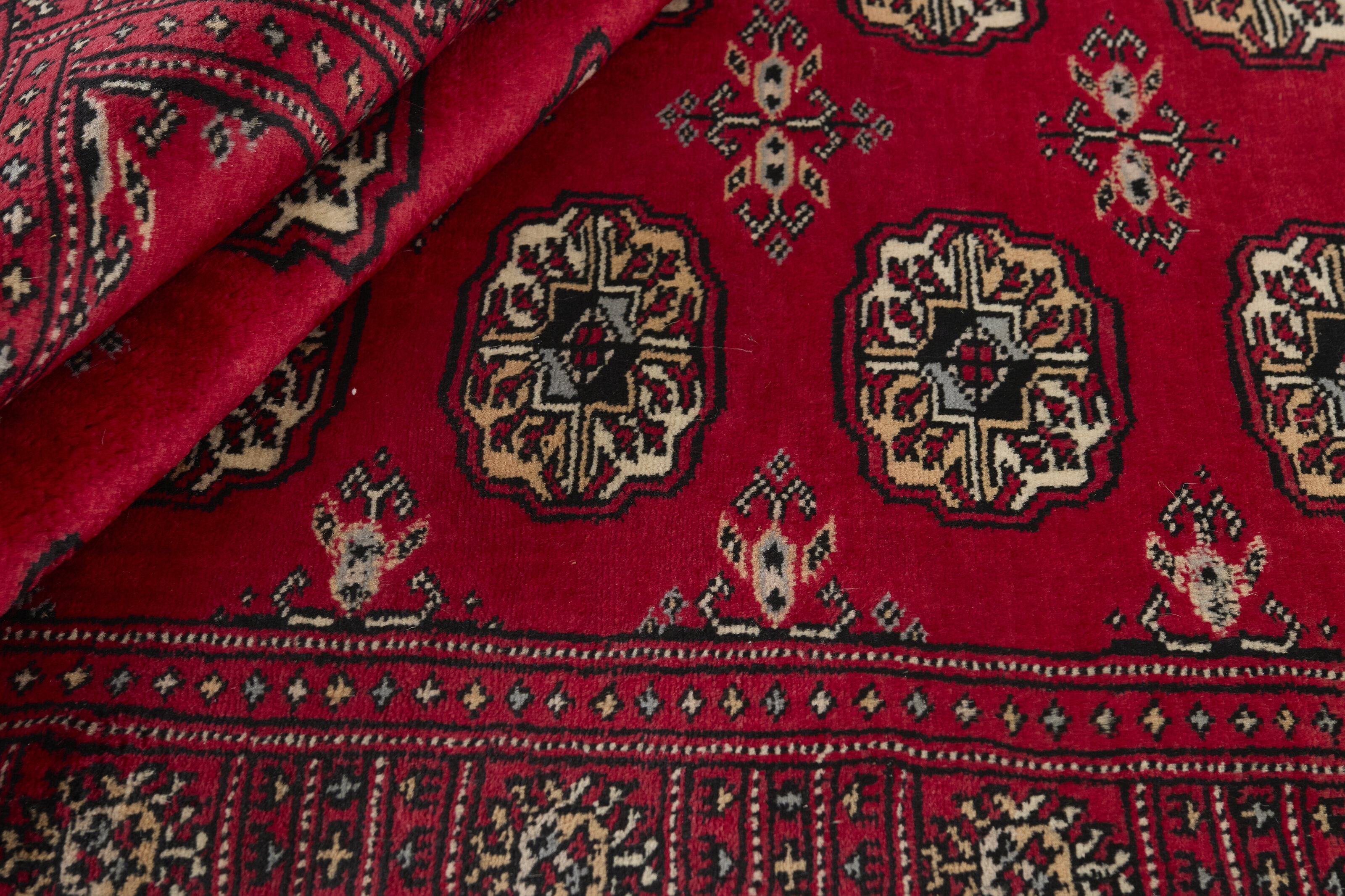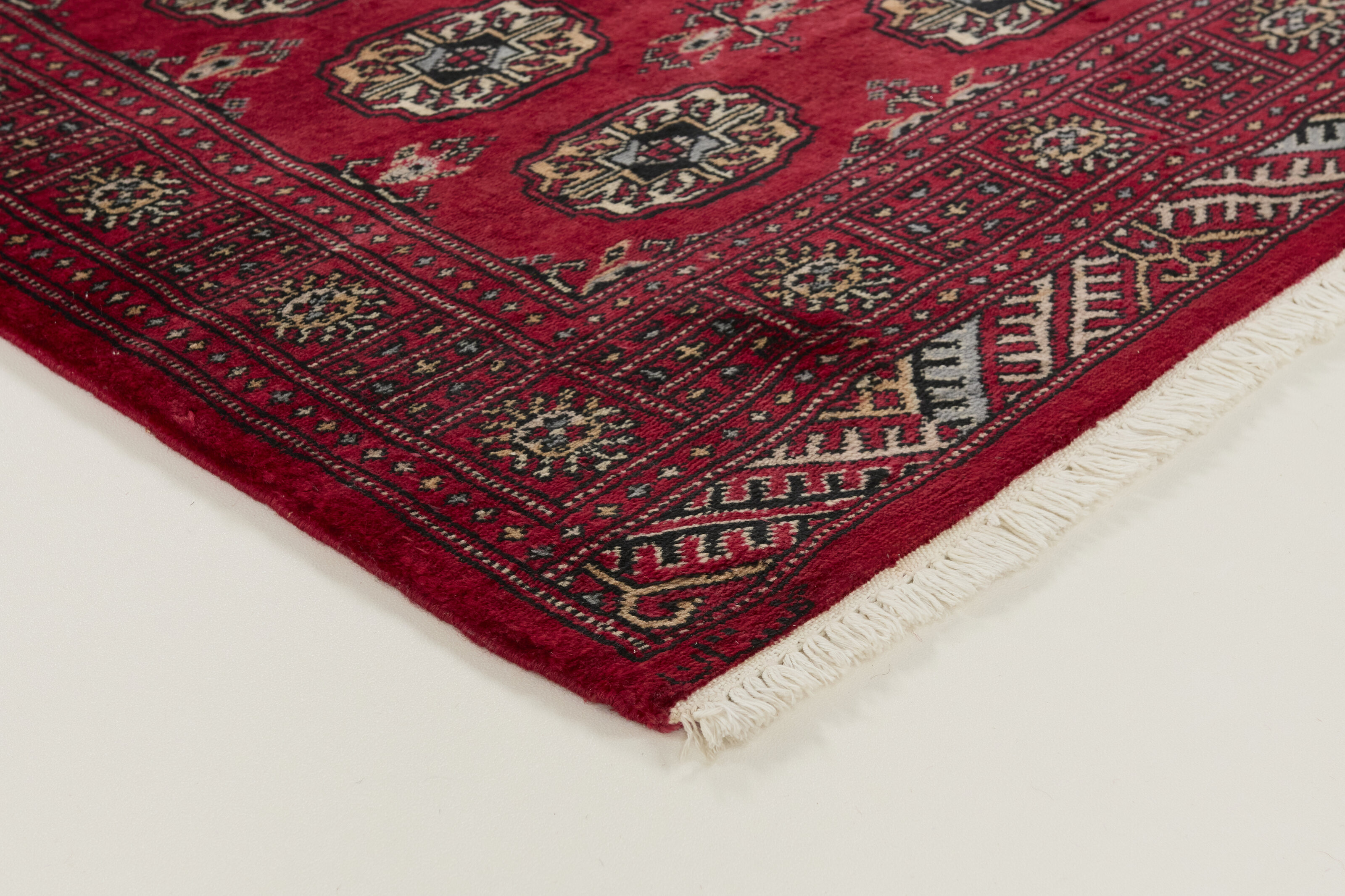 The 3-Ply rugs are produced in Lahore, Pakistan’s second largest city, which is also is the centre of the country’s hand knotted rug production. The rugs most often have the Tekke and Bokara patterns, which were originally inspired by patterns from Turkmenistan. The people of the Tekke Tribe, which was the largest nomadic tribe in Turkmenistan, were known as very industrious rug producers. The term Ply indicates the number of threads wound together to produce the yarn itself; 3-Ply thus guarantees that the yarn consists of three threads wound together. 3-Ply rugs appear thicker and softer than 2-Ply, as more wool is used to produce the rug. The quality of wool is particularly soft and shining, and the warm-coloured patterns are simple and harmonious.