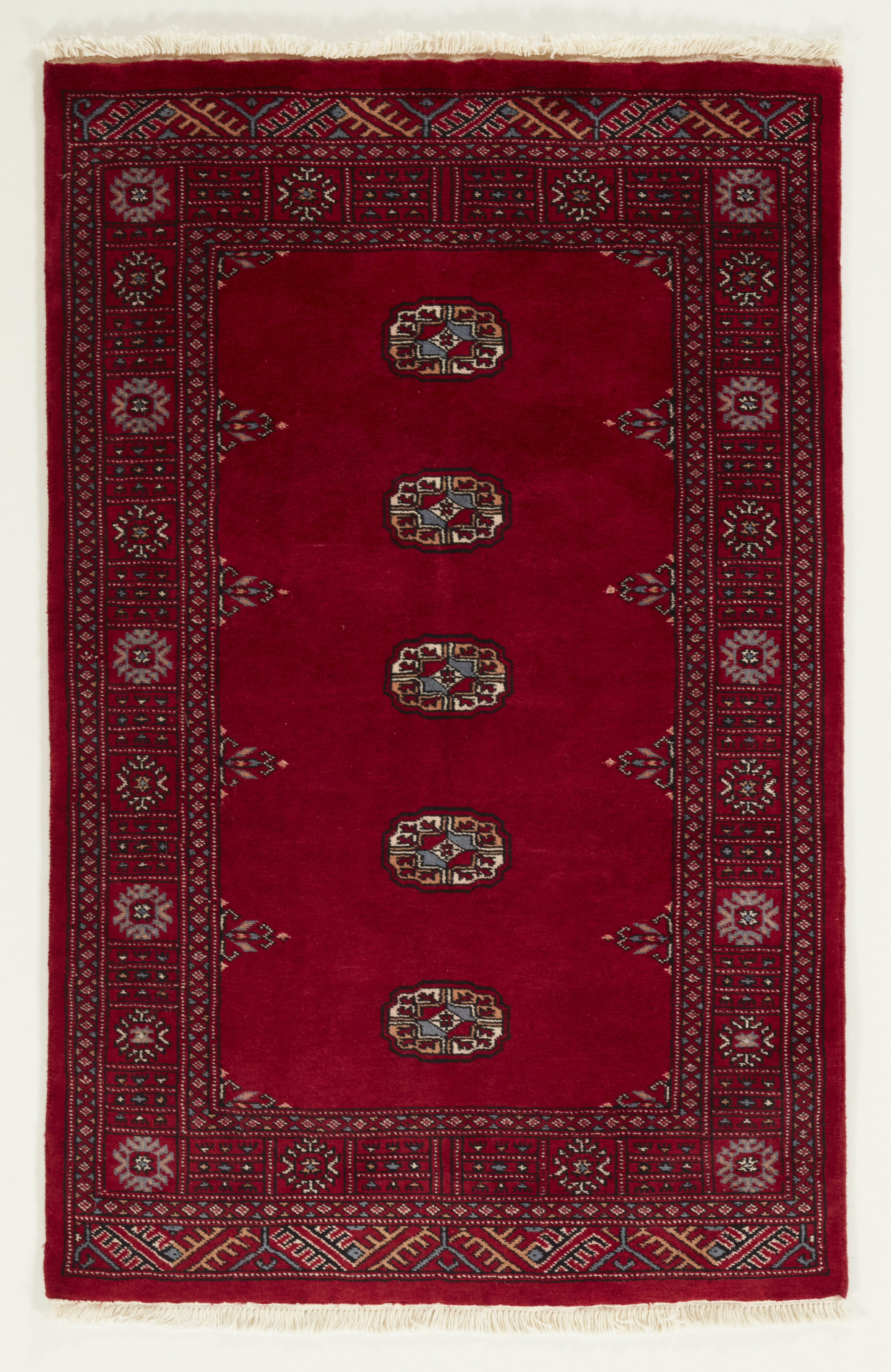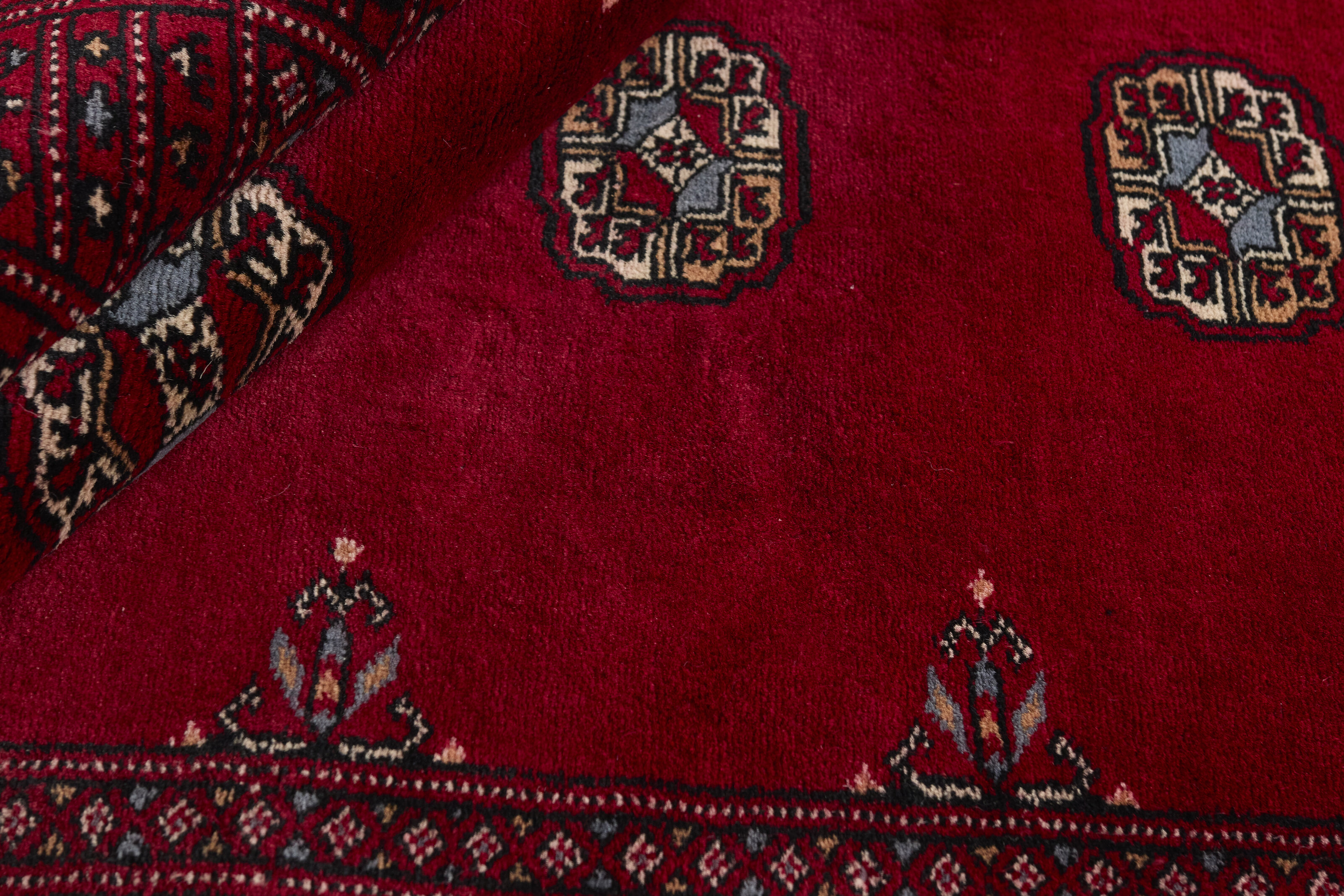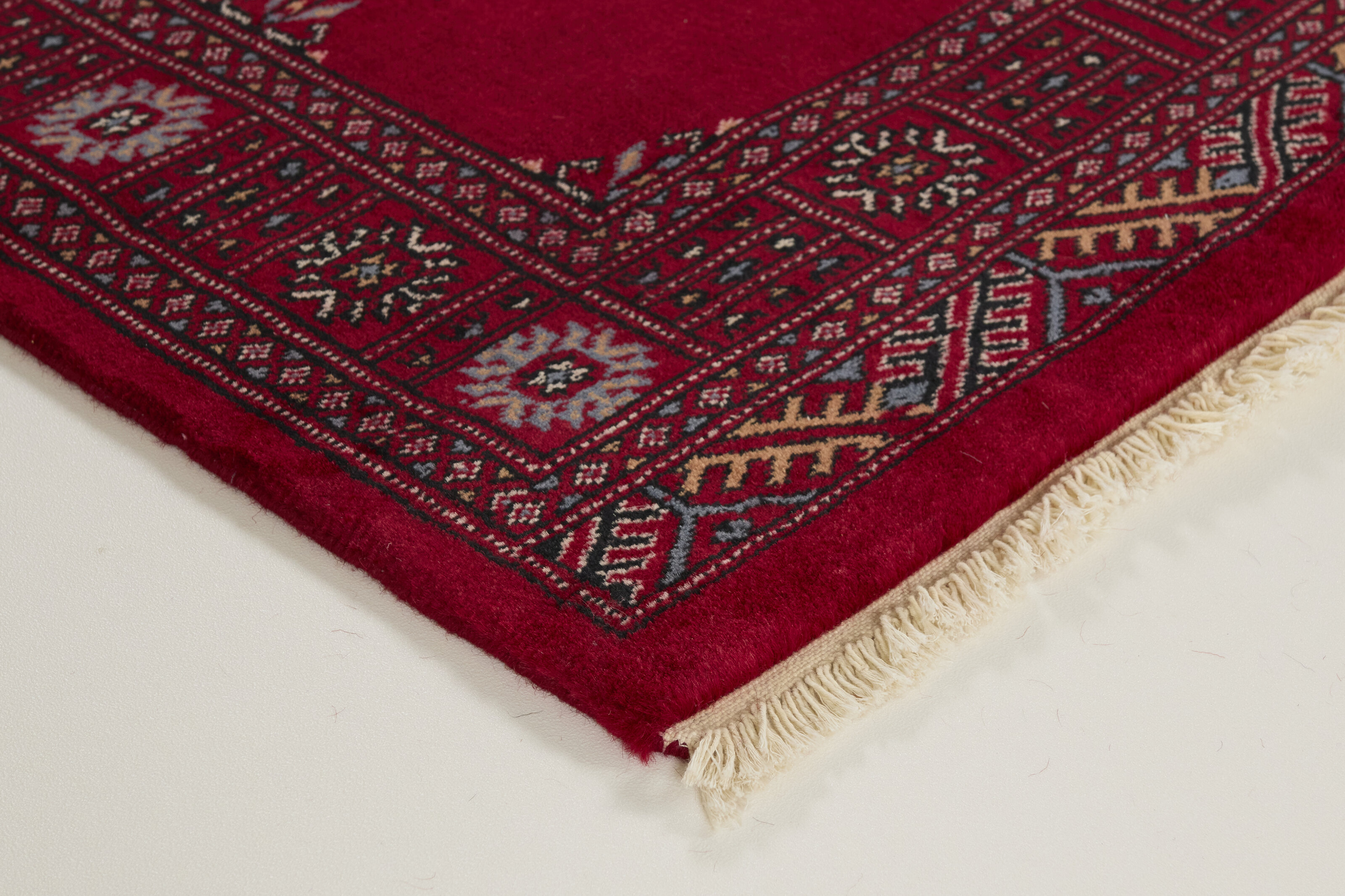 The 3-Ply rugs are produced in Lahore, Pakistan’s second largest city, which is also is the centre of the country’s hand knotted rug production. The rugs most often have the Tekke and Bokara patterns, which were originally inspired by patterns from Turkmenistan. The people of the Tekke Tribe, which was the largest nomadic tribe in Turkmenistan, were known as very industrious rug producers. The term Ply indicates the number of threads wound together to produce the yarn itself; 3-Ply thus guarantees that the yarn consists of three threads wound together. 3-Ply rugs appear thicker and softer than 2-Ply, as more wool is used to produce the rug. The quality of wool is particularly soft and shining, and the warm-coloured patterns are simple and harmonious.
