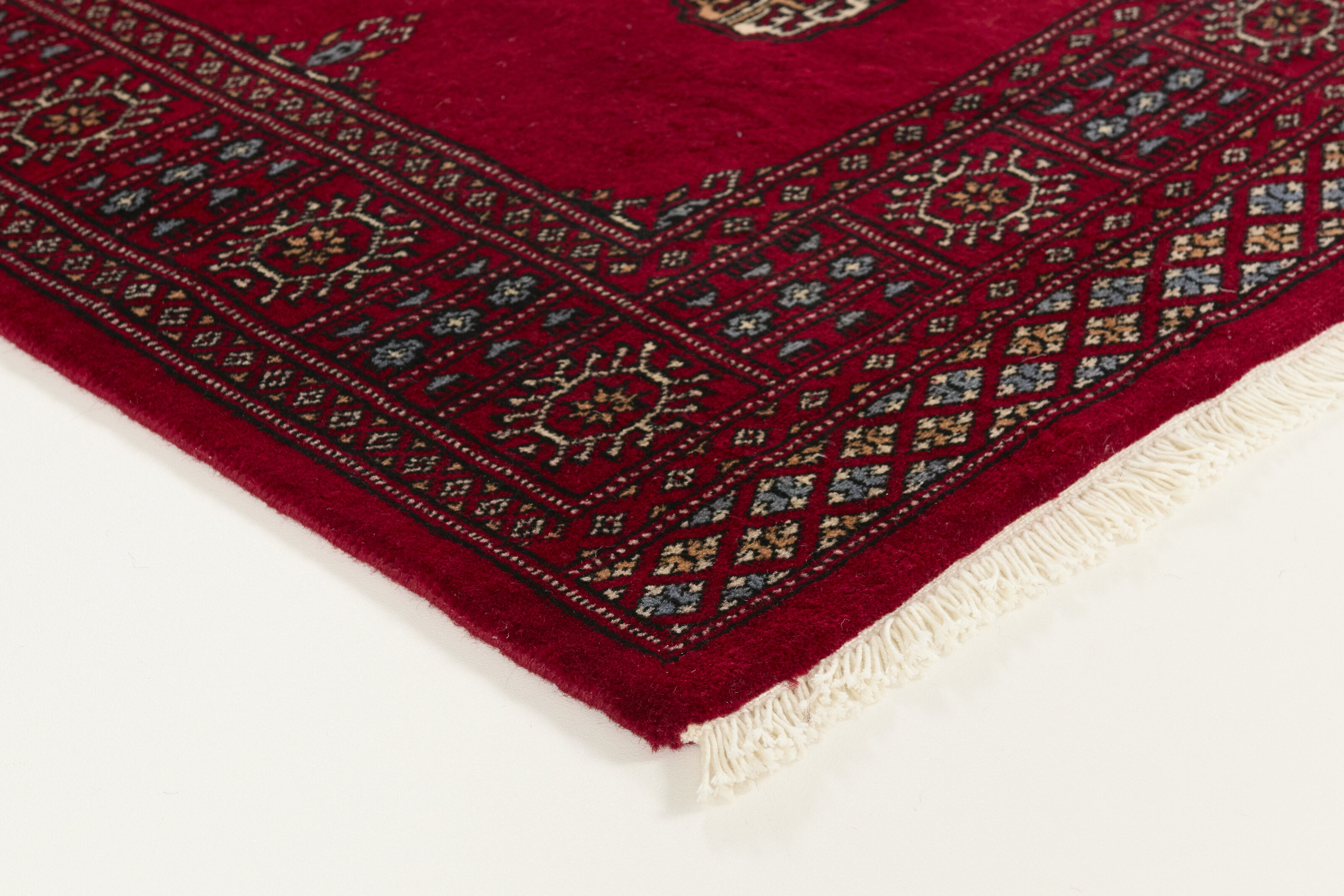 The 3-Ply rugs are produced in Lahore, Pakistan’s second largest city, which is also is the centre of the country’s hand knotted rug production. The rugs most often have the Tekke and Bokara patterns, which were originally inspired by patterns from Turkmenistan. The people of the Tekke Tribe, which was the largest nomadic tribe in Turkmenistan, were known as very industrious rug producers. The term Ply indicates the number of threads wound together to produce the yarn itself; 3-Ply thus guarantees that the yarn consists of three threads wound together. 3-Ply rugs appear thicker and softer than 2-Ply, as more wool is used to produce the rug. The quality of wool is particularly soft and shining, and the warm-coloured patterns are simple and harmonious.