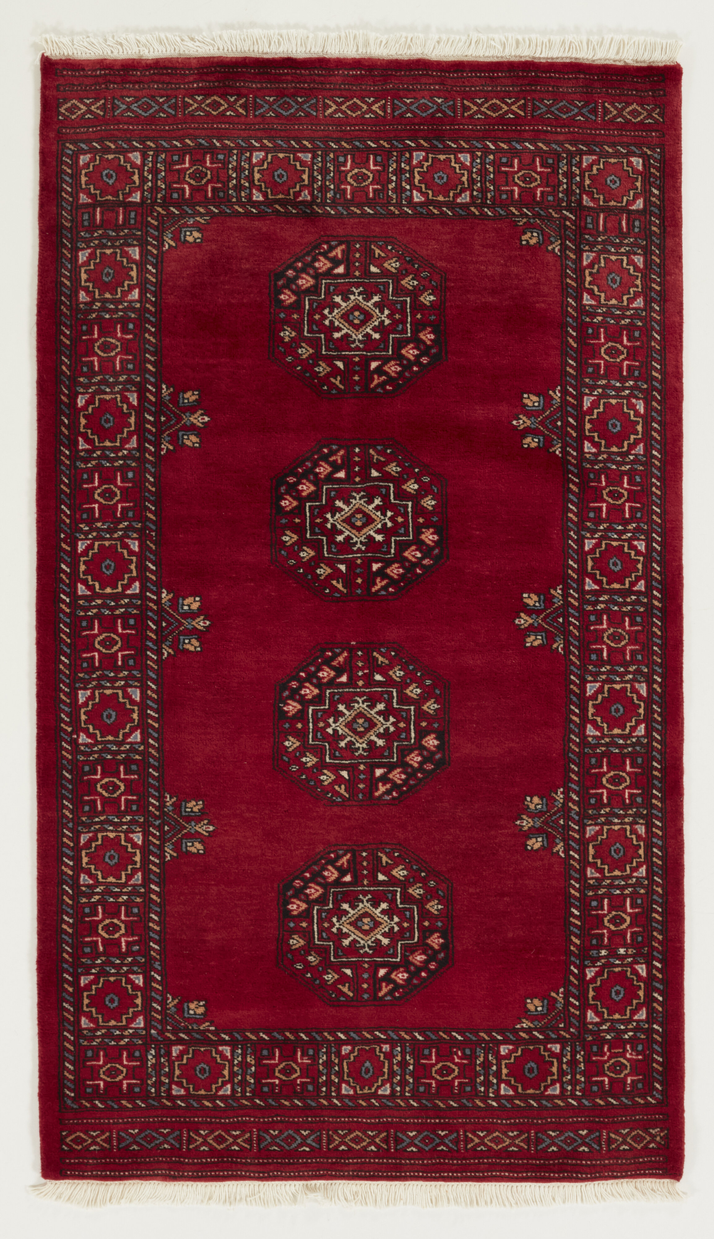 The 3-Ply rugs are produced in Lahore, Pakistan’s second largest city, which is also is the centre of the country’s hand knotted rug production. The rugs most often have the Tekke and Bokara patterns, which were originally inspired by patterns from Turkmenistan. The people of the Tekke Tribe, which was the largest nomadic tribe in Turkmenistan, were known as very industrious rug producers. The term Ply indicates the number of threads wound together to produce the yarn itself; 3-Ply thus guarantees that the yarn consists of three threads wound together. 3-Ply rugs appear thicker and softer than 2-Ply, as more wool is used to produce the rug. The quality of wool is particularly soft and shining, and the warm-coloured patterns are simple and harmonious.