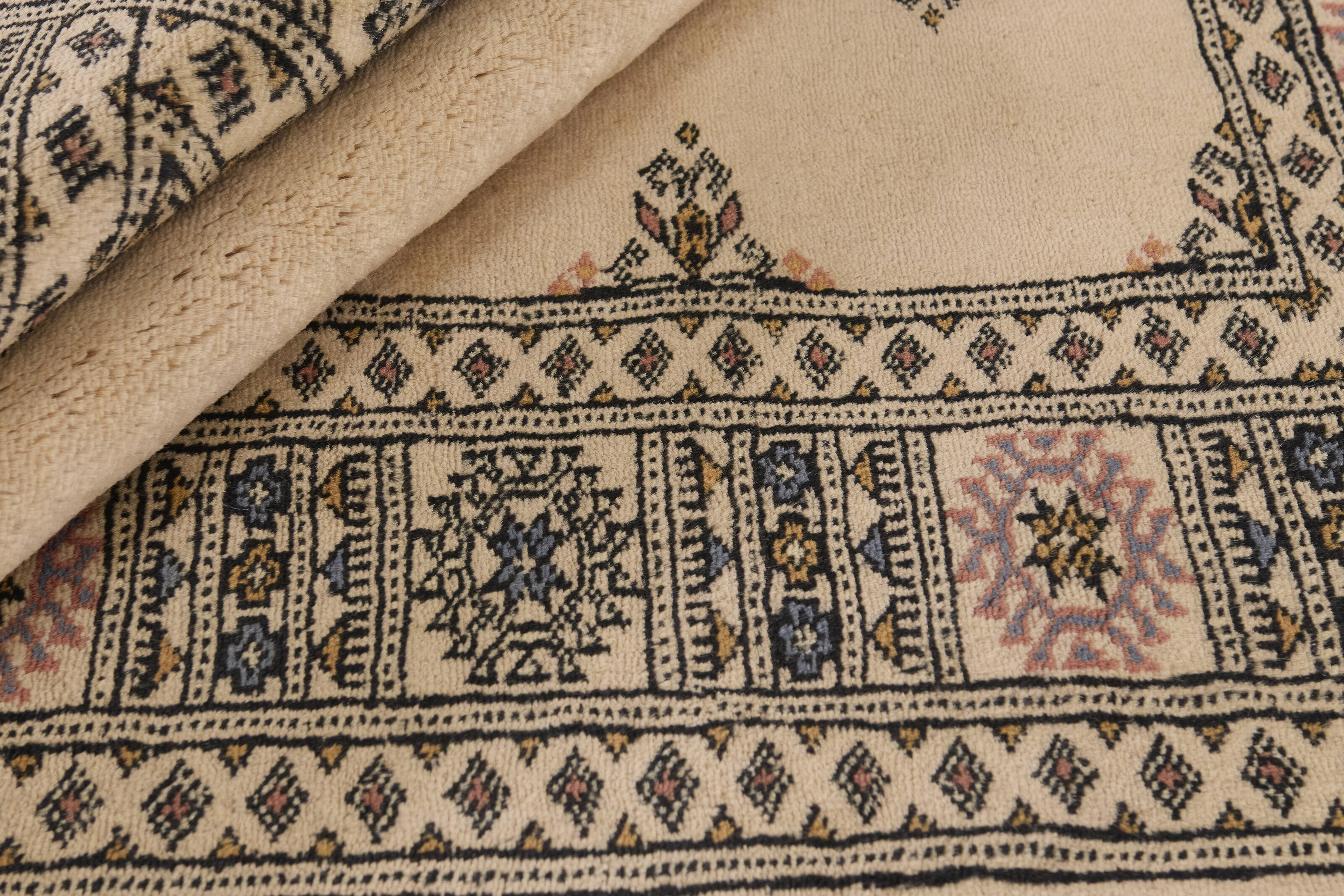 The 3-Ply rugs are produced in Lahore, Pakistan’s second largest city, which is also is the centre of the country’s hand knotted rug production. The rugs most often have the Tekke and Bokara patterns, which were originally inspired by patterns from Turkmenistan. The people of the Tekke Tribe, which was the largest nomadic tribe in Turkmenistan, were known as very industrious rug producers. The term Ply indicates the number of threads wound together to produce the yarn itself; 3-Ply thus guarantees that the yarn consists of three threads wound together. 3-Ply rugs appear thicker and softer than 2-Ply, as more wool is used to produce the rug. The quality of wool is particularly soft and shining, and the warm-coloured patterns are simple and harmonious.