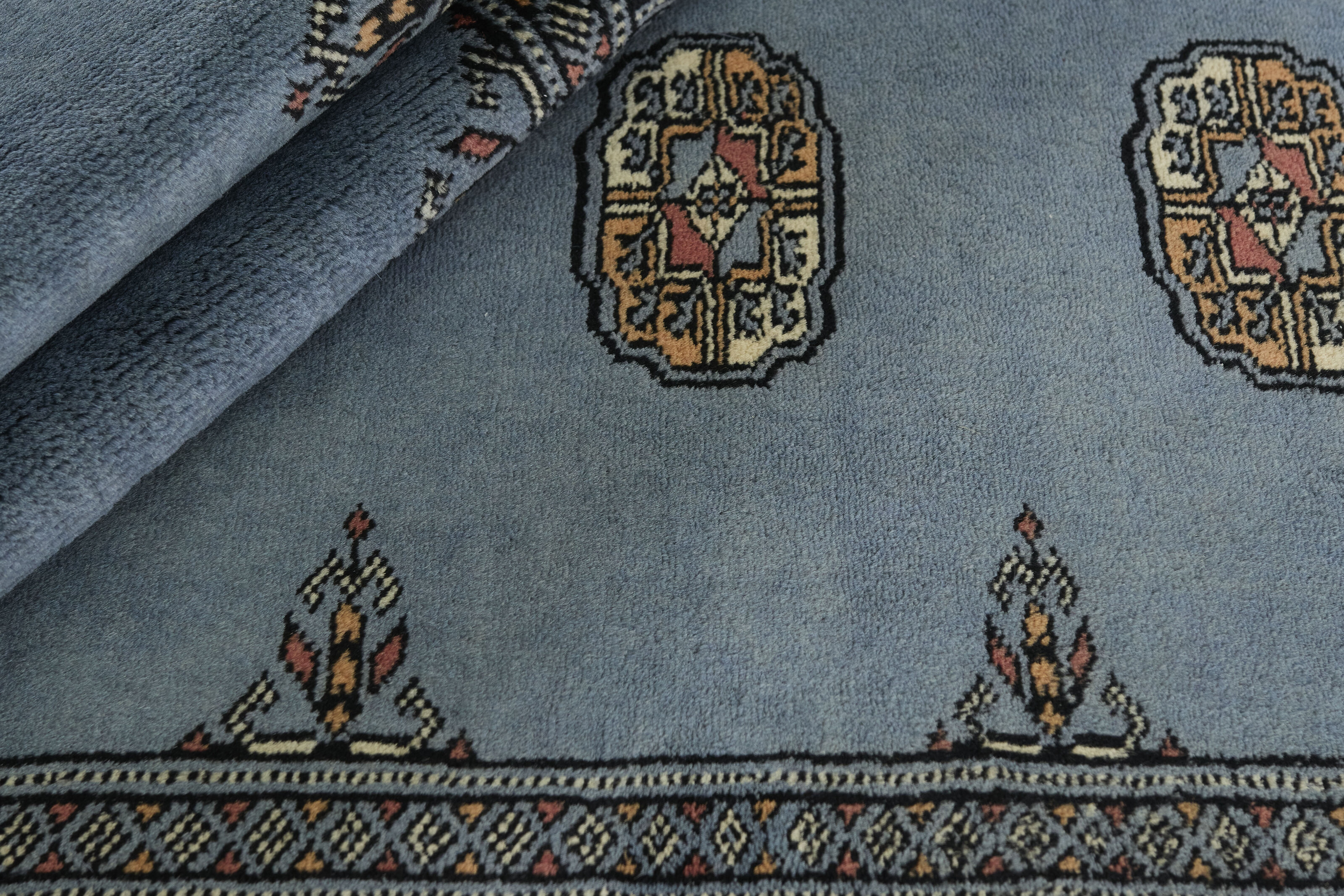 The 3-Ply rugs are produced in Lahore, Pakistan’s second largest city, which is also is the centre of the country’s hand knotted rug production. The rugs most often have the Tekke and Bokara patterns, which were originally inspired by patterns from Turkmenistan. The people of the Tekke Tribe, which was the largest nomadic tribe in Turkmenistan, were known as very industrious rug producers. The term Ply indicates the number of threads wound together to produce the yarn itself; 3-Ply thus guarantees that the yarn consists of three threads wound together. 3-Ply rugs appear thicker and softer than 2-Ply, as more wool is used to produce the rug. The quality of wool is particularly soft and shining, and the warm-coloured patterns are simple and harmonious.