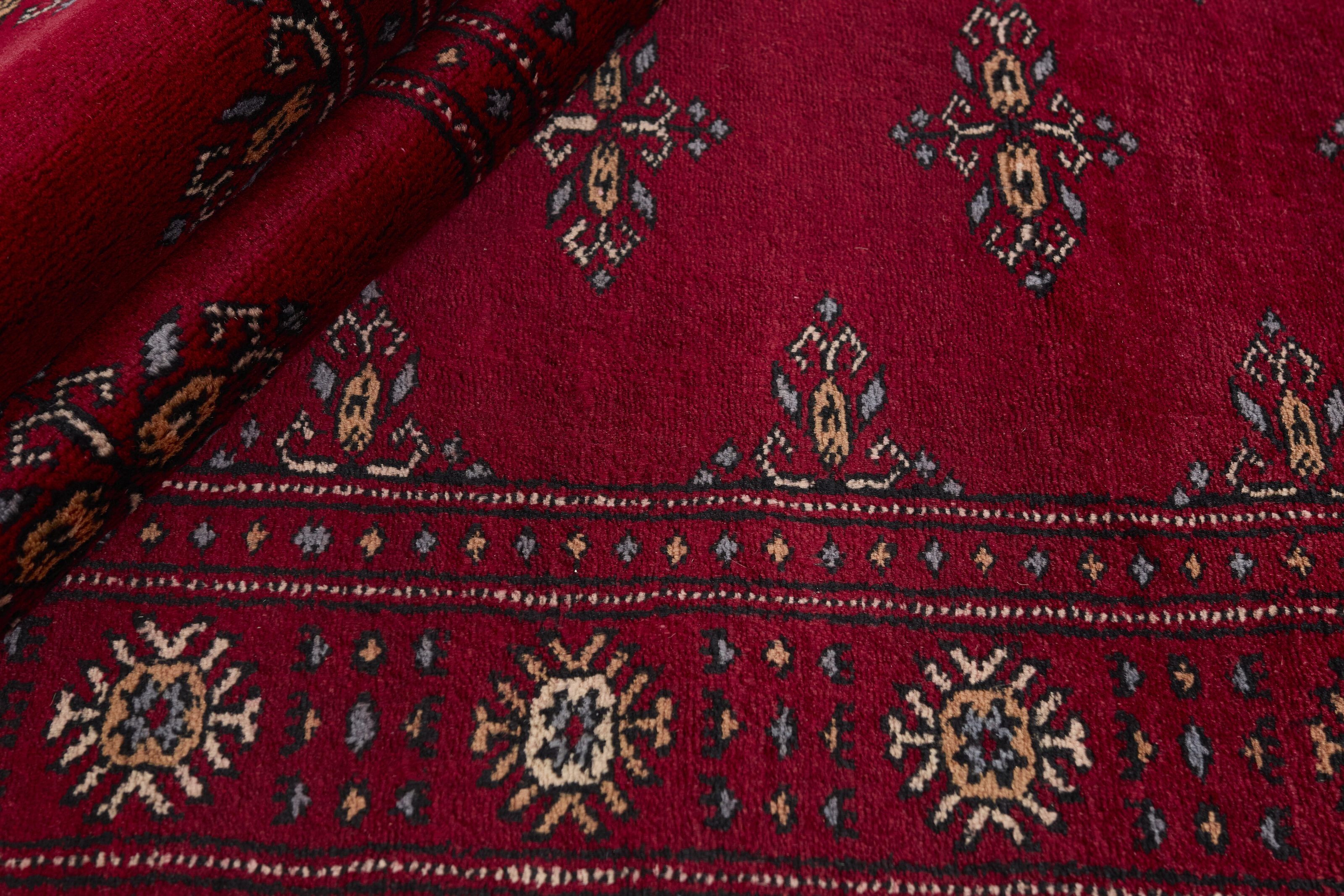 The 3-Ply rugs are produced in Lahore, Pakistan’s second largest city, which is also is the centre of the country’s hand knotted rug production. The rugs most often have the Tekke and Bokara patterns, which were originally inspired by patterns from Turkmenistan. The people of the Tekke Tribe, which was the largest nomadic tribe in Turkmenistan, were known as very industrious rug producers. The term Ply indicates the number of threads wound together to produce the yarn itself; 3-Ply thus guarantees that the yarn consists of three threads wound together. 3-Ply rugs appear thicker and softer than 2-Ply, as more wool is used to produce the rug. The quality of wool is particularly soft and shining, and the warm-coloured patterns are simple and harmonious.