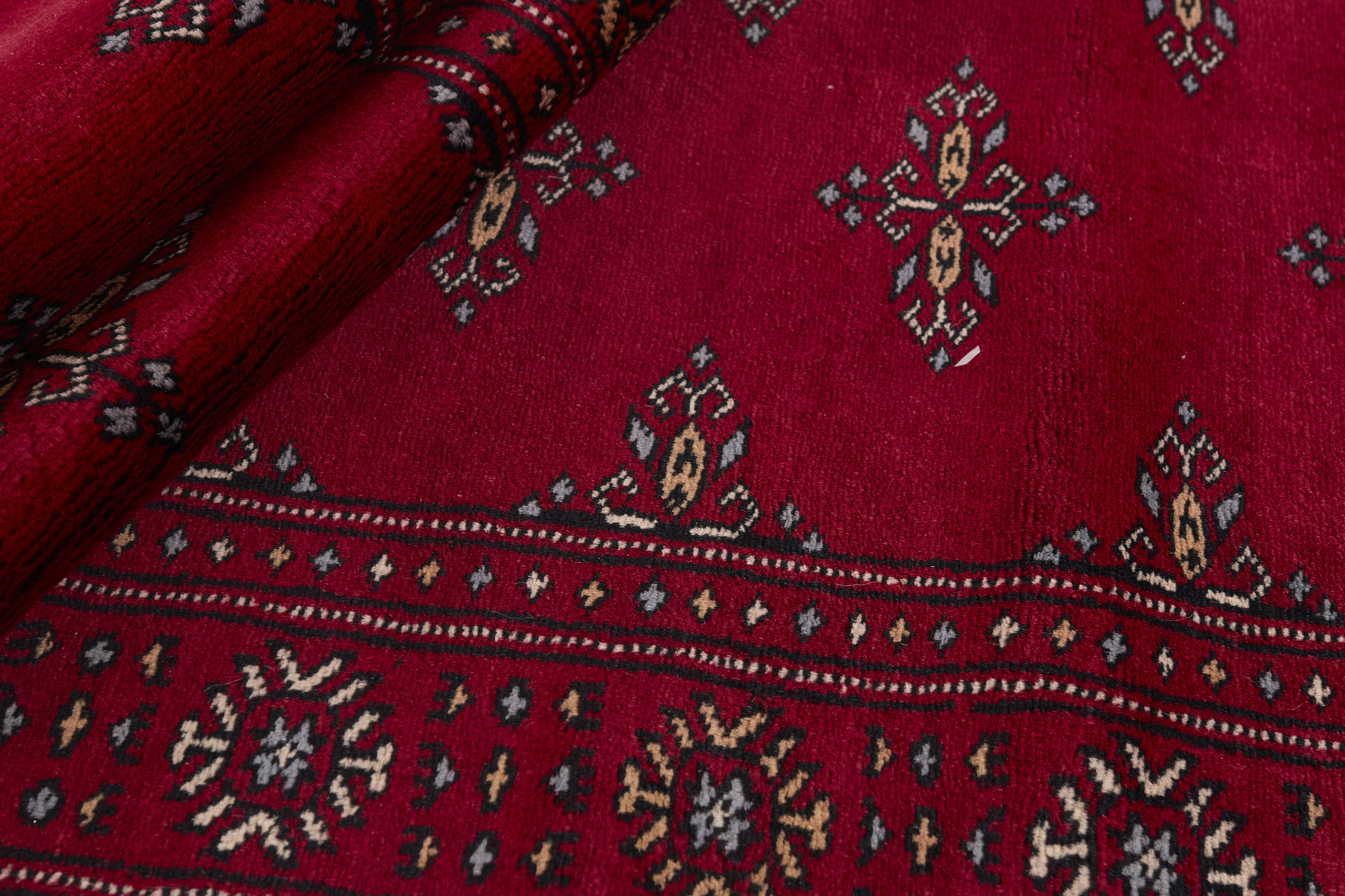 The 3-Ply rugs are produced in Lahore, Pakistan’s second largest city, which is also is the centre of the country’s hand knotted rug production. The rugs most often have the Tekke and Bokara patterns, which were originally inspired by patterns from Turkmenistan. The people of the Tekke Tribe, which was the largest nomadic tribe in Turkmenistan, were known as very industrious rug producers. The term Ply indicates the number of threads wound together to produce the yarn itself; 3-Ply thus guarantees that the yarn consists of three threads wound together. 3-Ply rugs appear thicker and softer than 2-Ply, as more wool is used to produce the rug. The quality of wool is particularly soft and shining, and the warm-coloured patterns are simple and harmonious.