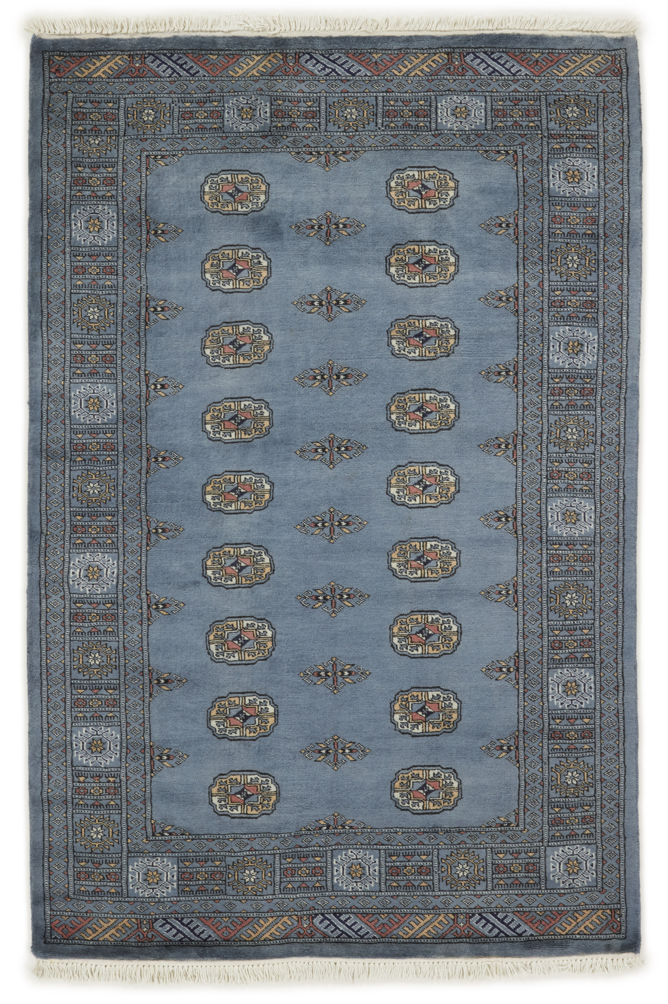 The 3-Ply rugs are produced in Lahore, Pakistan’s second largest city, which is also is the centre of the country’s hand knotted rug production. The rugs most often have the Tekke and Bokara patterns, which were originally inspired by patterns from Turkmenistan. The people of the Tekke Tribe, which was the largest nomadic tribe in Turkmenistan, were known as very industrious rug producers. The term Ply indicates the number of threads wound together to produce the yarn itself; 3-Ply thus guarantees that the yarn consists of three threads wound together. 3-Ply rugs appear thicker and softer than 2-Ply, as more wool is used to produce the rug. The quality of wool is particularly soft and shining, and the warm-coloured patterns are simple and harmonious.