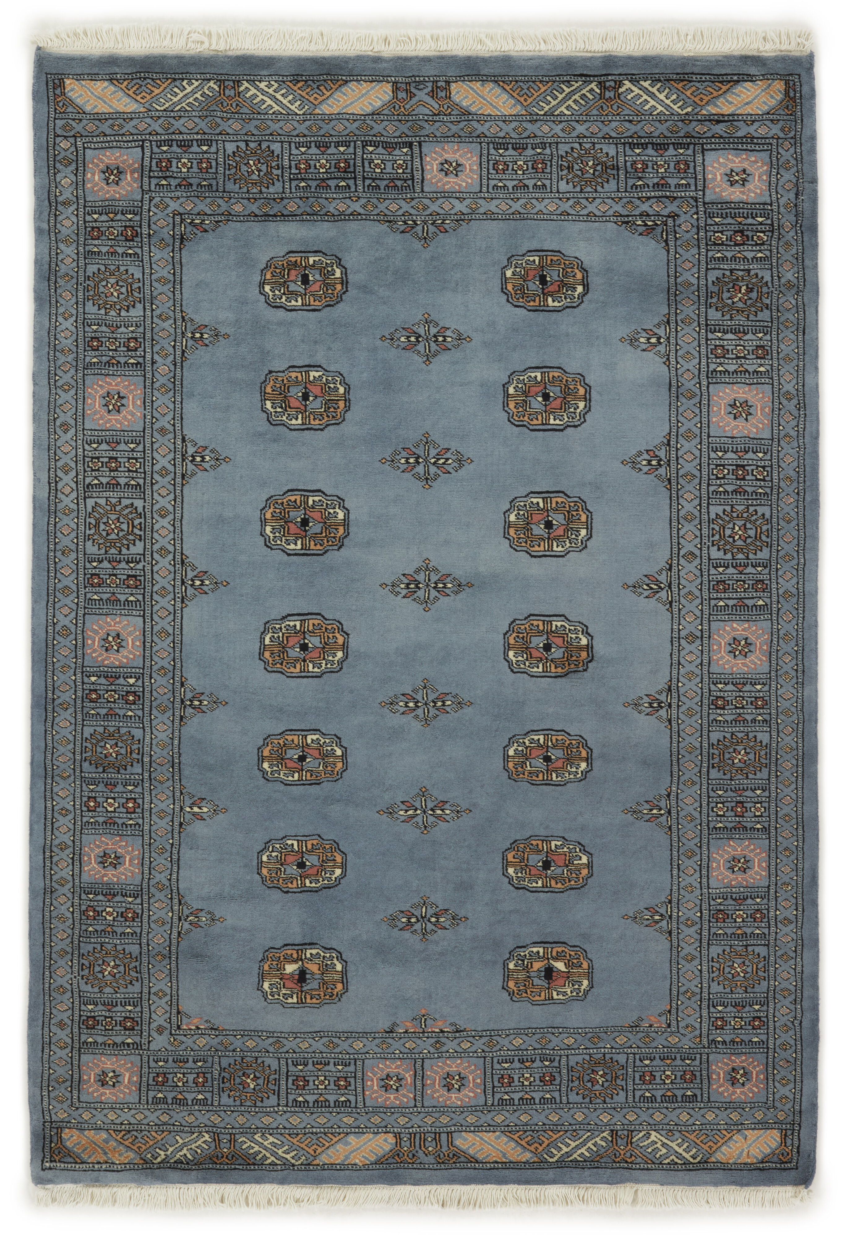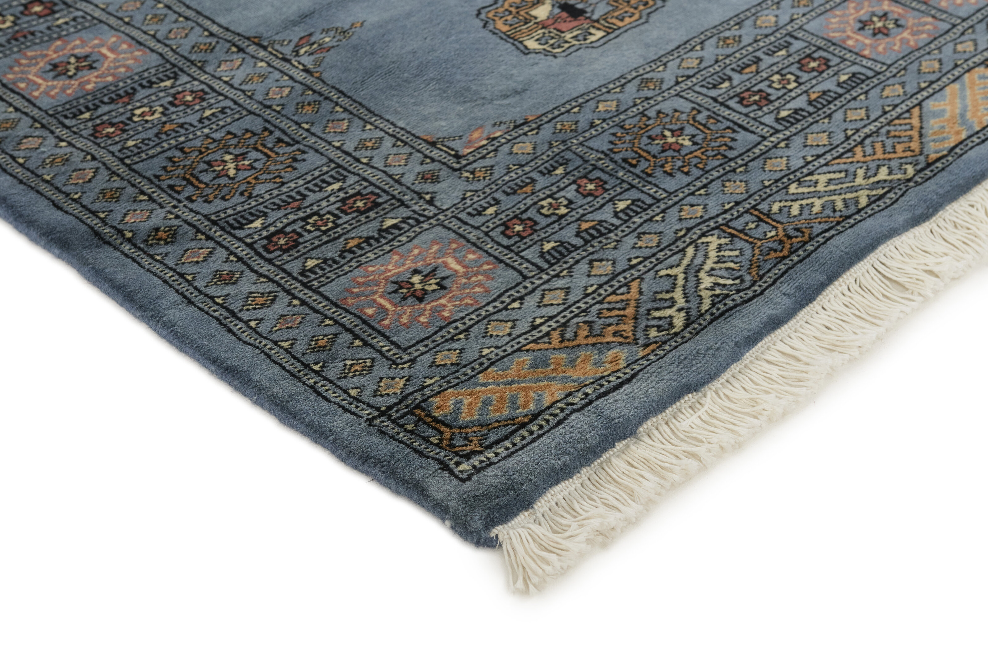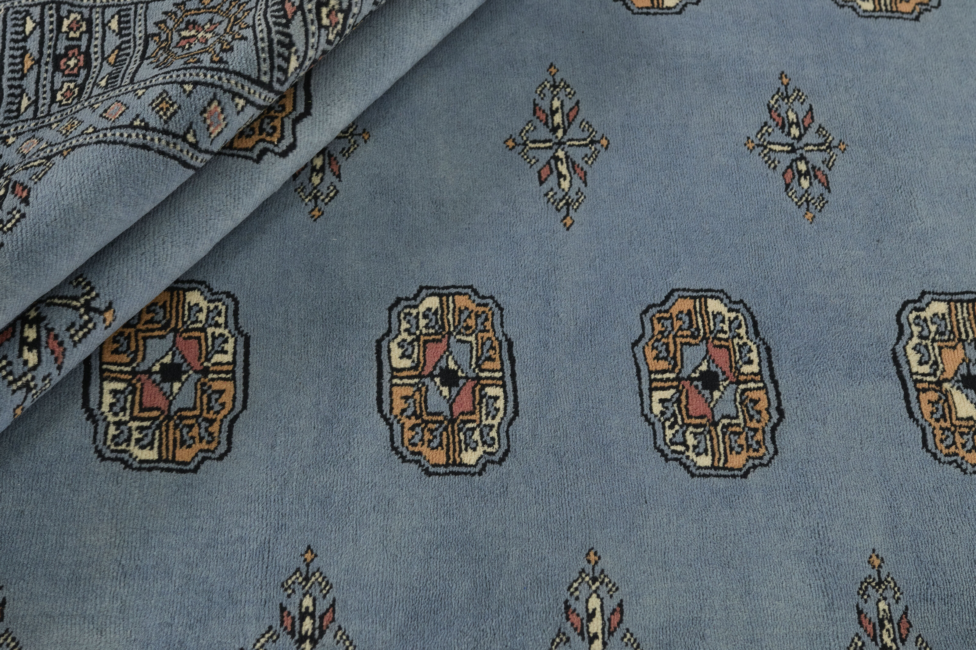 The 3-Ply rugs are produced in Lahore, Pakistan’s second largest city, which is also is the centre of the country’s hand knotted rug production. The rugs most often have the Tekke and Bokara patterns, which were originally inspired by patterns from Turkmenistan. The people of the Tekke Tribe, which was the largest nomadic tribe in Turkmenistan, were known as very industrious rug producers. The term Ply indicates the number of threads wound together to produce the yarn itself; 3-Ply thus guarantees that the yarn consists of three threads wound together. 3-Ply rugs appear thicker and softer than 2-Ply, as more wool is used to produce the rug. The quality of wool is particularly soft and shining, and the warm-coloured patterns are simple and harmonious.