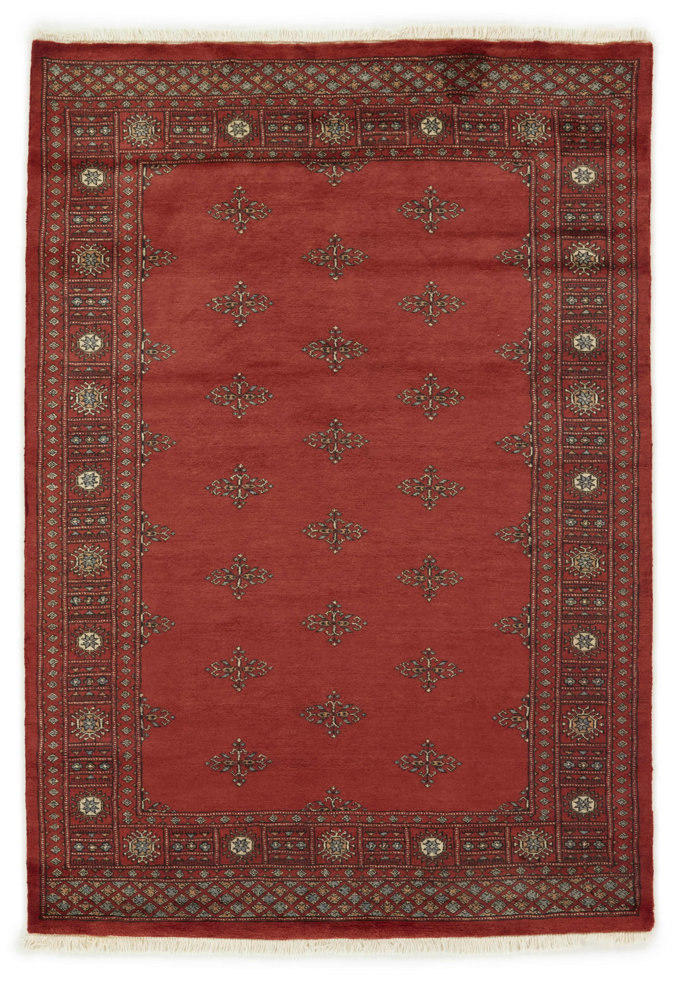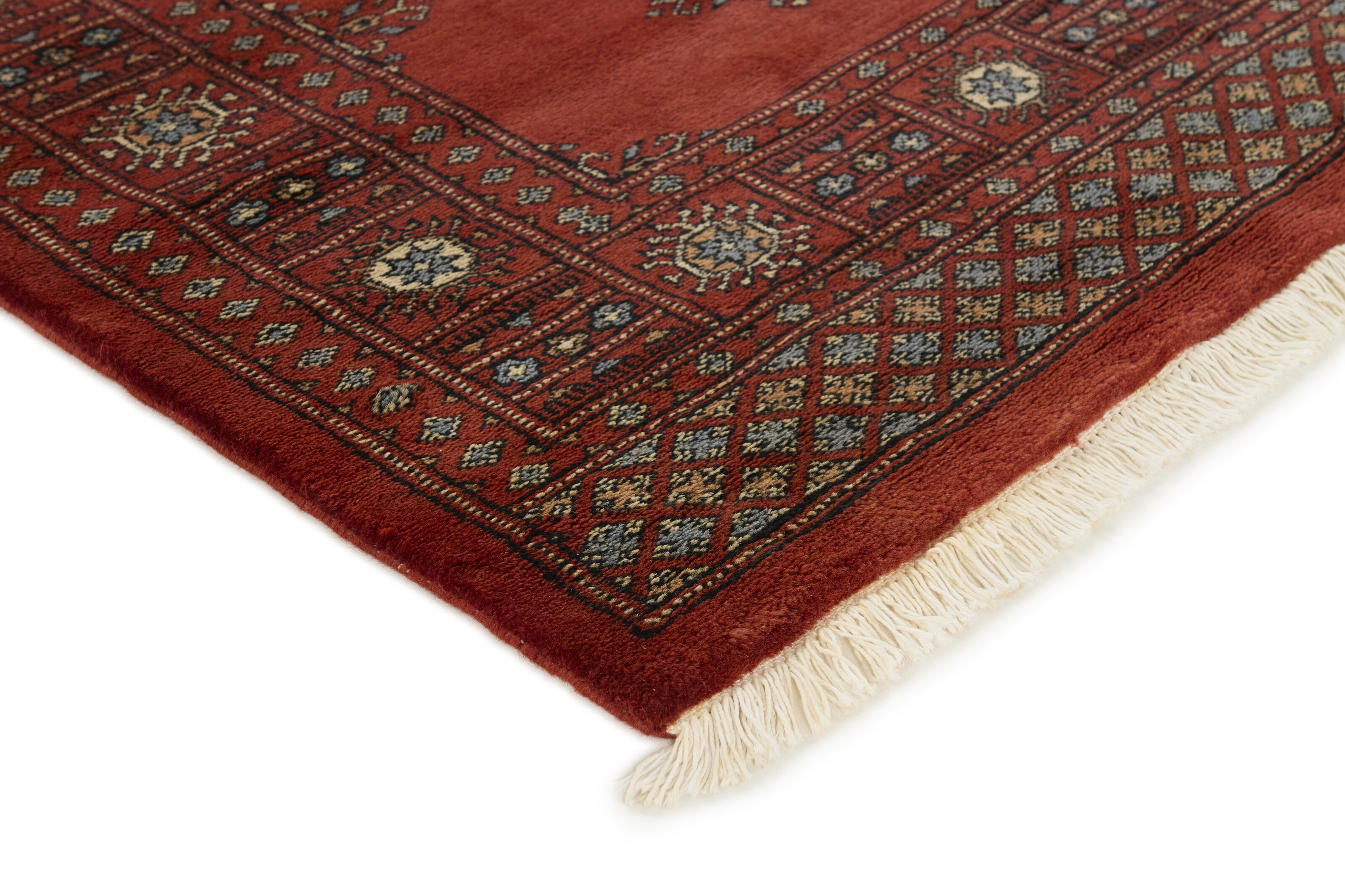 The 3-Ply rugs are produced in Lahore, Pakistan’s second largest city, which is also is the centre of the country’s hand knotted rug production. The rugs most often have the Tekke and Bokara patterns, which were originally inspired by patterns from Turkmenistan. The people of the Tekke Tribe, which was the largest nomadic tribe in Turkmenistan, were known as very industrious rug producers. The term Ply indicates the number of threads wound together to produce the yarn itself; 3-Ply thus guarantees that the yarn consists of three threads wound together. 3-Ply rugs appear thicker and softer than 2-Ply, as more wool is used to produce the rug. The quality of wool is particularly soft and shining, and the warm-coloured patterns are simple and harmonious.