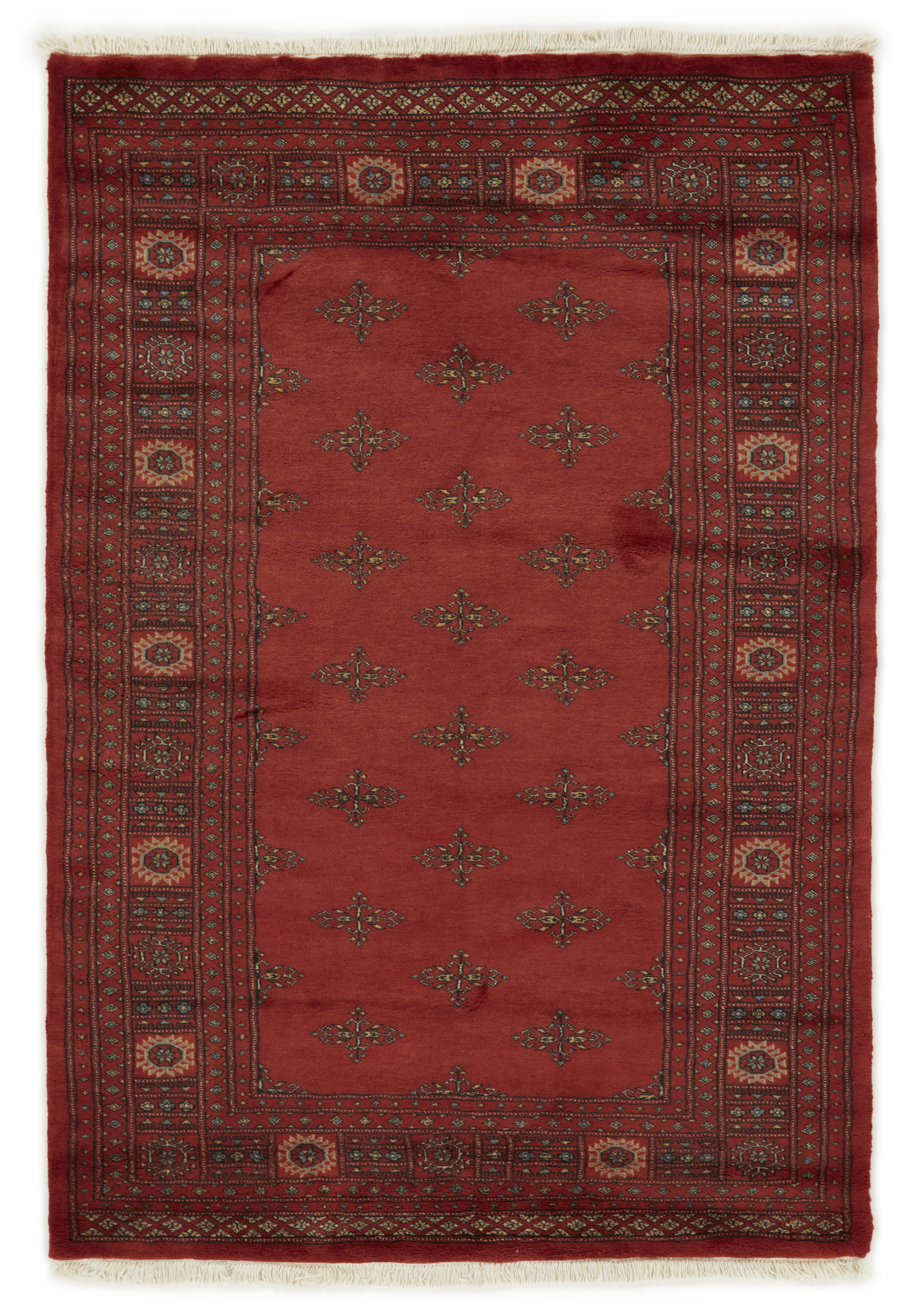 The 3-Ply rugs are produced in Lahore, Pakistan’s second largest city, which is also is the centre of the country’s hand knotted rug production. The rugs most often have the Tekke and Bokara patterns, which were originally inspired by patterns from Turkmenistan. The people of the Tekke Tribe, which was the largest nomadic tribe in Turkmenistan, were known as very industrious rug producers. The term Ply indicates the number of threads wound together to produce the yarn itself; 3-Ply thus guarantees that the yarn consists of three threads wound together. 3-Ply rugs appear thicker and softer than 2-Ply, as more wool is used to produce the rug. The quality of wool is particularly soft and shining, and the warm-coloured patterns are simple and harmonious.