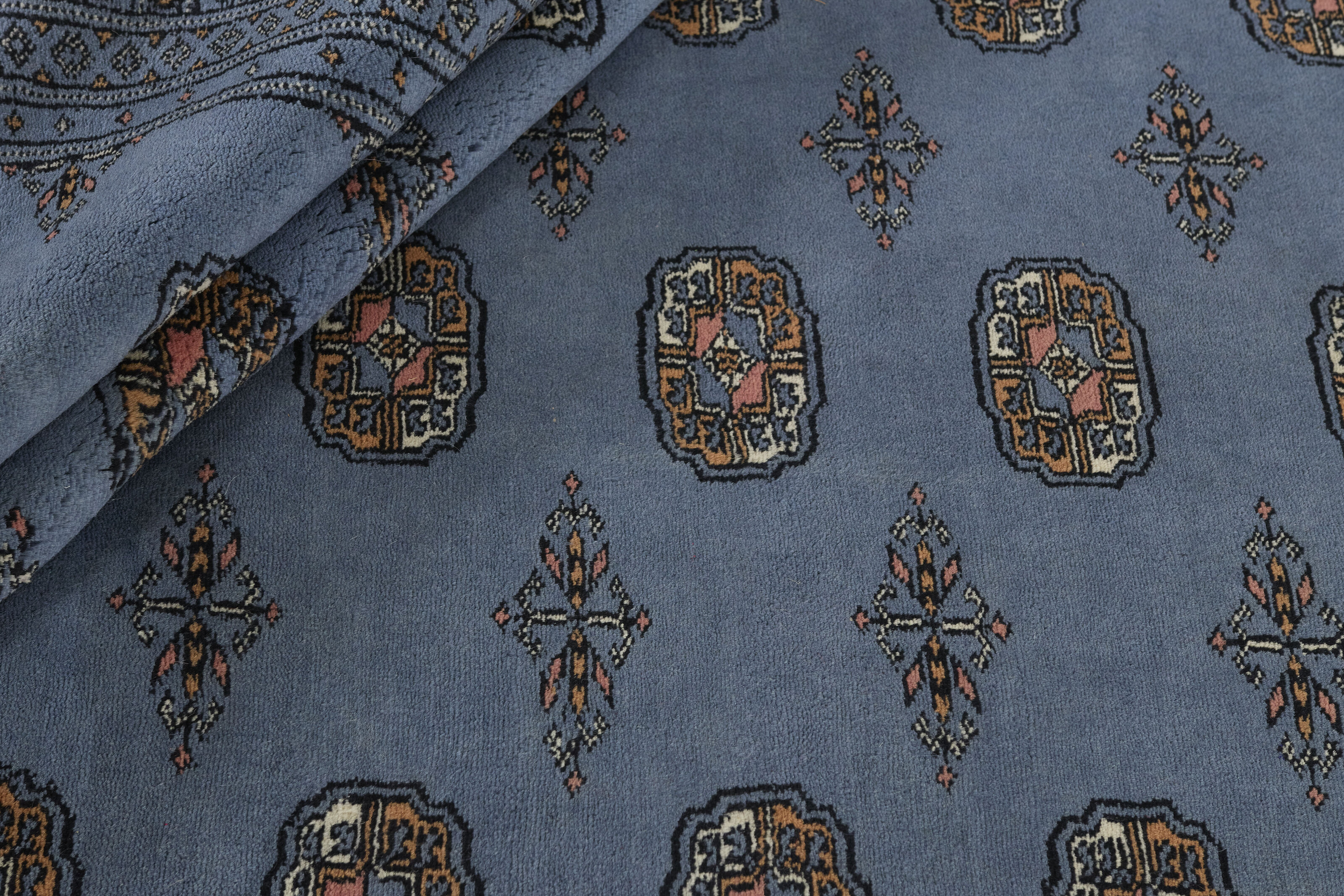 The 3-Ply rugs are produced in Lahore, Pakistan’s second largest city, which is also is the centre of the country’s hand knotted rug production. The rugs most often have the Tekke and Bokara patterns, which were originally inspired by patterns from Turkmenistan. The people of the Tekke Tribe, which was the largest nomadic tribe in Turkmenistan, were known as very industrious rug producers. The term Ply indicates the number of threads wound together to produce the yarn itself; 3-Ply thus guarantees that the yarn consists of three threads wound together. 3-Ply rugs appear thicker and softer than 2-Ply, as more wool is used to produce the rug. The quality of wool is particularly soft and shining, and the warm-coloured patterns are simple and harmonious.