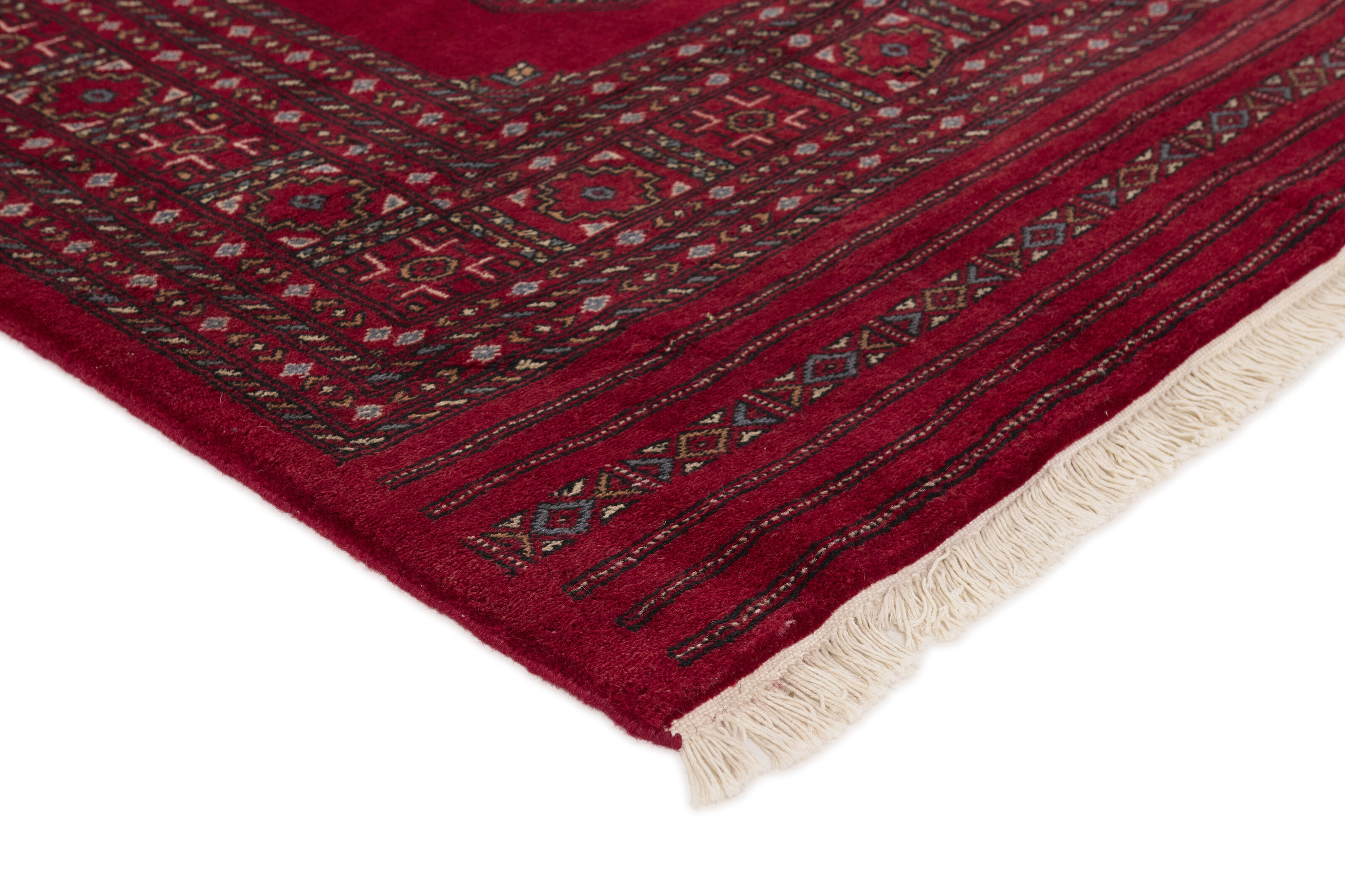 The 3-Ply rugs are produced in Lahore, Pakistan’s second largest city, which is also is the centre of the country’s hand knotted rug production. The rugs most often have the Tekke and Bokara patterns, which were originally inspired by patterns from Turkmenistan. The people of the Tekke Tribe, which was the largest nomadic tribe in Turkmenistan, were known as very industrious rug producers. The term Ply indicates the number of threads wound together to produce the yarn itself; 3-Ply thus guarantees that the yarn consists of three threads wound together. 3-Ply rugs appear thicker and softer than 2-Ply, as more wool is used to produce the rug. The quality of wool is particularly soft and shining, and the warm-coloured patterns are simple and harmonious.
