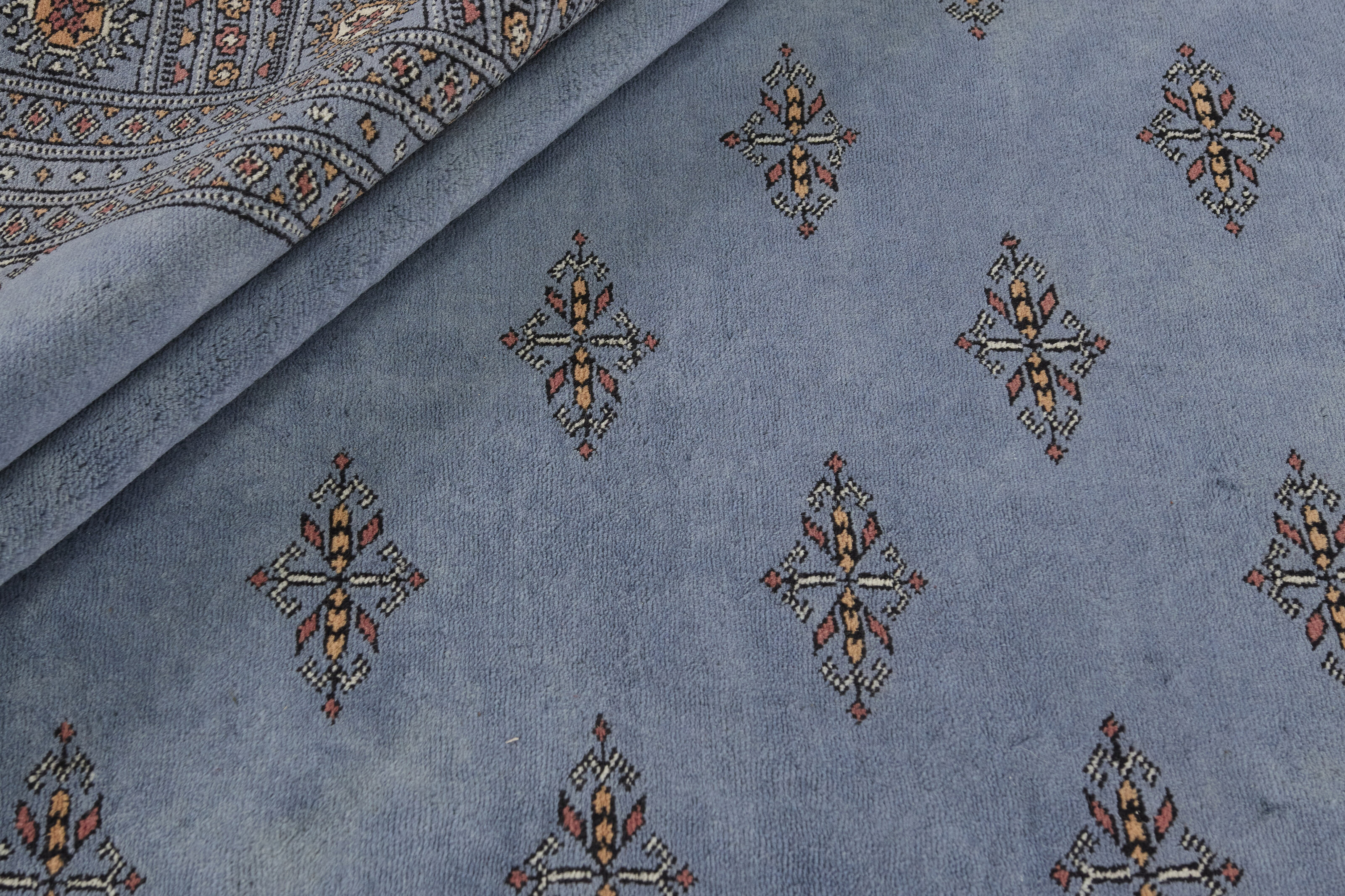 The 3-Ply rugs are produced in Lahore, Pakistan’s second largest city, which is also is the centre of the country’s hand knotted rug production. The rugs most often have the Tekke and Bokara patterns, which were originally inspired by patterns from Turkmenistan. The people of the Tekke Tribe, which was the largest nomadic tribe in Turkmenistan, were known as very industrious rug producers. The term Ply indicates the number of threads wound together to produce the yarn itself; 3-Ply thus guarantees that the yarn consists of three threads wound together. 3-Ply rugs appear thicker and softer than 2-Ply, as more wool is used to produce the rug. The quality of wool is particularly soft and shining, and the warm-coloured patterns are simple and harmonious.